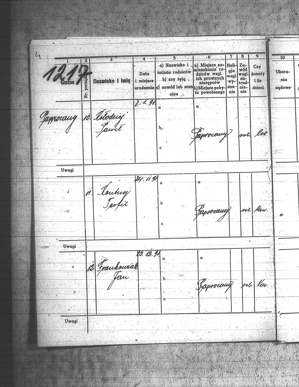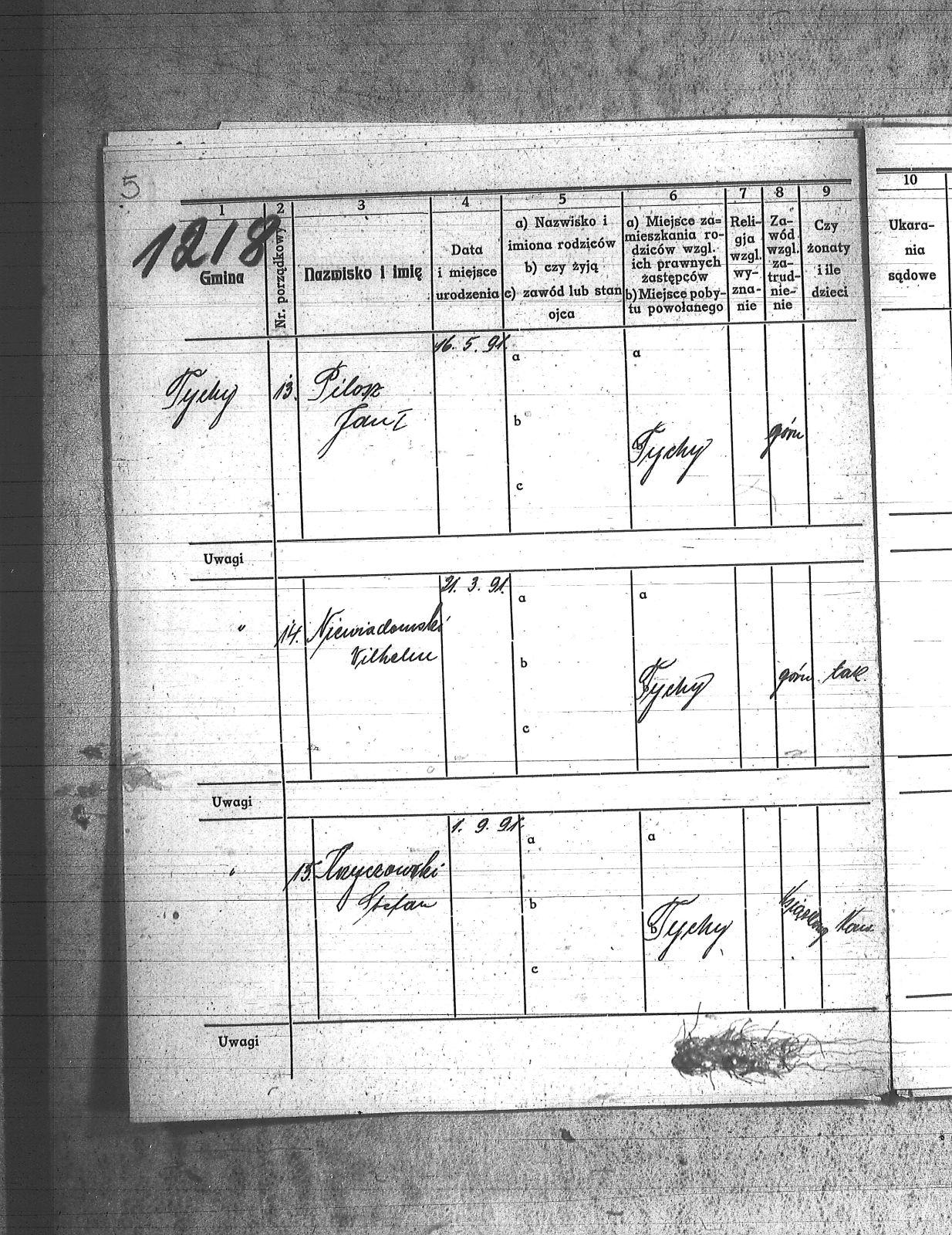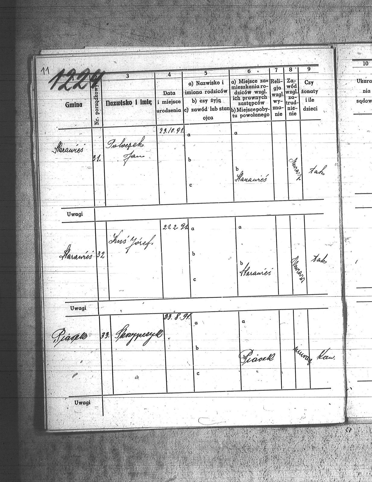 Badura, Mikołaj; Capek, Paweł; Chmielniok, Tomasz; Fatoj;[Tatoj], Franciszek; Fijot, Jan; Frankowiak, Jan; Goraus, Adam; Górlich, Karol; Gwiozda, Franciszek; Hasnik, Józef; Haśnik, Jan; Kapica, Tomasz; Kasza, Walenty; Kołodziej, Paweł; Konieczny, Karol; Korus, Paweł; Koutny;[Kautny], Teofil; Kszyczowski, Stefan; Kubicz, Walenty; Kurtok, Wilhelm; Kuś, Józef; Labus, Józef; Lebuda, Kazimierz; Musioł, Franciszek; Myszor, Augustyn; Niesyto, Tomasz; Niewiadomski, Wilhelm; Pagrór, Wincenty; Pająk, Roman; Pęszor, Franciszek; Piksa, Wiktor; Pilosz, Jan_I; Poluczek;[Paluczek], Jan; Pucher, Józef; Skrzypczyk, ; Sprus, Franciszek; Unou, Emil; Wozik, Jan; Wybraniec, Augustyn; Zagała;[Zogała], Jan; |