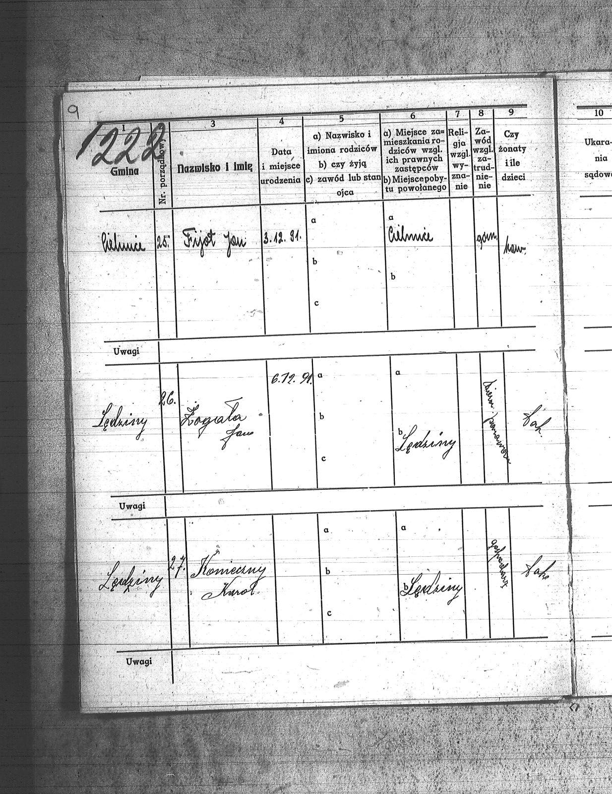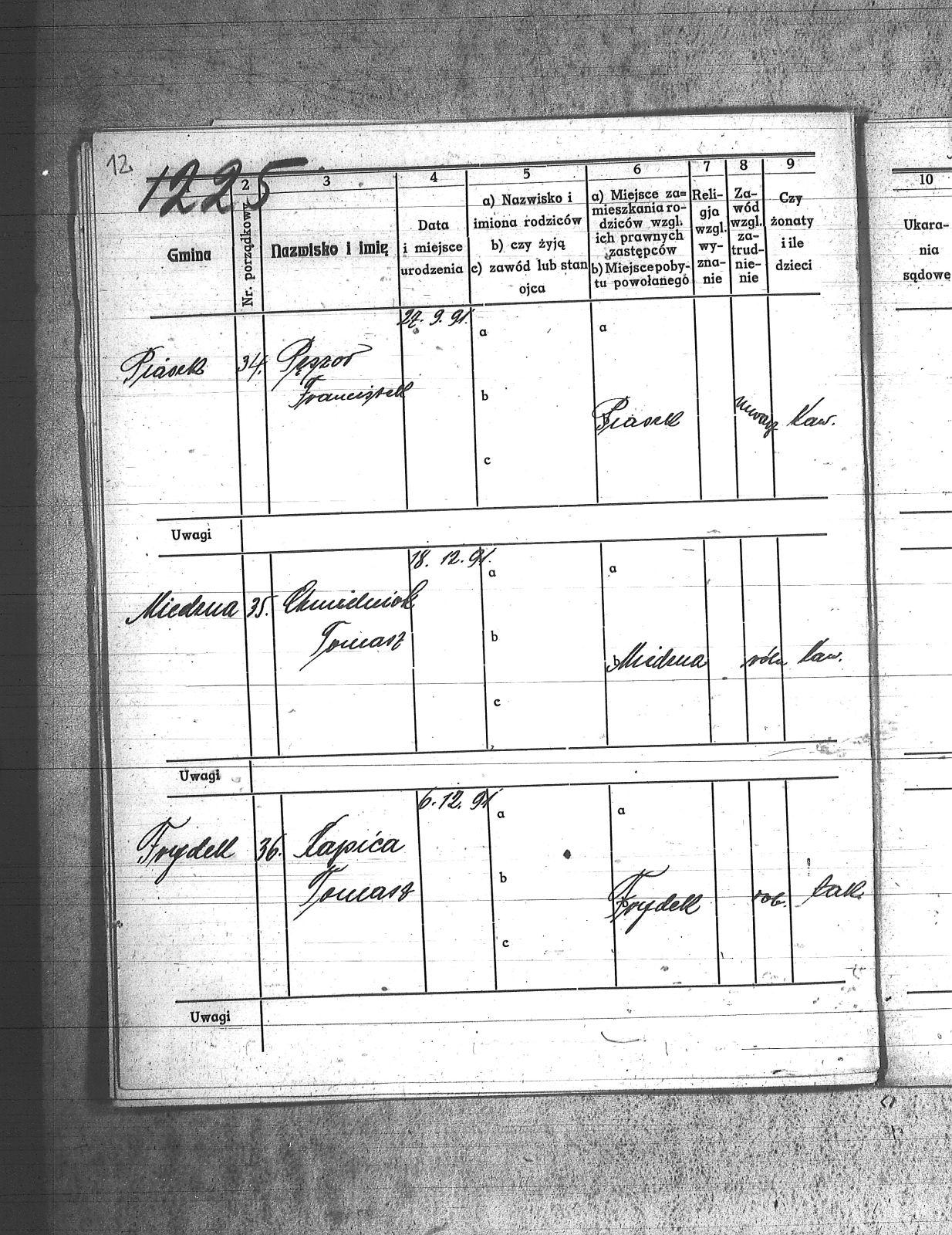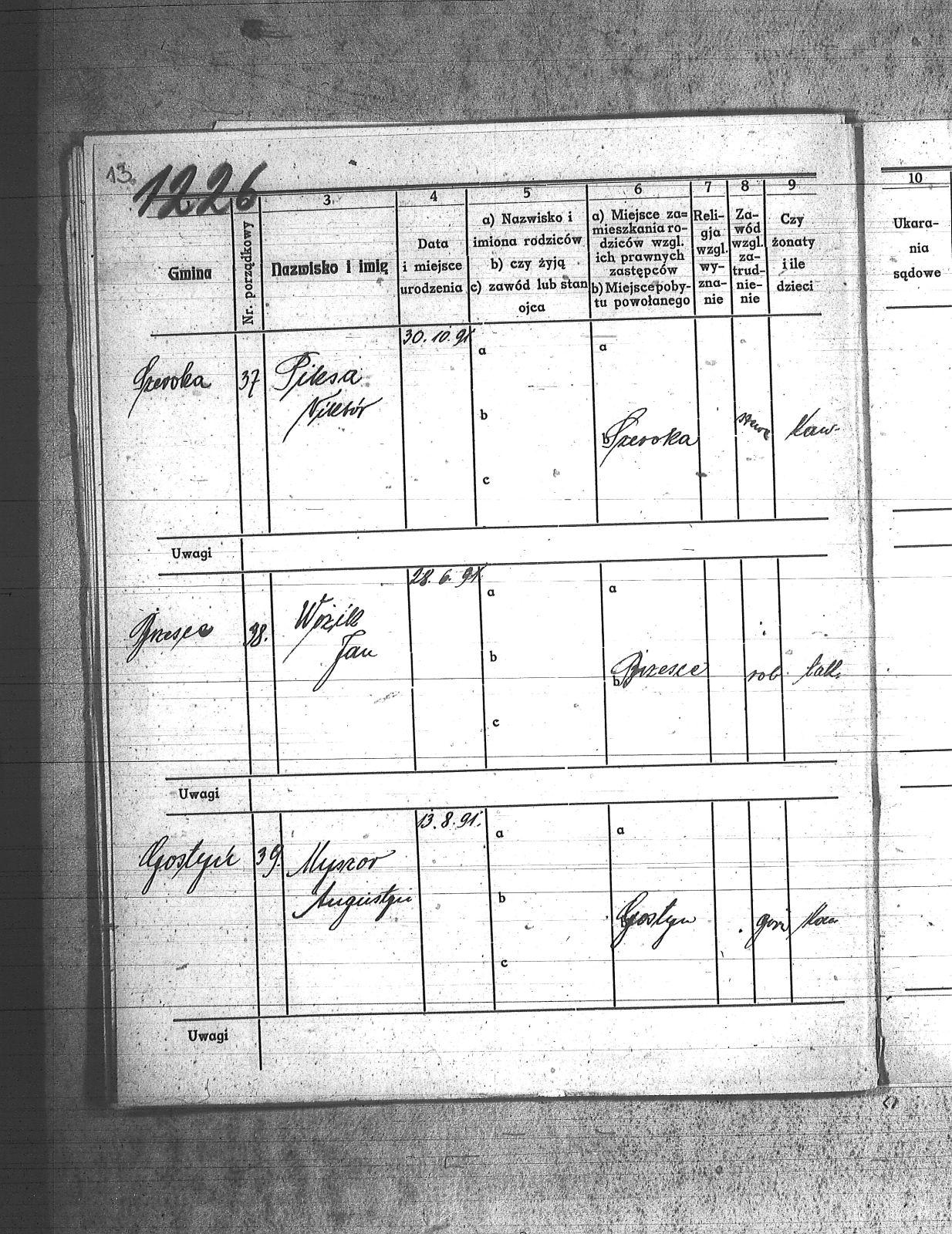 Badura, Mikołaj; Capek, Paweł; Chmielniok, Tomasz; Fatoj;[Tatoj], Franciszek; Fijot, Jan; Frankowiak, Jan; Goraus, Adam; Górlich, Karol; Gwiozda, Franciszek; Hasnik, Józef; Haśnik, Jan; Kapica, Tomasz; Kasza, Walenty; Kołodziej, Paweł; Konieczny, Karol; Korus, Paweł; Koutny;[Kautny], Teofil; Kszyczowski, Stefan; Kubicz, Walenty; Kurtok, Wilhelm; Kuś, Józef; Labus, Józef; Lebuda, Kazimierz; Musioł, Franciszek; Myszor, Augustyn; Niesyto, Tomasz; Niewiadomski, Wilhelm; Pagrór, Wincenty; Pająk, Roman; Pęszor, Franciszek; Piksa, Wiktor; Pilosz, Jan_I; Poluczek;[Paluczek], Jan; Pucher, Józef; Skrzypczyk, ; Sprus, Franciszek; Unou, Emil; Wozik, Jan; Wybraniec, Augustyn; Zagała;[Zogała], Jan; |
