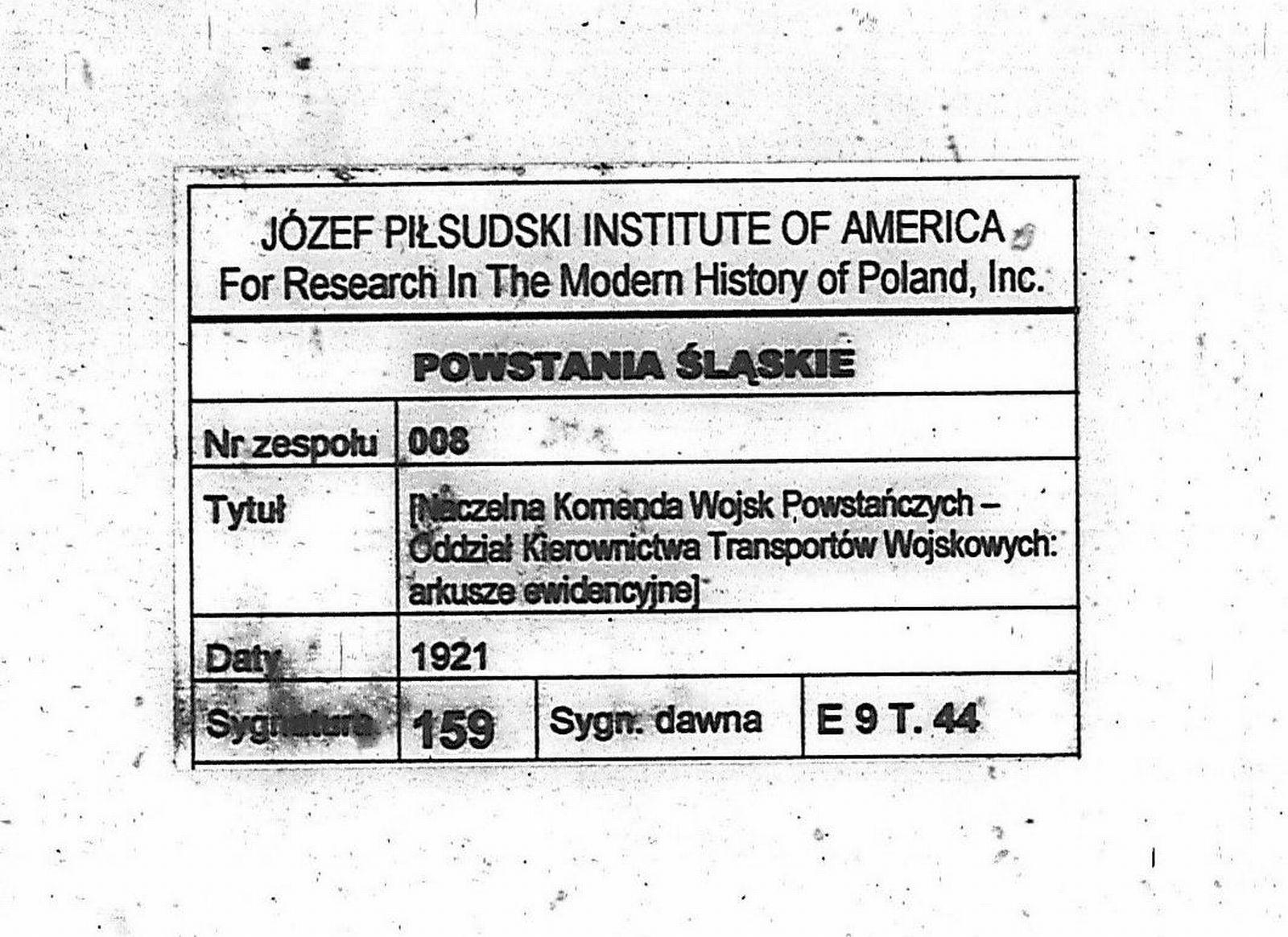 Tytuł teczkiNaczelna Komenda Wojsk Powstańczych – Oddział Kierownictwa Transportów Wojskowych: wojskowe arkusze ewidencyjne