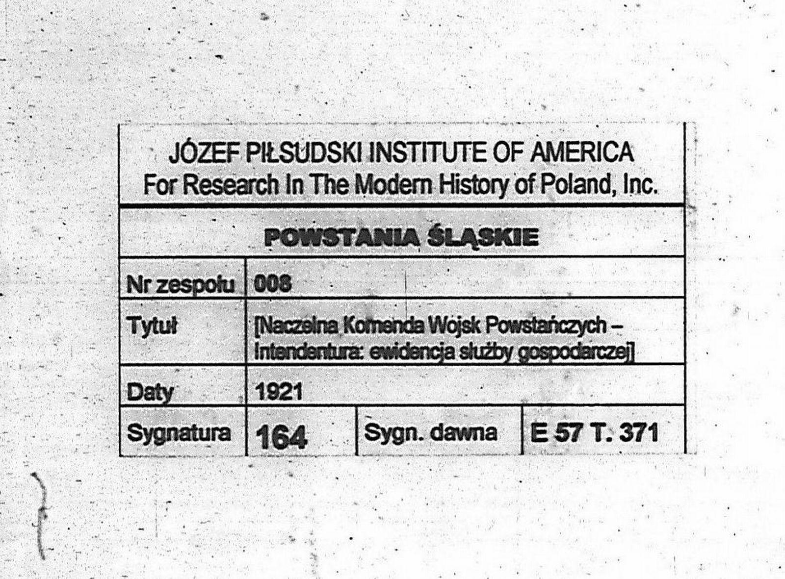 Prace nad odczytywaniem dokumentów z kolekcji: Powstania Śląskie nr 8 przechowywanej w archiwum Instytutu Piłsudskiego w Ameryce i dodawaniem danych do bazy trwają i dane te są cały czas poszerzane.