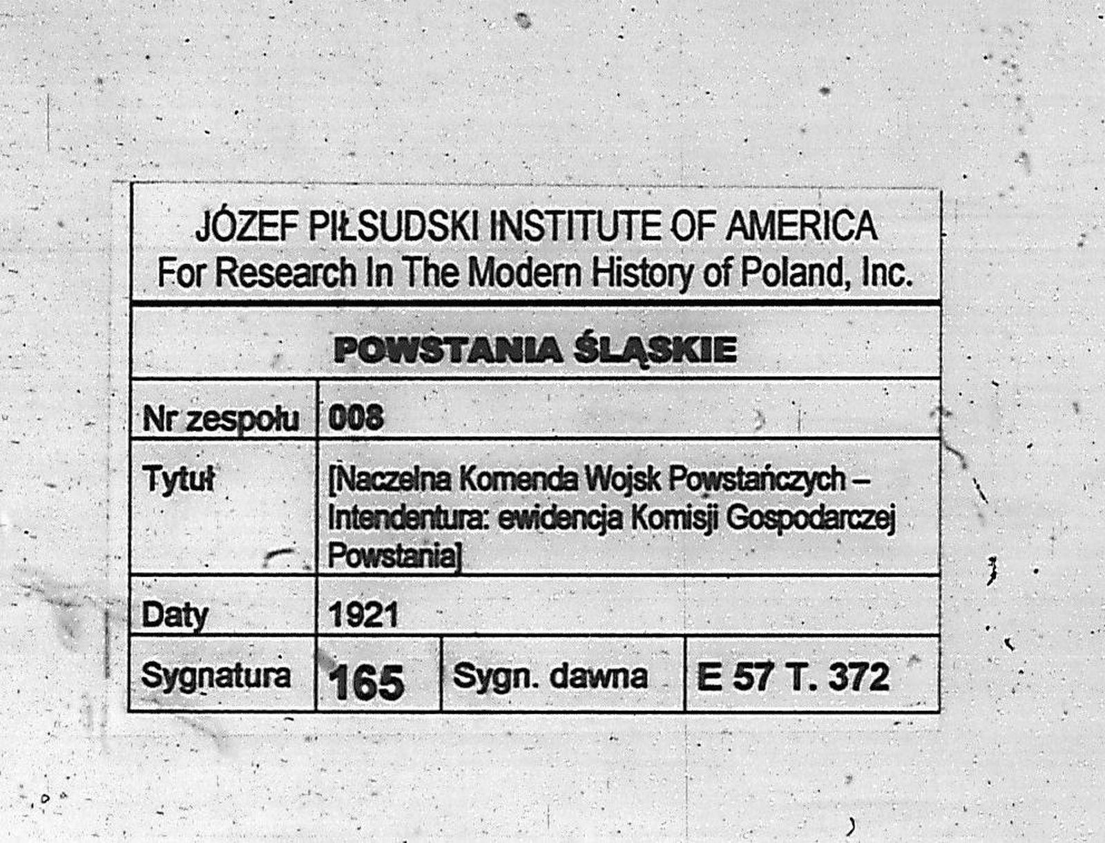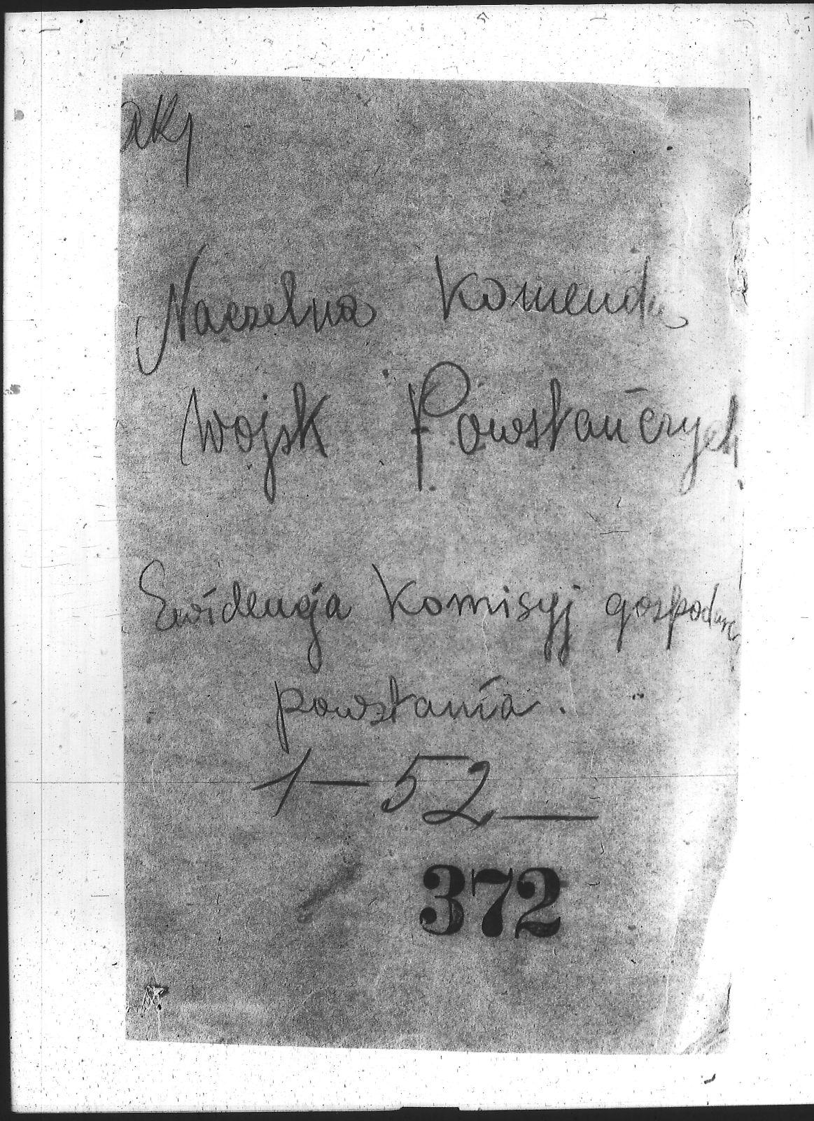 Tytuł teczkiNaczelna Komenda Wojsk Powstańczych – Intendentura: ewidencja Komisji Gospodarczej Powstania