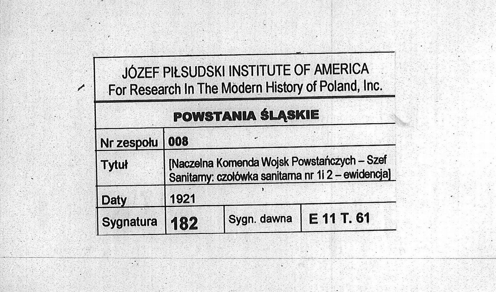 Tytuł Ewidencja czołówki sanitarnej nr 1 i 2