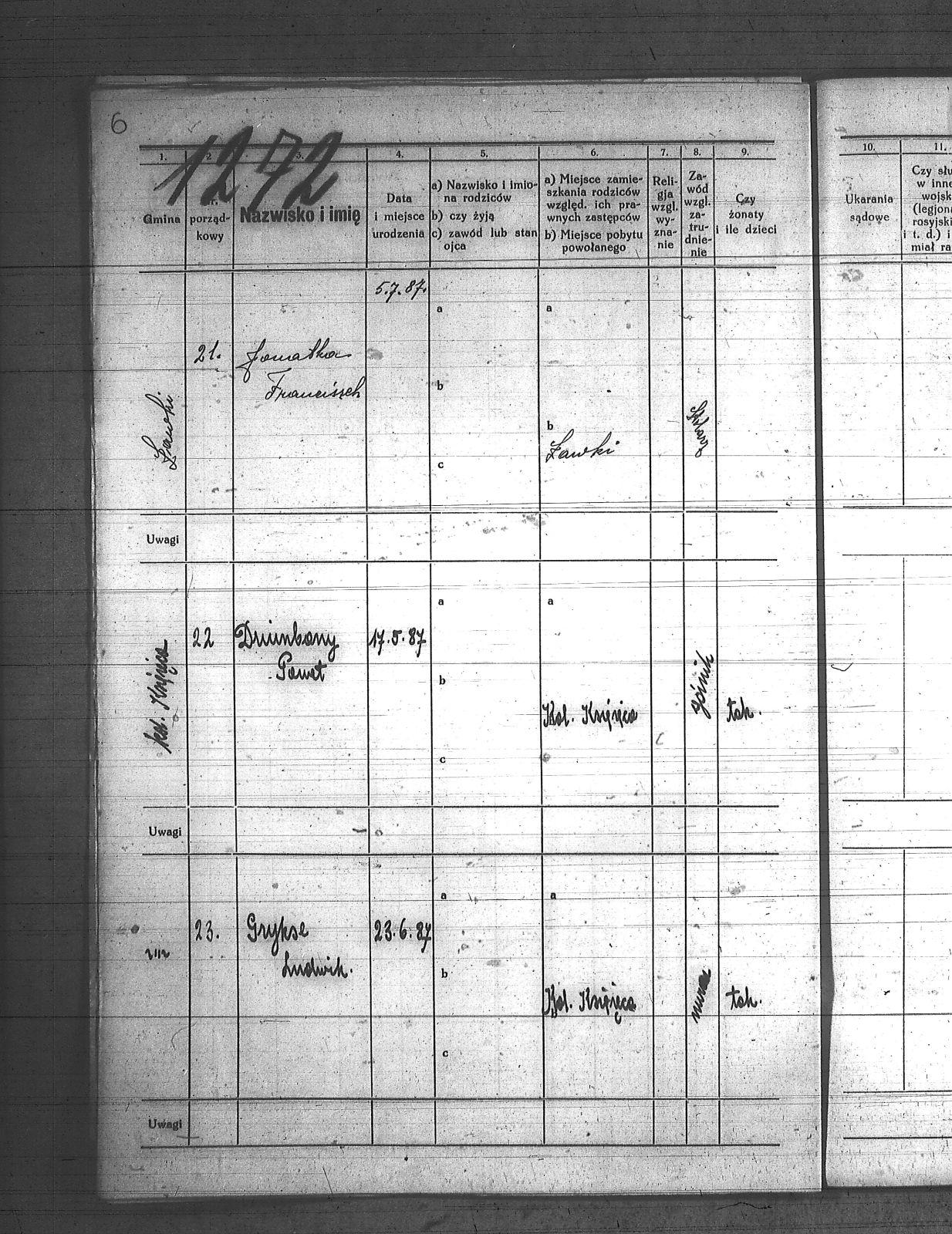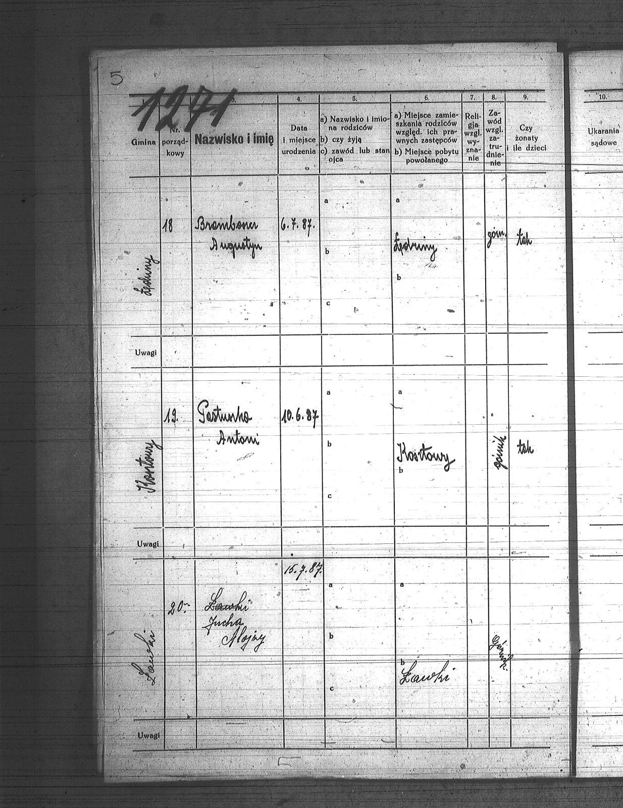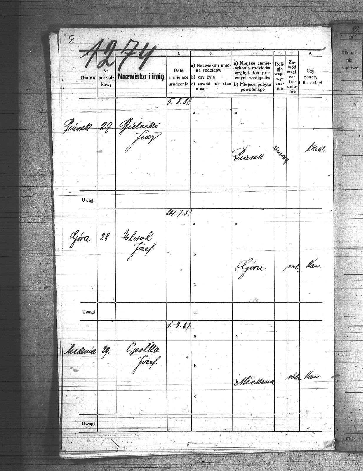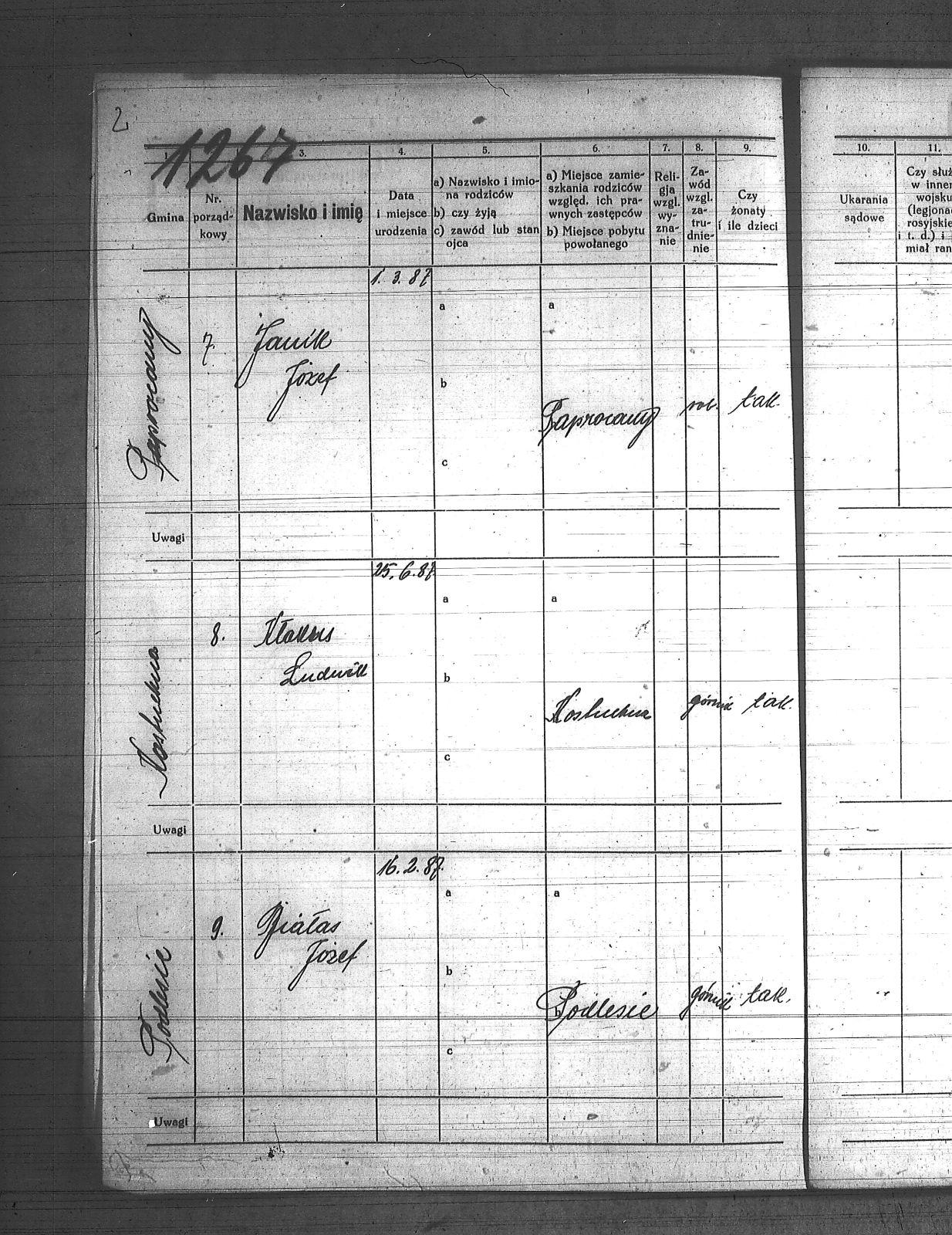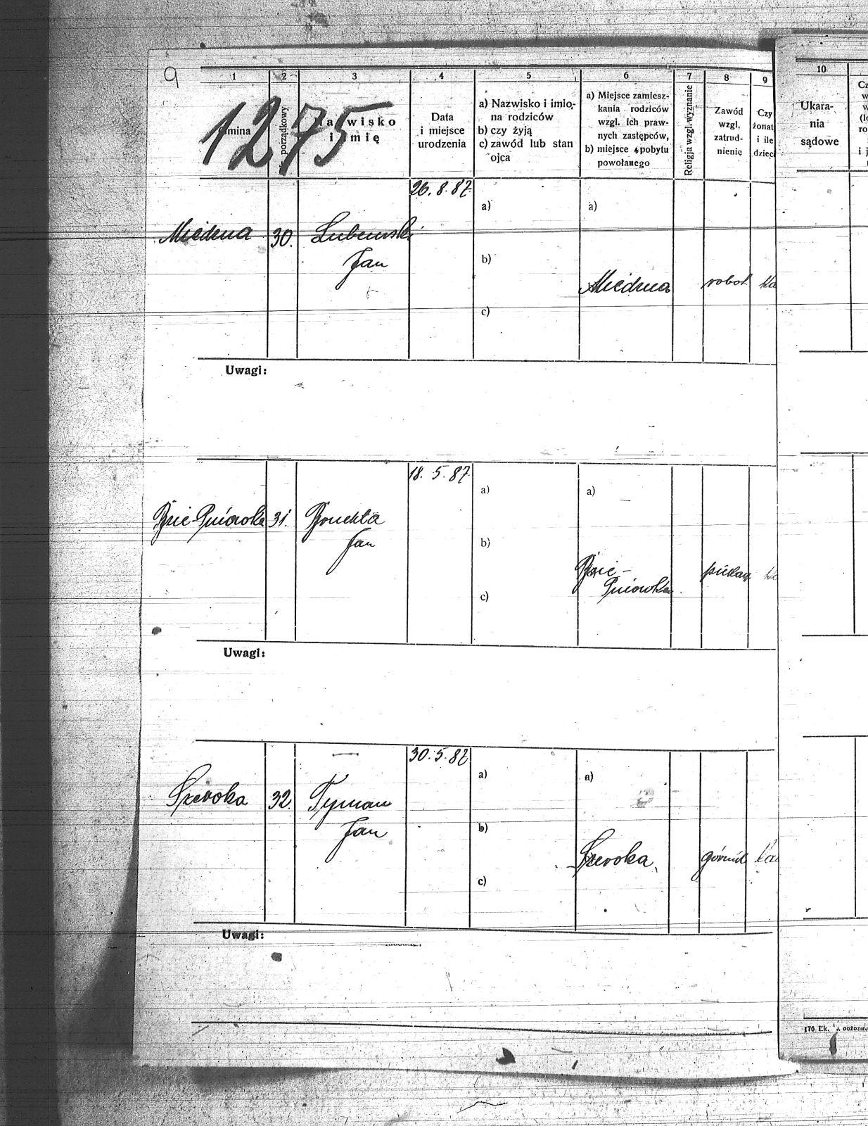 Anderwald, Franciszek; Białas, Józef; Bielecki, Jan; Bonekta, Jan; Bramboszer, Augustyn; Bzuk;[Buck], Franciszek; Dziunbany, Paweł; Filak, Jan; Fojt, Augustyn; Goik, Józef; Grykse, Ludwik; Janatka, Franciszek; Janik, Józef; Jeronim, Jan; Jucha, Alojzy; Kędzior, Paweł; Kłakus, Ludwik; Koczurek, Józef; Koza, Karol; Luberski, Jan; Mleżak, Józef; Mrawiec, Jan; Opałka, Józef; Pastuszka, Antoni; Porwolik, Paweł; Rybok, Paweł; Splendel, Teodor; Spyra, Stanisław; Stencel, Karol; Szendera, Augustyn; Tyman, Jan; Żoneczko, Frek; |