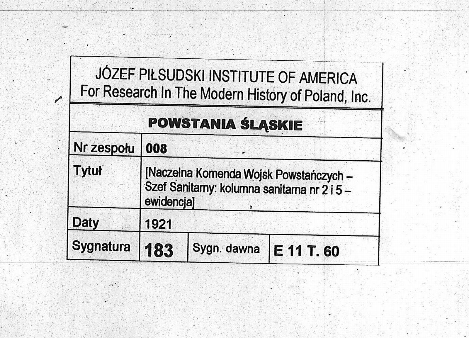 Tytuł teczkiSzef Sanitarny: kolumna sanitarna nr 2 i 5- ewidencja