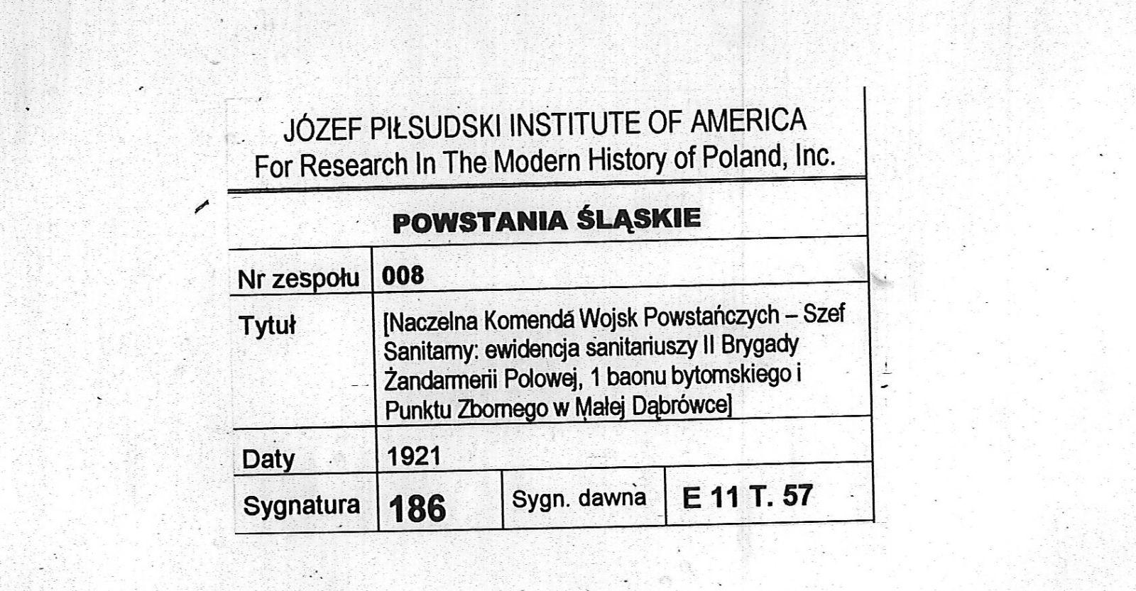 Prace nad odczytywaniem dokumentów z kolekcji: Powstania Śląskie nr 8 przechowywanej w archiwum Instytutu Piłsudskiego w Ameryce i dodawaniem danych do bazy trwają i dane te są cały czas poszerzane.