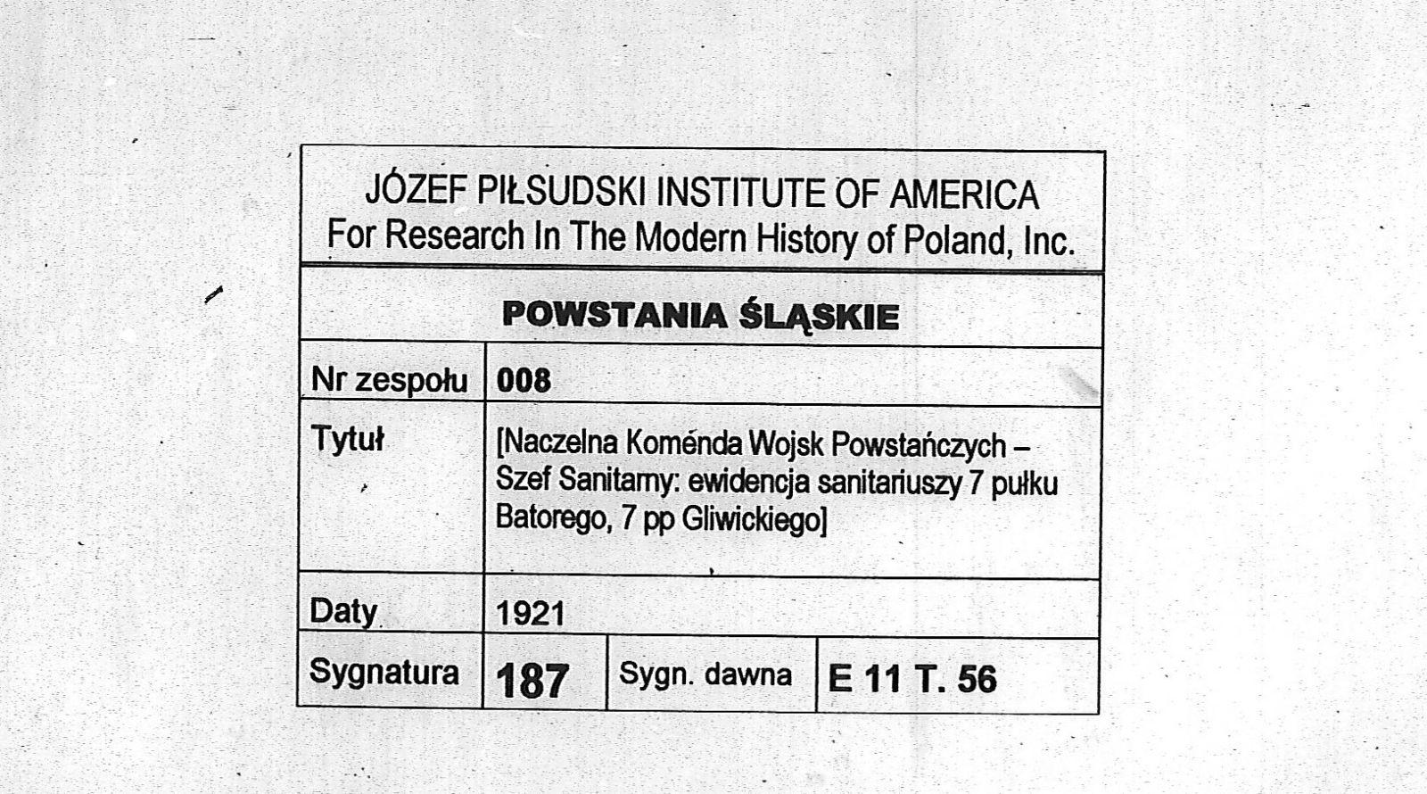 Prace nad odczytywaniem dokumentów z kolekcji: Powstania Śląskie nr 8 przechowywanej w archiwum Instytutu Piłsudskiego w Ameryce i dodawaniem danych do bazy trwają i dane te są cały czas poszerzane.