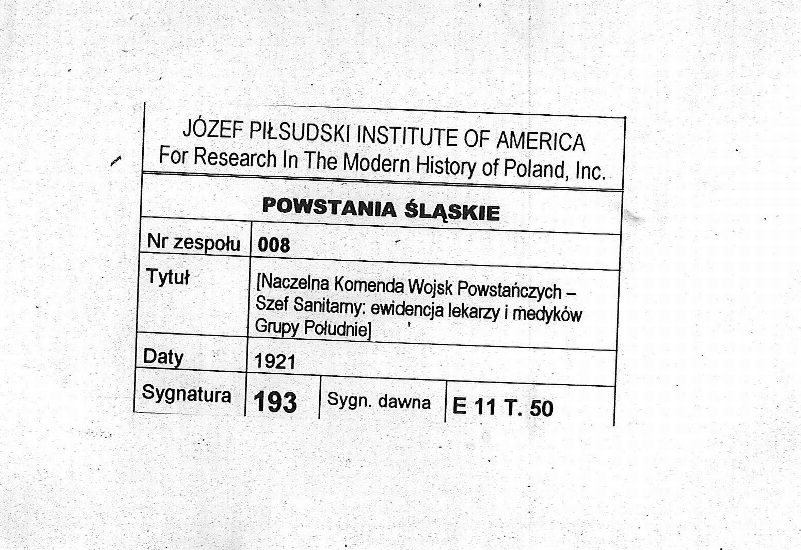 Prace nad odczytywaniem dokumentów z kolekcji: Powstania Śląskie nr 8 przechowywanej w archiwum Instytutu Piłsudskiego w Ameryce i dodawaniem danych do bazy trwają i dane te są cały czas poszerzane.