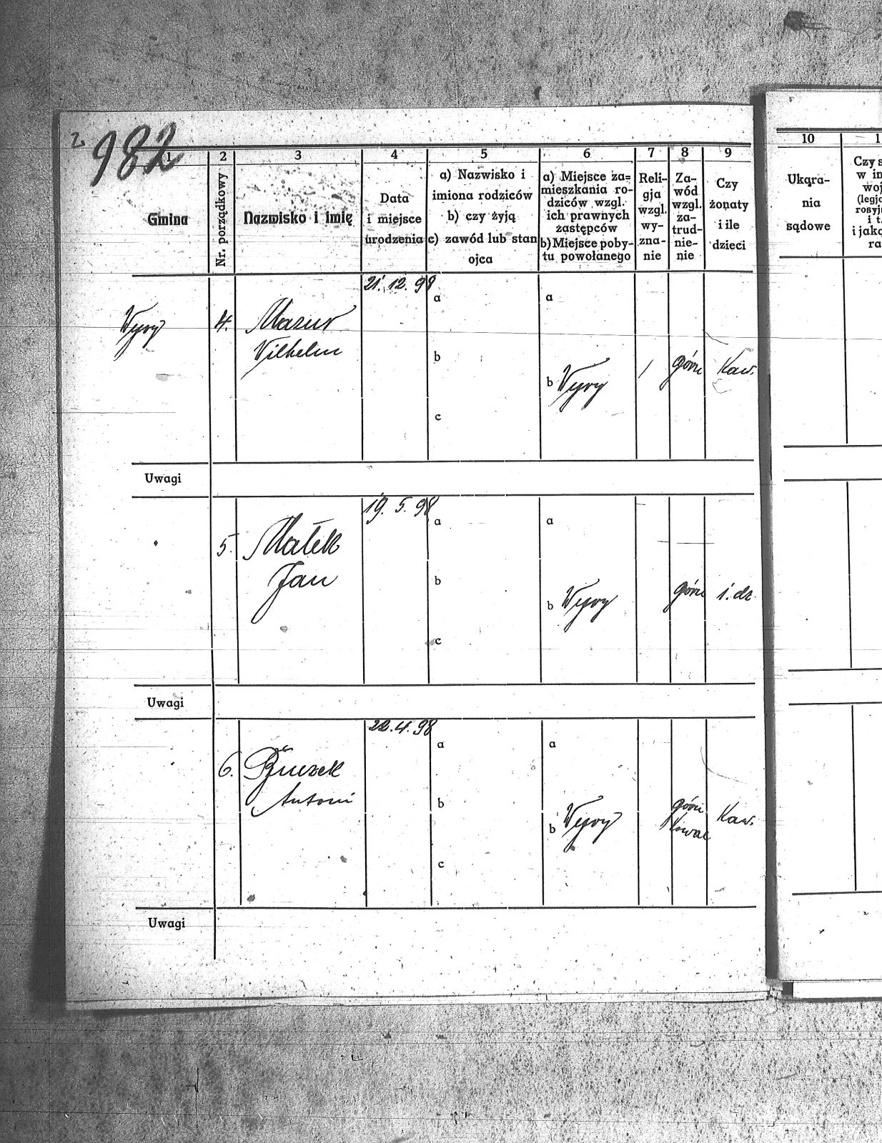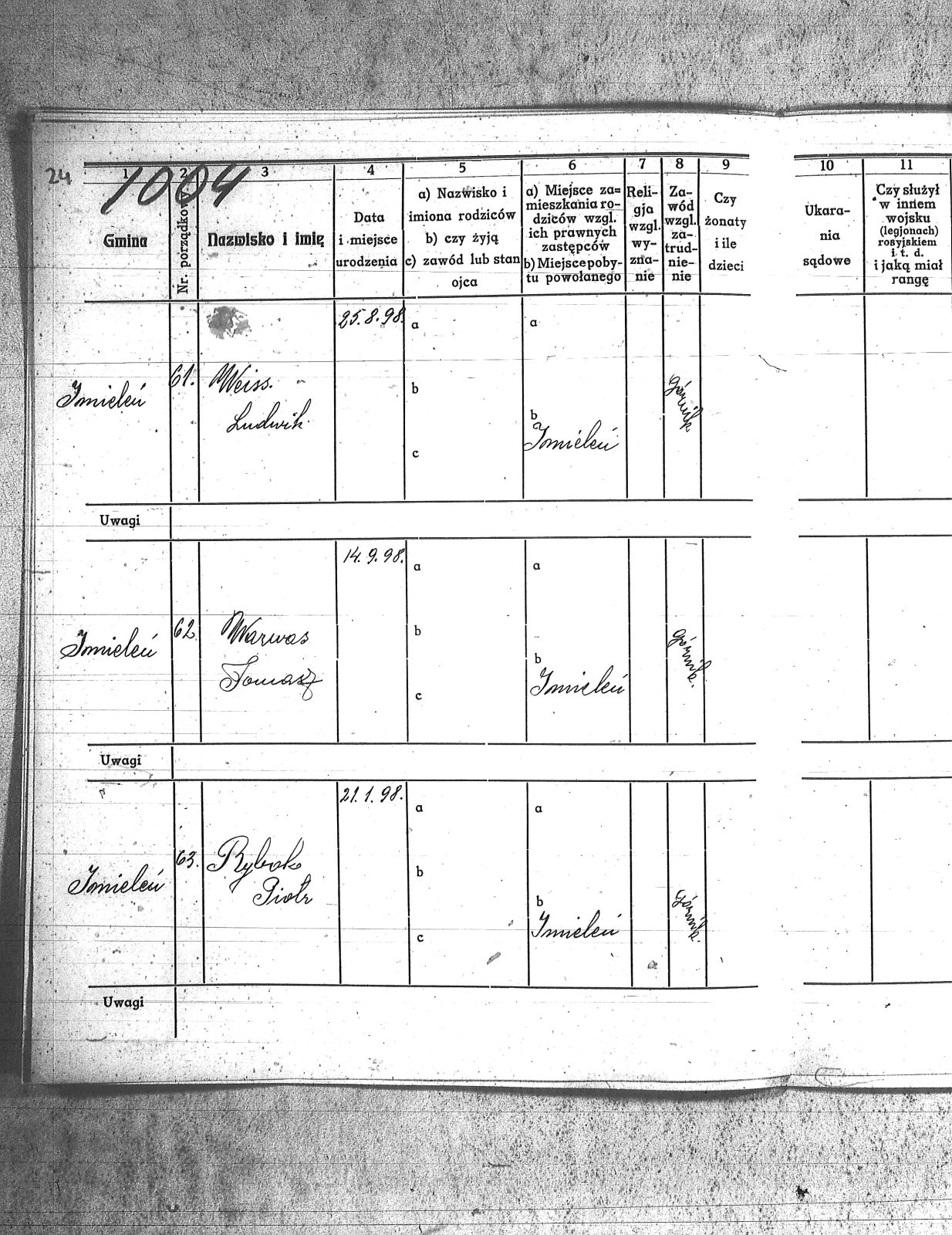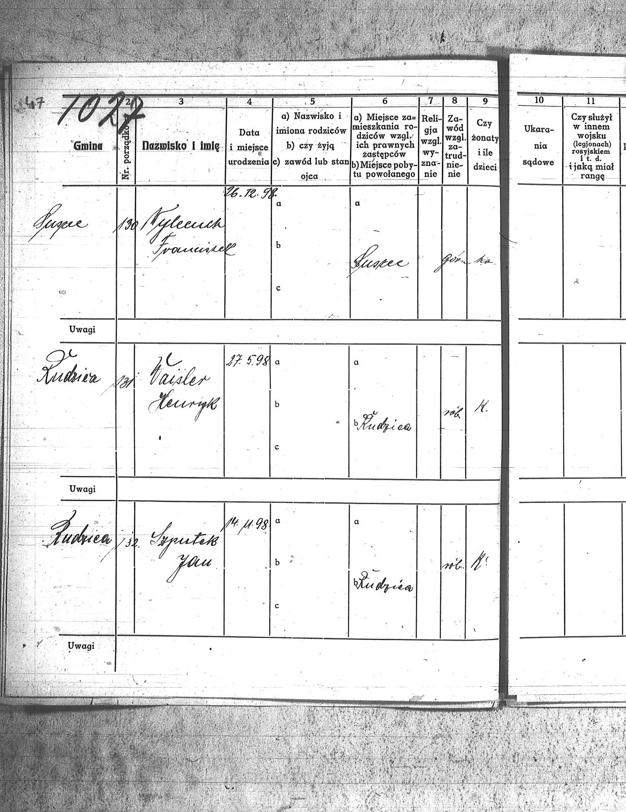 Adam, Paweł; Bainka, Augustyn; Baran, Jan; Baran, Teodor; Barchenicki, Izydor; Baron, Tomasz; Bazgier, Karol; Białas, Ignacy; Bielecki, Franciszek; Błaszczyk, Oswald; Błaszczyk, Szczepan; Błąkala, Franciszek; Bogacki, Jan; Bogacki, Wojciech; Boniczyk, Stefan; Brożek, Jan; Brychcy, Józef; Brychej, Wiktor; Buczek, Antoni; Bybok, Piotr; Bywalec, Teofil; Cebula, Michał; Cipa, Tomasz; Danek, Jan; Długoń, Maksym; Dreszer, Józef; Drobiczek, Mateusz; Foks, Tomasz; Fronczyk, Augustyn; Furczyk, Klemens; Fyot, Franciszek; Fyot, Paweł; Gałuszka, Paweł; Gamra, Alojzy; Gamra, Alojzy II; Gawliczek, Konstanty; Gawlik, Franciszek; Gąsior, Franciszek; Giel, Franciszek; Giel, Stefan; Gizdoń, Stanisław; Glanc, Heronim; Golenia, Józef; Gorzawski, Alojzy; Grzesica, Józef; Guszka, Augustyn; Haśnik, Franciszek; Herman, Rufin; Hermann, Józef; Hess, Jan; Jaromin, Franciszek; Jaworski, Juliusz; Kamieński, Jan; Kamyczak, Józef; Knoklla, Jan; Kret, Franciszek; Kroczek, Teofil; Kruk, Jan; Kruk, Teodor; Krupa, Wawrzyn; Krystolik, Teofil; Krzemień, Franciszek; Kulla, Michał; Kurcisz, Wincenty; Kurczok, Karol; Kuś, Franciszek; Labuś, Konrad I; Leki, Ludwik; Liszka, Jan; Malcharek, Józef; Małek, Jan; Małek, Józef; Manrok, Franciszek; Mansfeld, Paweł; Mazur, Wilhelm; Mendzela, Jan; Mentlik, Franciszek; Mikołaja, Antoni; Mirnik, Franciszek; Mirnik, Jan; Monkol, Robert; Mrosik, Mateusz; Musiolik, Alojzy; Myszor, Grzegorz; Myszor, Jan; Myszor, Stanisław; Nawrot, Wojciech; Niemiec, Ludwik; Niesyto, Walenty; Noras, Walenty; Okoń, Józef; Olesz, Franciszek; Oślisło, Henryk; Palarczyk, Augustyn; Pawelczyk, Jan; Pawlencik, Paweł; Penkala, Augustyn; Piecha, Franciszek; Piecha, Juliusz; Pięta, Piotr; Piksa, Albert; Pilszczek, Paweł; Piszczek, Robert; Plewnia, Tomasz; Płonka, Franciszek; Pojda, Karol; Polanin, Jan; Polok, Józef; Powolik, Alojzy; Przemyk, Wincenty; Przewoźnik, Franciszek; Przewożnik, Józef; Przybyła, Ludwik; Rozmus, Jan; Rozmus, Ludwik; Ryś, Józef; Sekula, Franciszek; Sewerin, Wiktor; Sinka, Wiktor; Sitko, Paweł; Skorupka, Jan; Skowron, Józef; Sojda, Franciszek; Stelmach, Józef; Stenzel, Józef; Stokłosa, Paweł; Stylok, Walenty; Swadzba, Alojzy; Swiekot, Ludwik; Swierkot, Alojzy; Syska, Wojciech; Szania, Józef; Szary, Augustyn; Szczepek, Józef; Szmusz, Tomasz; Szojda, Klemens; Szputek, Jan; Szypuła, Franciszek; Śmietana, Józef; Uaurtak, Wiktor; Ulczok, Franciszek; Utrata, Józef; Waisler, Henryk; Walla, Stanisław; Waloszek, Emil; Warwas, Tomasz; Weiss, Ludwik; Weszka, Jan; Weszka, Stanisław; Wiatr, Jan; Wieczorek, Teofil; Wiera, Ludwik; Wilk, Franciszek; Winkler, Alojzy; Witosz, Alojzy; Wygrabek, Paweł; Wylcenek, Franciszek; Zdziebło, Jan; Żołna, Jan; |