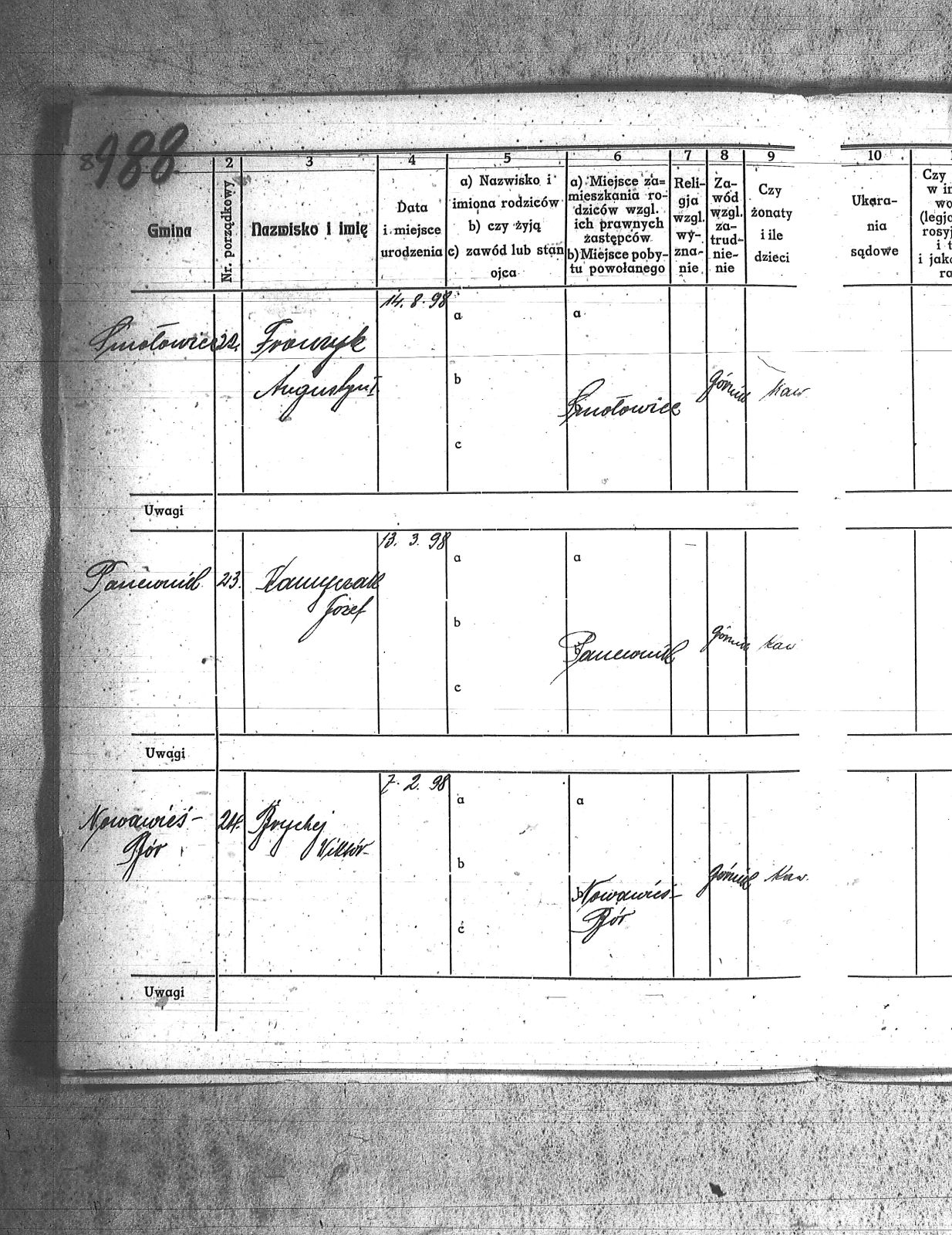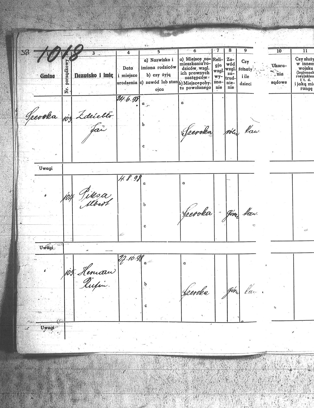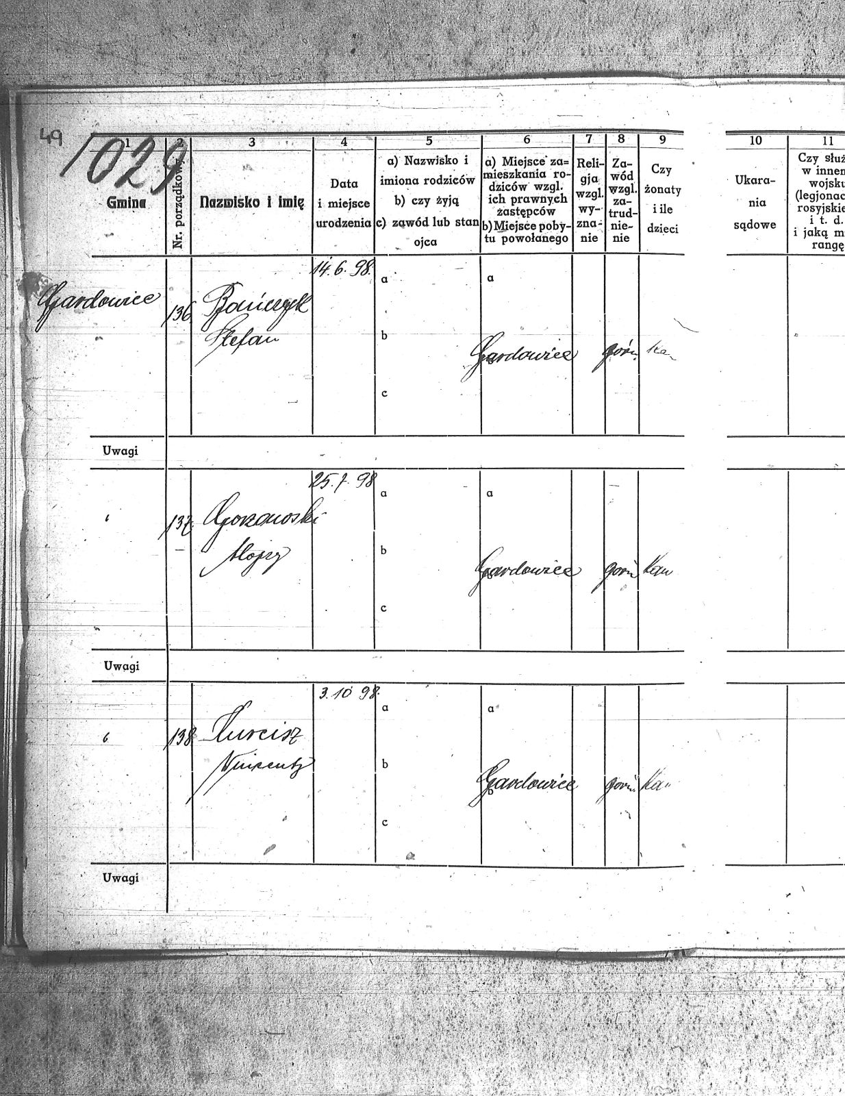 Adam, Paweł; Bainka, Augustyn; Baran, Jan; Baran, Teodor; Barchenicki, Izydor; Baron, Tomasz; Bazgier, Karol; Białas, Ignacy; Bielecki, Franciszek; Błaszczyk, Oswald; Błaszczyk, Szczepan; Błąkala, Franciszek; Bogacki, Jan; Bogacki, Wojciech; Boniczyk, Stefan; Brożek, Jan; Brychcy, Józef; Brychej, Wiktor; Buczek, Antoni; Bybok, Piotr; Bywalec, Teofil; Cebula, Michał; Cipa, Tomasz; Danek, Jan; Długoń, Maksym; Dreszer, Józef; Drobiczek, Mateusz; Foks, Tomasz; Fronczyk, Augustyn; Furczyk, Klemens; Fyot, Franciszek; Fyot, Paweł; Gałuszka, Paweł; Gamra, Alojzy; Gamra, Alojzy II; Gawliczek, Konstanty; Gawlik, Franciszek; Gąsior, Franciszek; Giel, Franciszek; Giel, Stefan; Gizdoń, Stanisław; Glanc, Heronim; Golenia, Józef; Gorzawski, Alojzy; Grzesica, Józef; Guszka, Augustyn; Haśnik, Franciszek; Herman, Rufin; Hermann, Józef; Hess, Jan; Jaromin, Franciszek; Jaworski, Juliusz; Kamieński, Jan; Kamyczak, Józef; Knoklla, Jan; Kret, Franciszek; Kroczek, Teofil; Kruk, Jan; Kruk, Teodor; Krupa, Wawrzyn; Krystolik, Teofil; Krzemień, Franciszek; Kulla, Michał; Kurcisz, Wincenty; Kurczok, Karol; Kuś, Franciszek; Labuś, Konrad I; Leki, Ludwik; Liszka, Jan; Malcharek, Józef; Małek, Jan; Małek, Józef; Manrok, Franciszek; Mansfeld, Paweł; Mazur, Wilhelm; Mendzela, Jan; Mentlik, Franciszek; Mikołaja, Antoni; Mirnik, Franciszek; Mirnik, Jan; Monkol, Robert; Mrosik, Mateusz; Musiolik, Alojzy; Myszor, Grzegorz; Myszor, Jan; Myszor, Stanisław; Nawrot, Wojciech; Niemiec, Ludwik; Niesyto, Walenty; Noras, Walenty; Okoń, Józef; Olesz, Franciszek; Oślisło, Henryk; Palarczyk, Augustyn; Pawelczyk, Jan; Pawlencik, Paweł; Penkala, Augustyn; Piecha, Franciszek; Piecha, Juliusz; Pięta, Piotr; Piksa, Albert; Pilszczek, Paweł; Piszczek, Robert; Plewnia, Tomasz; Płonka, Franciszek; Pojda, Karol; Polanin, Jan; Polok, Józef; Powolik, Alojzy; Przemyk, Wincenty; Przewoźnik, Franciszek; Przewożnik, Józef; Przybyła, Ludwik; Rozmus, Jan; Rozmus, Ludwik; Ryś, Józef; Sekula, Franciszek; Sewerin, Wiktor; Sinka, Wiktor; Sitko, Paweł; Skorupka, Jan; Skowron, Józef; Sojda, Franciszek; Stelmach, Józef; Stenzel, Józef; Stokłosa, Paweł; Stylok, Walenty; Swadzba, Alojzy; Swiekot, Ludwik; Swierkot, Alojzy; Syska, Wojciech; Szania, Józef; Szary, Augustyn; Szczepek, Józef; Szmusz, Tomasz; Szojda, Klemens; Szputek, Jan; Szypuła, Franciszek; Śmietana, Józef; Uaurtak, Wiktor; Ulczok, Franciszek; Utrata, Józef; Waisler, Henryk; Walla, Stanisław; Waloszek, Emil; Warwas, Tomasz; Weiss, Ludwik; Weszka, Jan; Weszka, Stanisław; Wiatr, Jan; Wieczorek, Teofil; Wiera, Ludwik; Wilk, Franciszek; Winkler, Alojzy; Witosz, Alojzy; Wygrabek, Paweł; Wylcenek, Franciszek; Zdziebło, Jan; Żołna, Jan; |