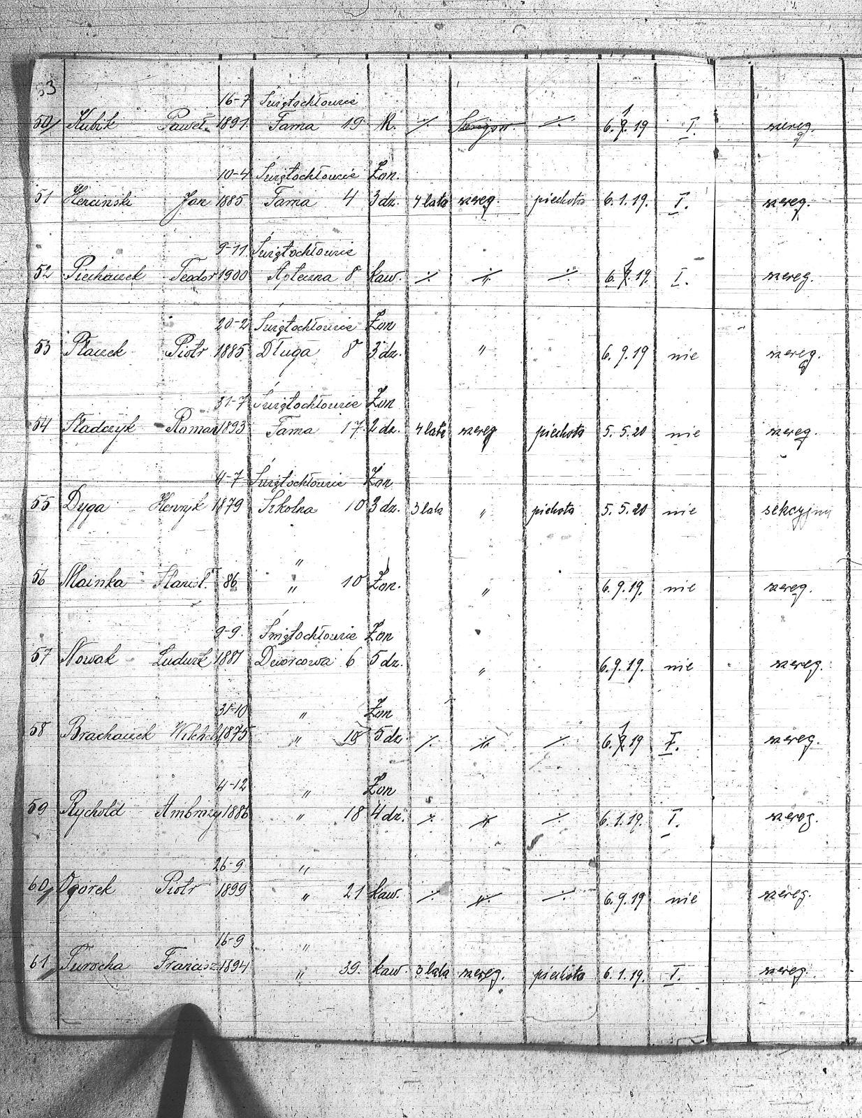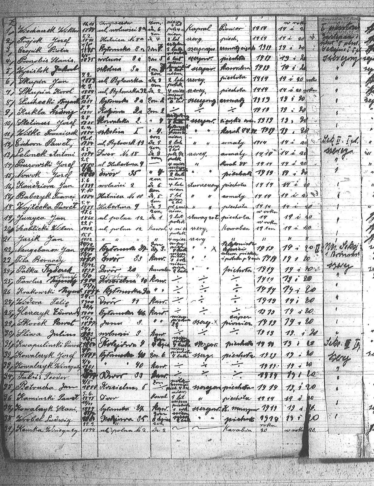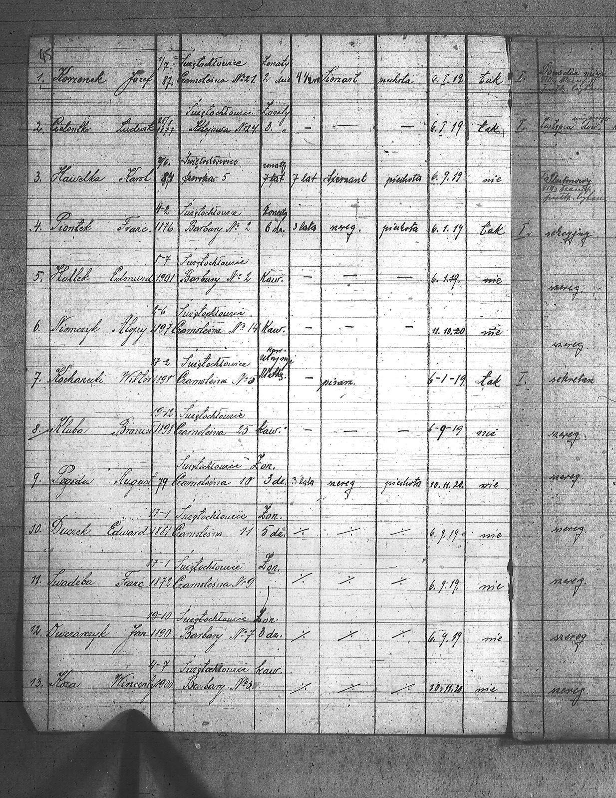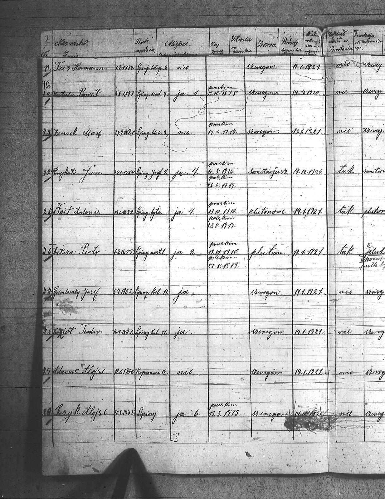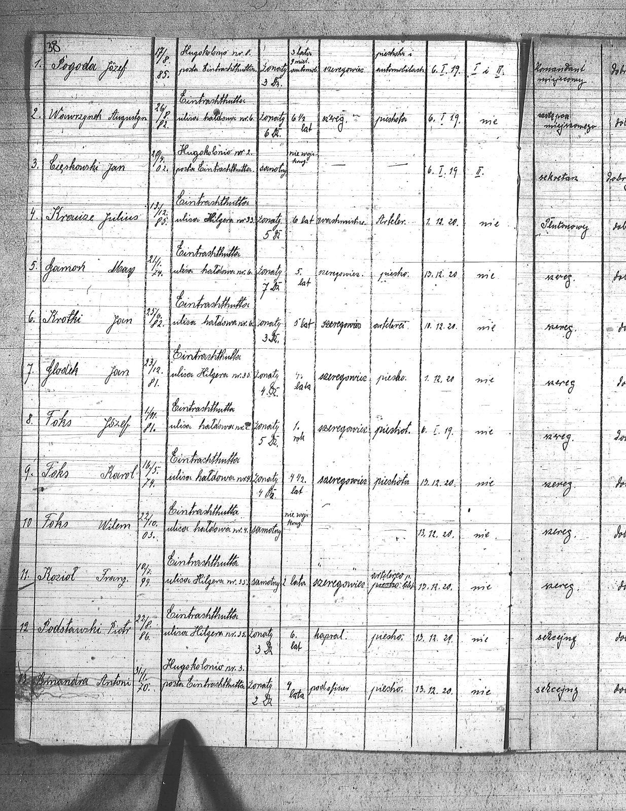| Tytuł teczki | Spis członków POW, miejscowości: Lipiny I kompania III baon, Chropaczów III kompania, Eintrachthuta, Świętochłowice, Bismarkhuta, Szarlociniec |