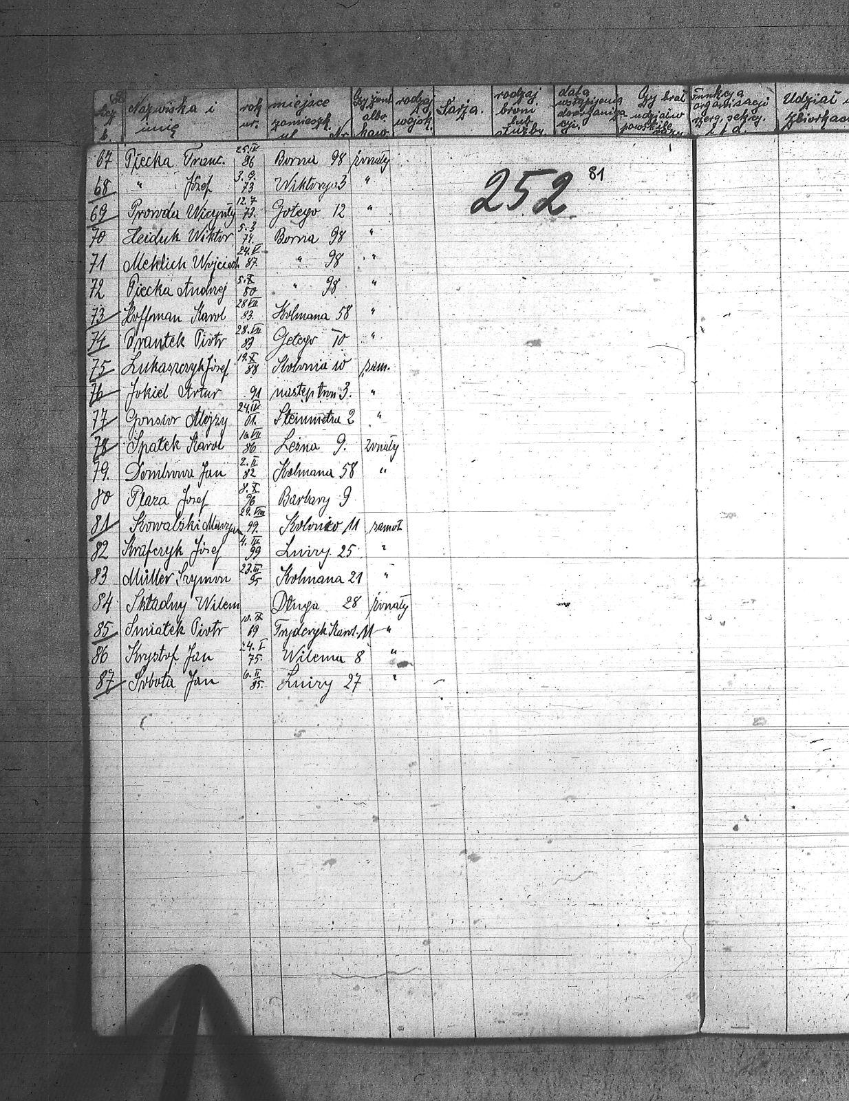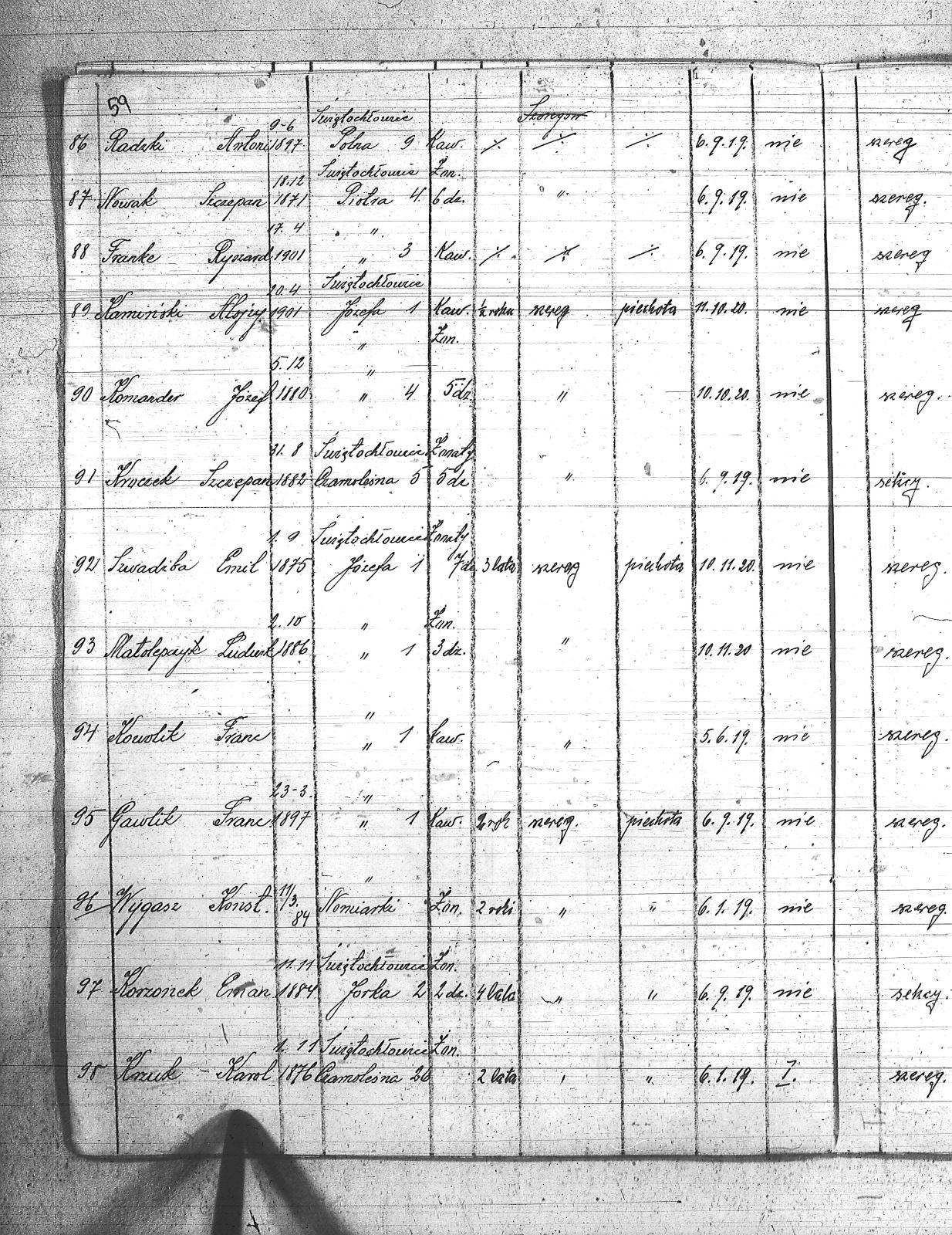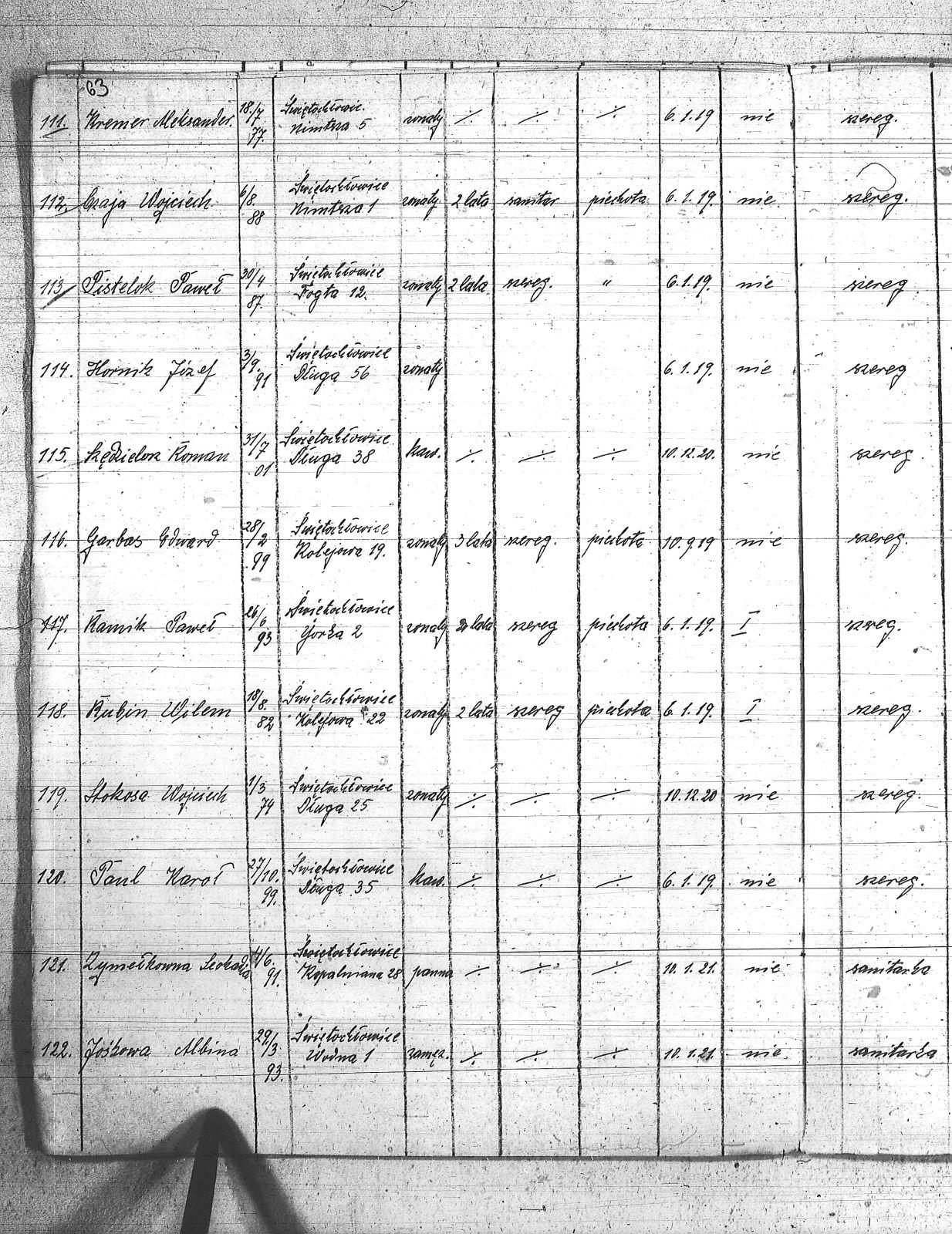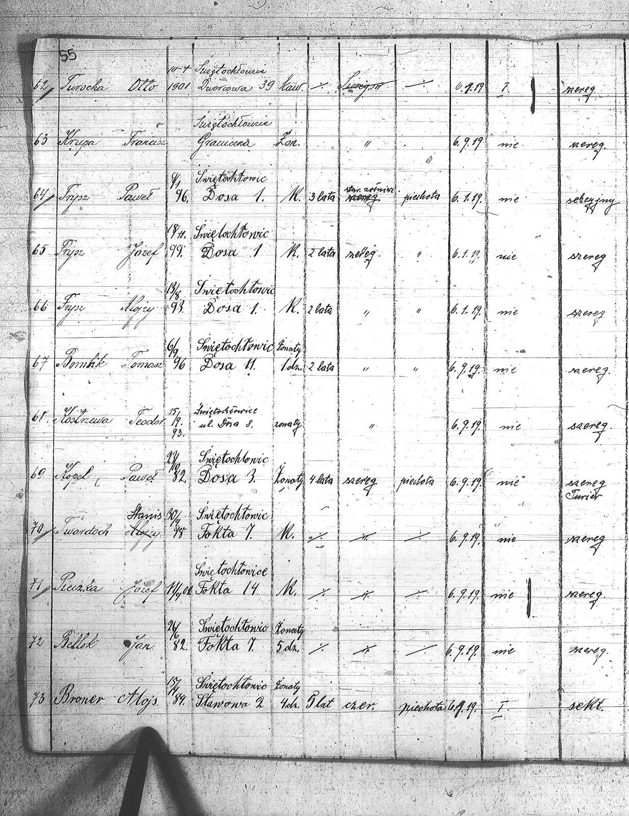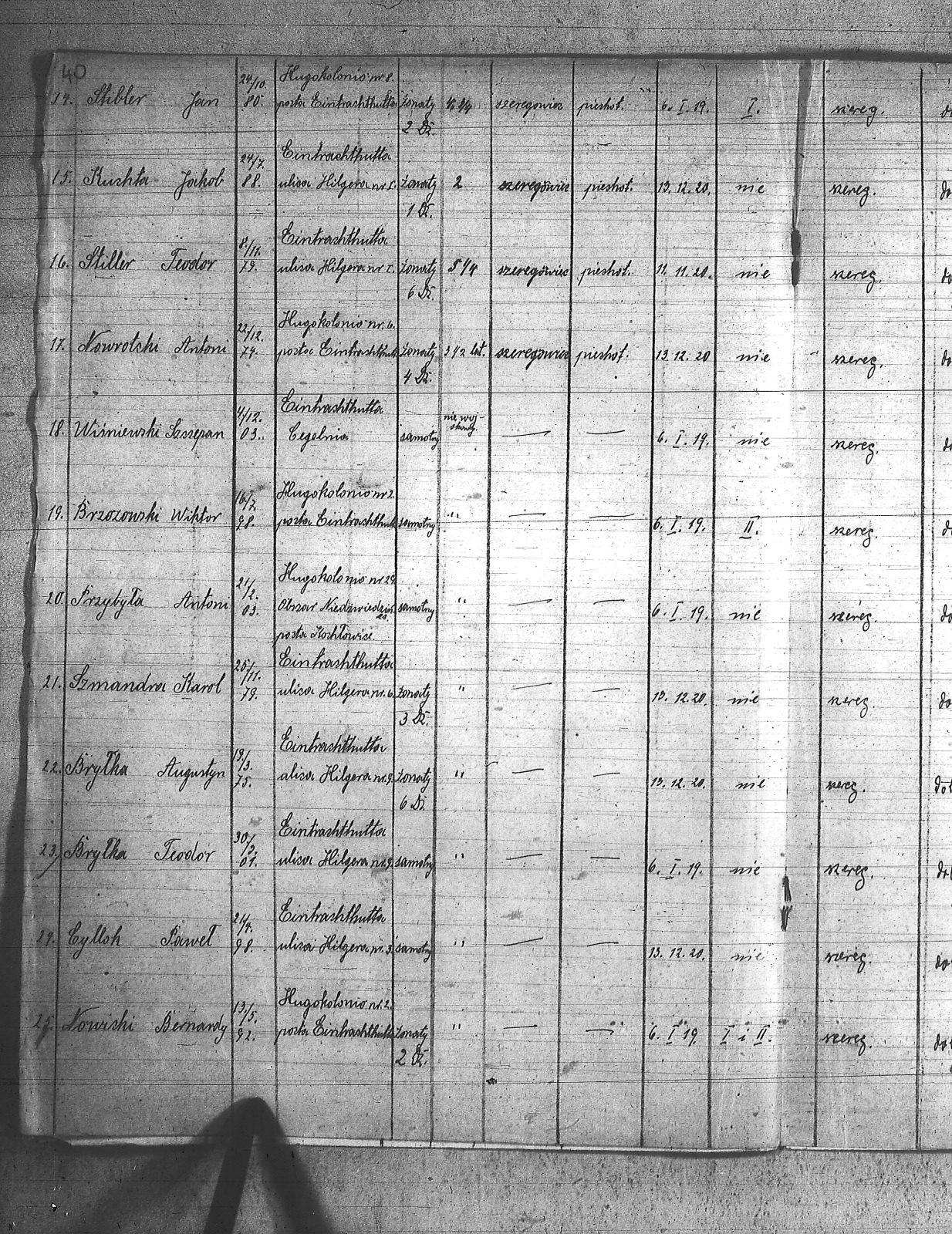 | Tytuł teczki | Spis członków POW, miejscowości: Lipiny I kompania III baon, Chropaczów III kompania, Eintrachthuta, Świętochłowice, Bismarkhuta, Szarlociniec |
