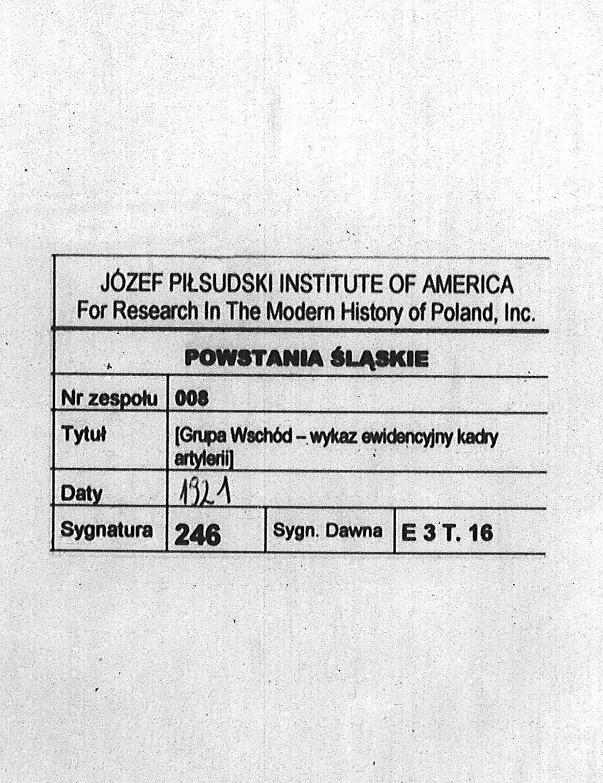 Tytuł Grupa Wschód - wykaz ewidencyjny kadry artylerii