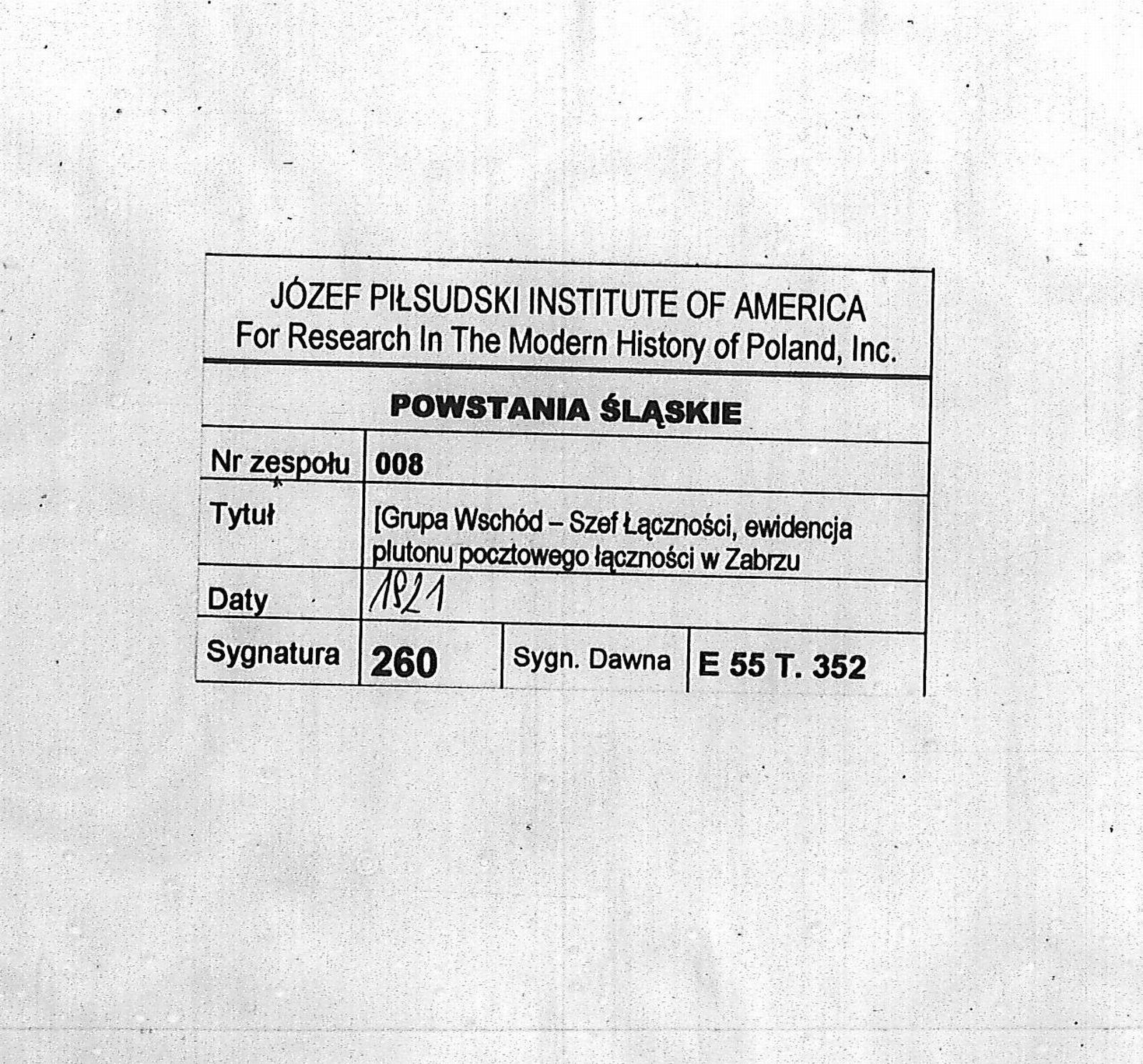 Tytuł Grupa Wschód - Szef Łączności - ewidencja plutonu pocztowego łączności w Zabrzu
