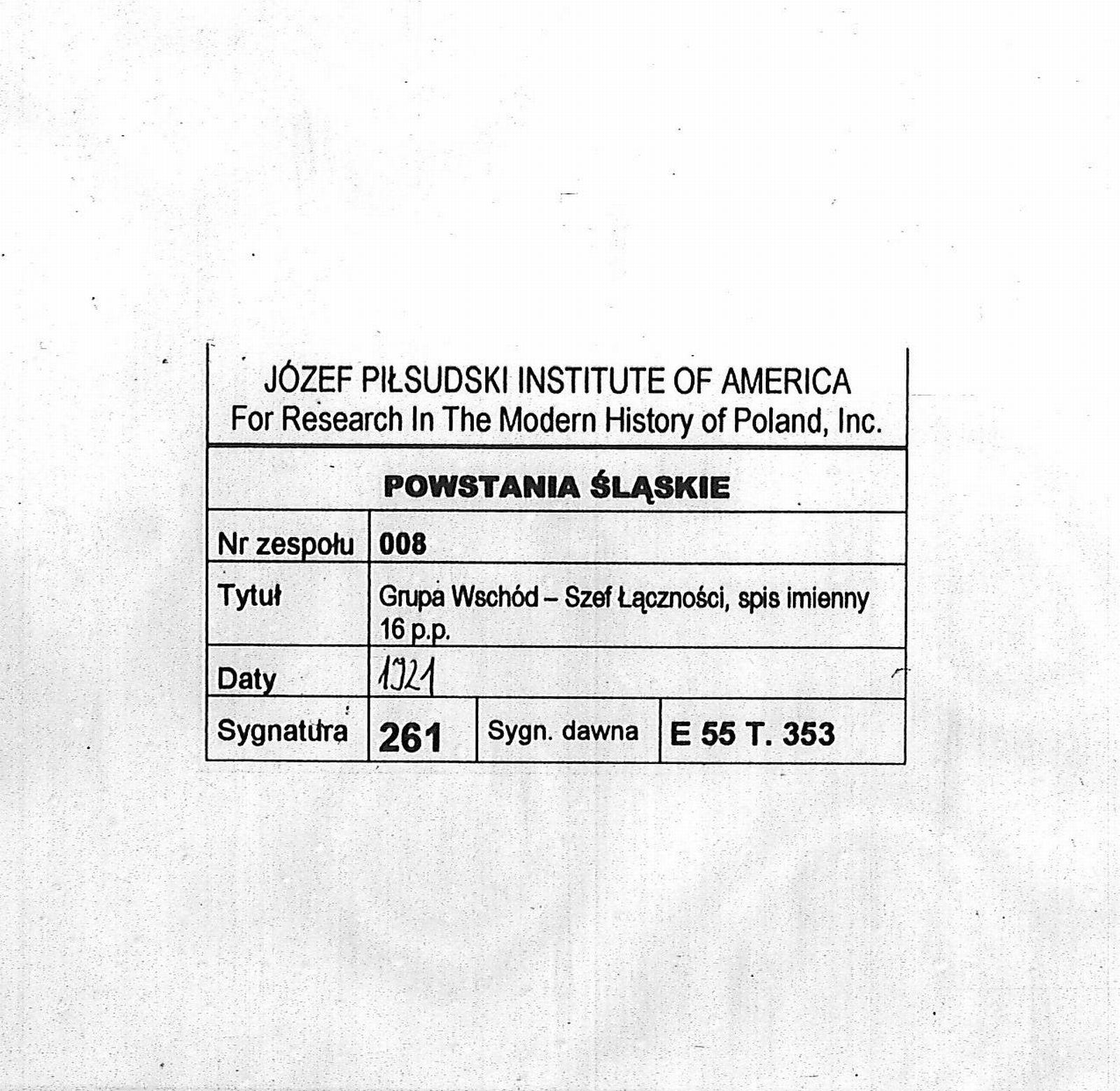 Tytuł Grupa Wschód - Szef Łączności - spis imienny 16 p.p.