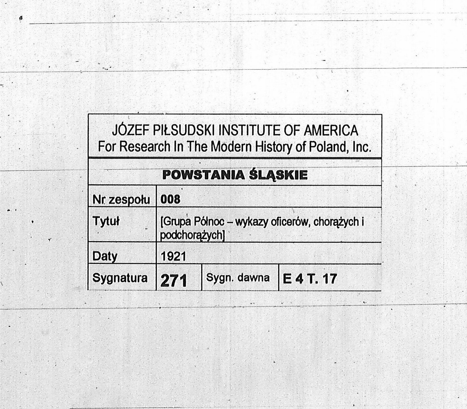 Tytuł Grupa Północ - wykazy oficerów, chorążych i podchorążych