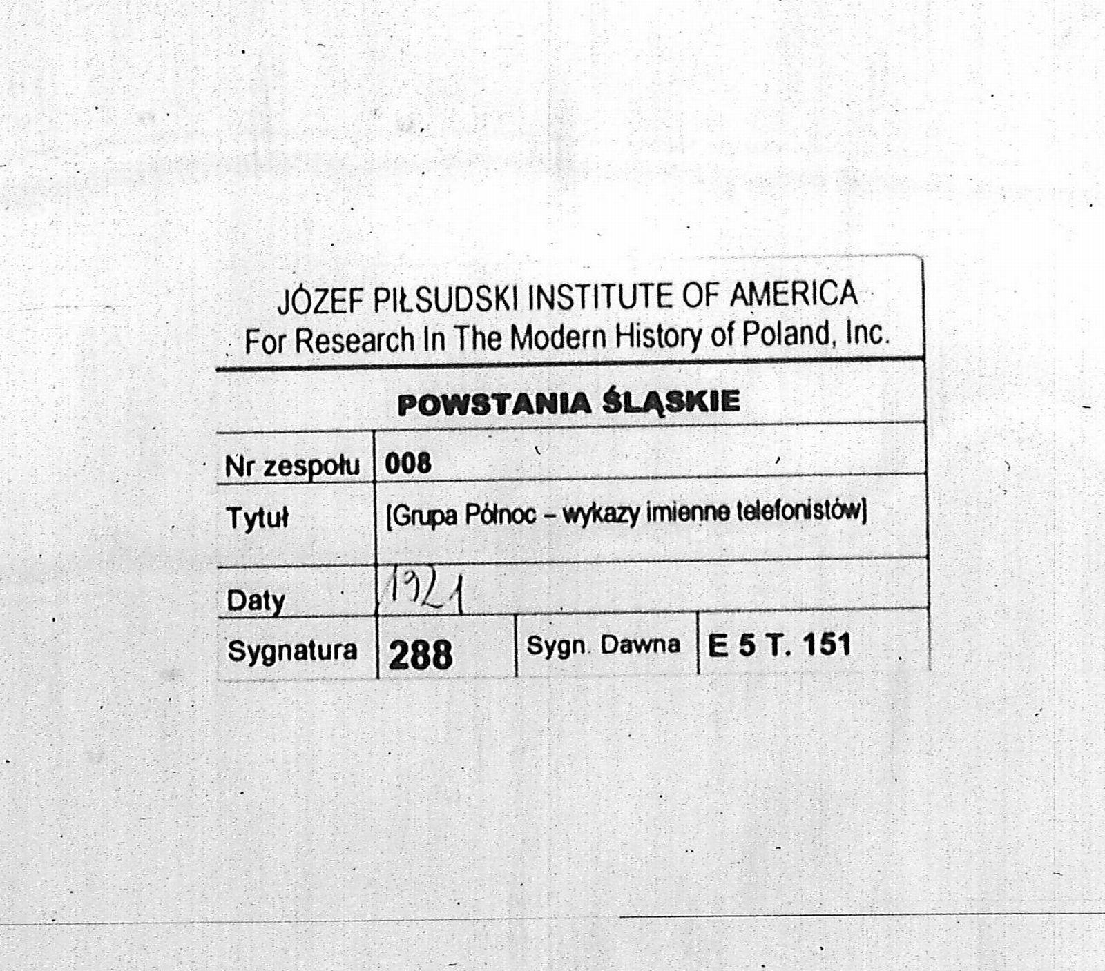 Prace nad odczytywaniem dokumentów z kolekcji: Powstania Śląskie nr 8 przechowywanej w archiwum Instytutu Piłsudskiego w Ameryce i dodawaniem danych do bazy trwają i dane te są cały czas poszerzane.