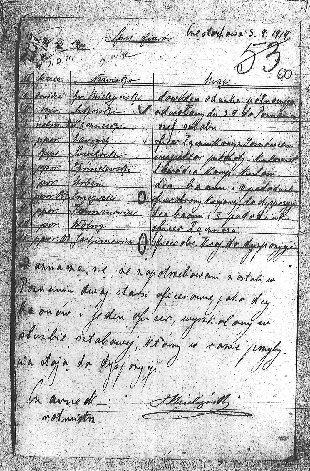 Tytuł Spis oficerów