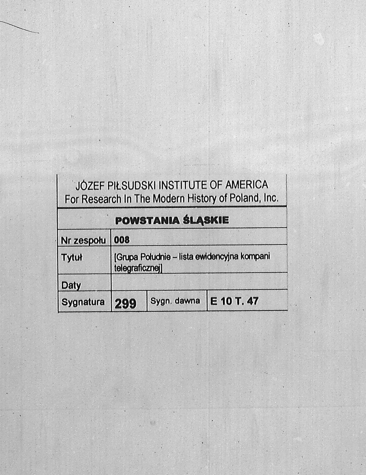 Tytuł Grupa Południe - lista ewidencyjna kompanii telegraficznej