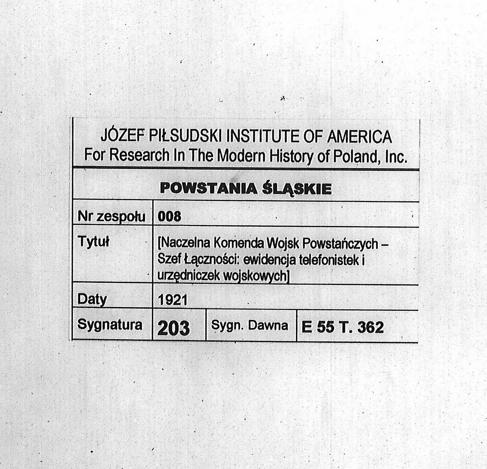 Tytuł Ewidencja telefonistek i urzędniczek wojskowych