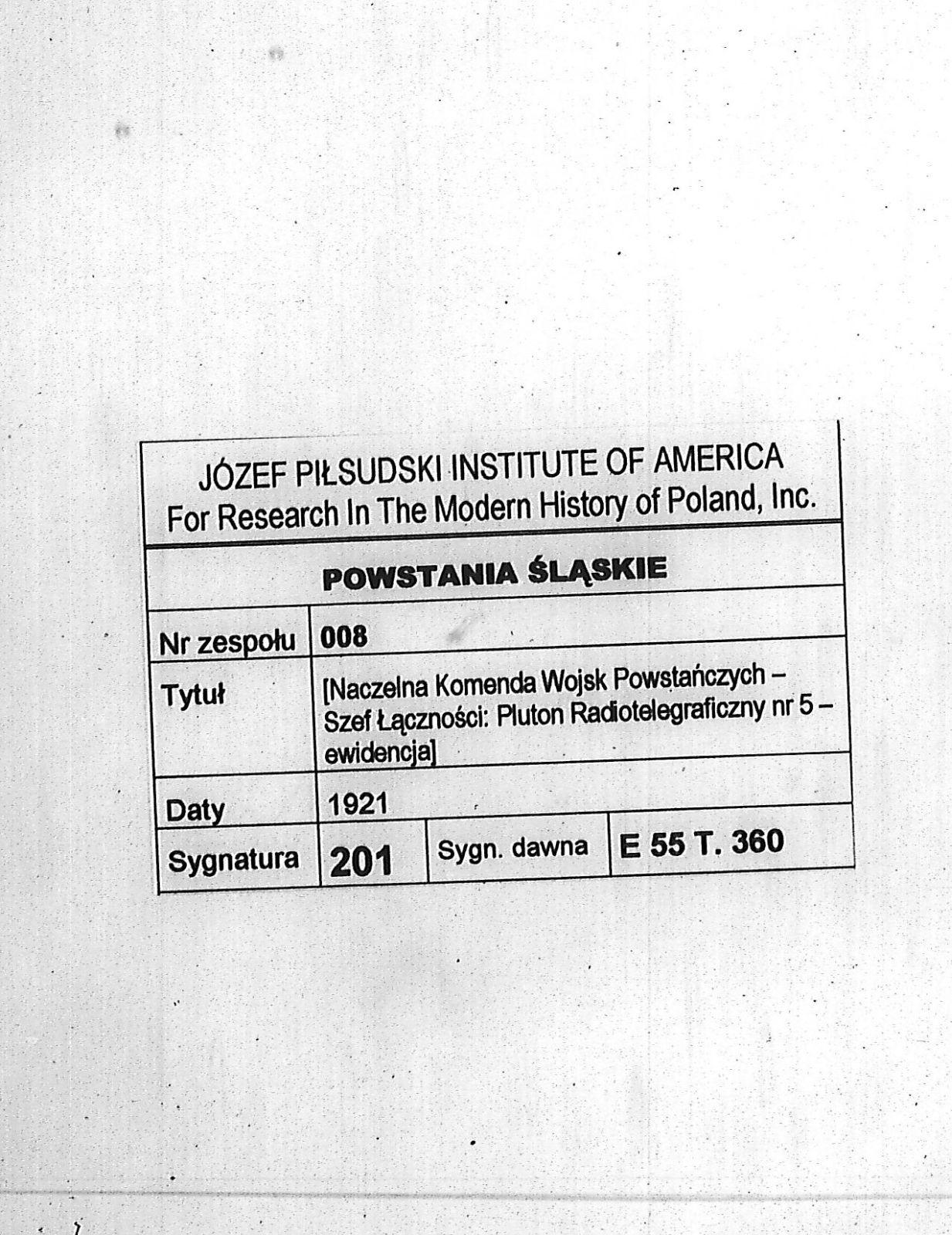 Tytuł Ewidencja - Pluton Radiotelegraficzny nr. 5
