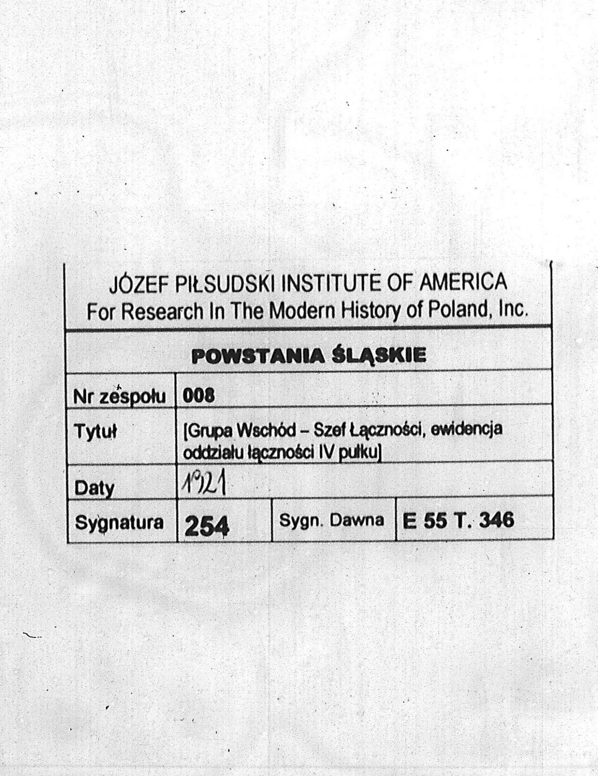 Tytuł Grupa Wschód - Szef Łączności, ewidencja oddziału łączności IV pułku