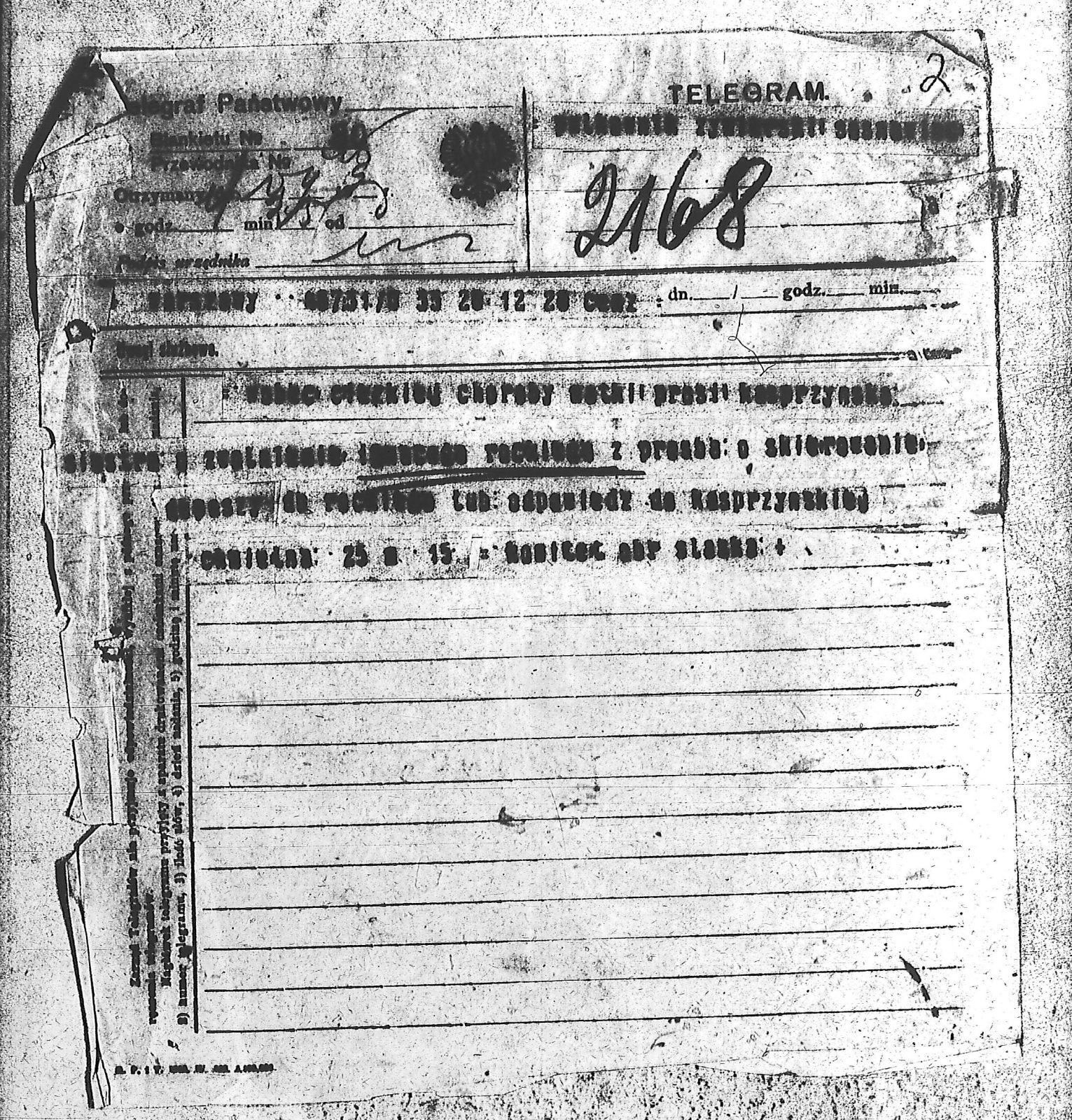Tytuł Telegram - z Warszawy do pułkownika Żymirskiego
