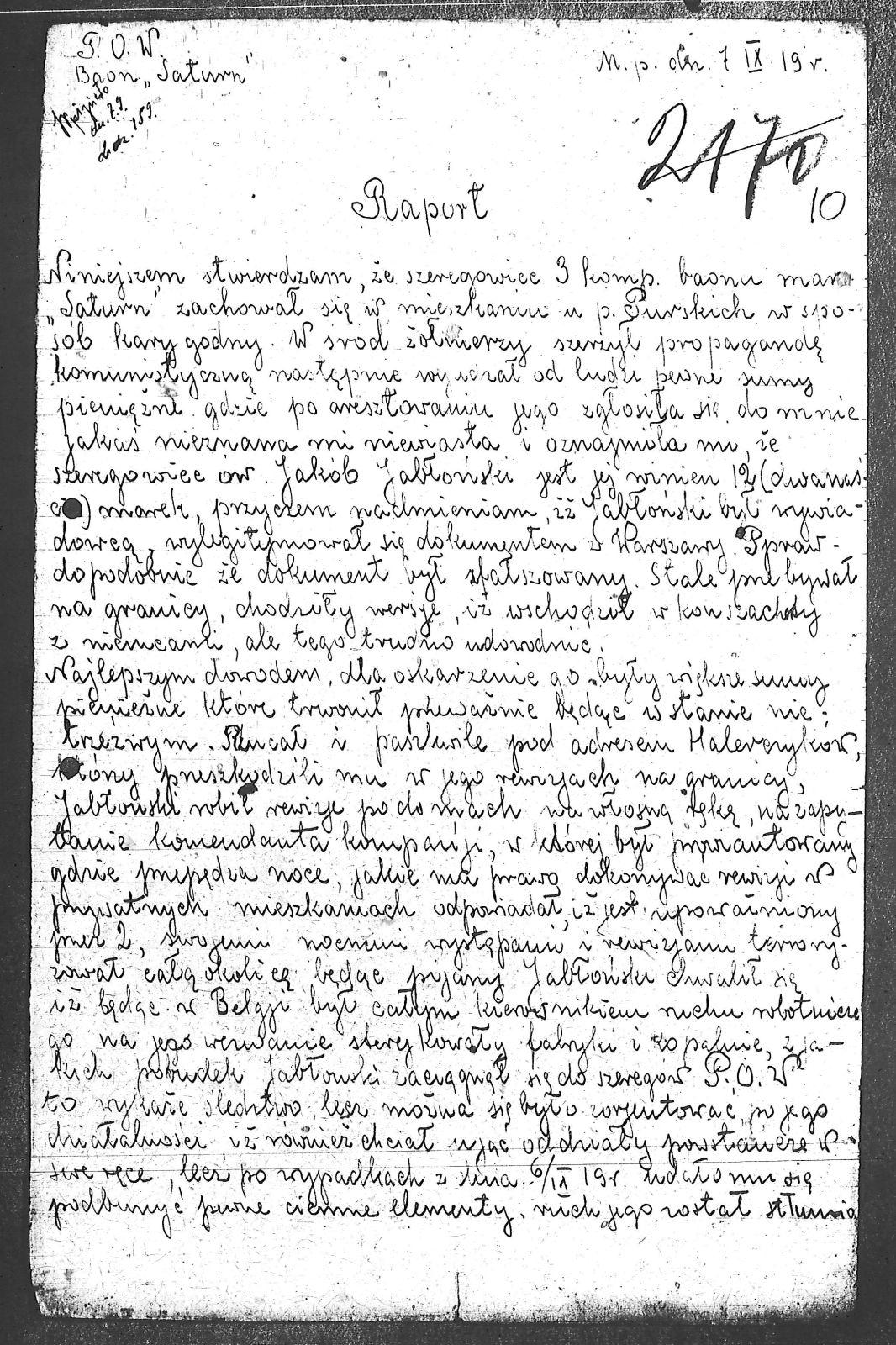 Tytuł Raport dotyczący Jakuba Jabłońskiego