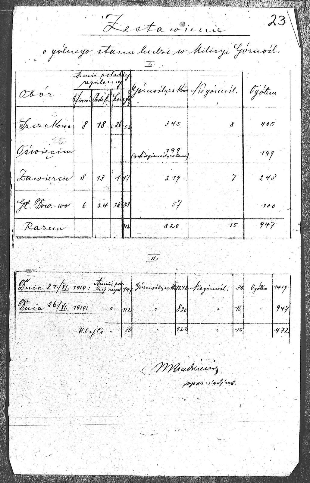 | Tytuł | Zestawienie dotyczące ogólnego stanu ludzi w Milicji Górnośląskiej oraz lista oficerów |