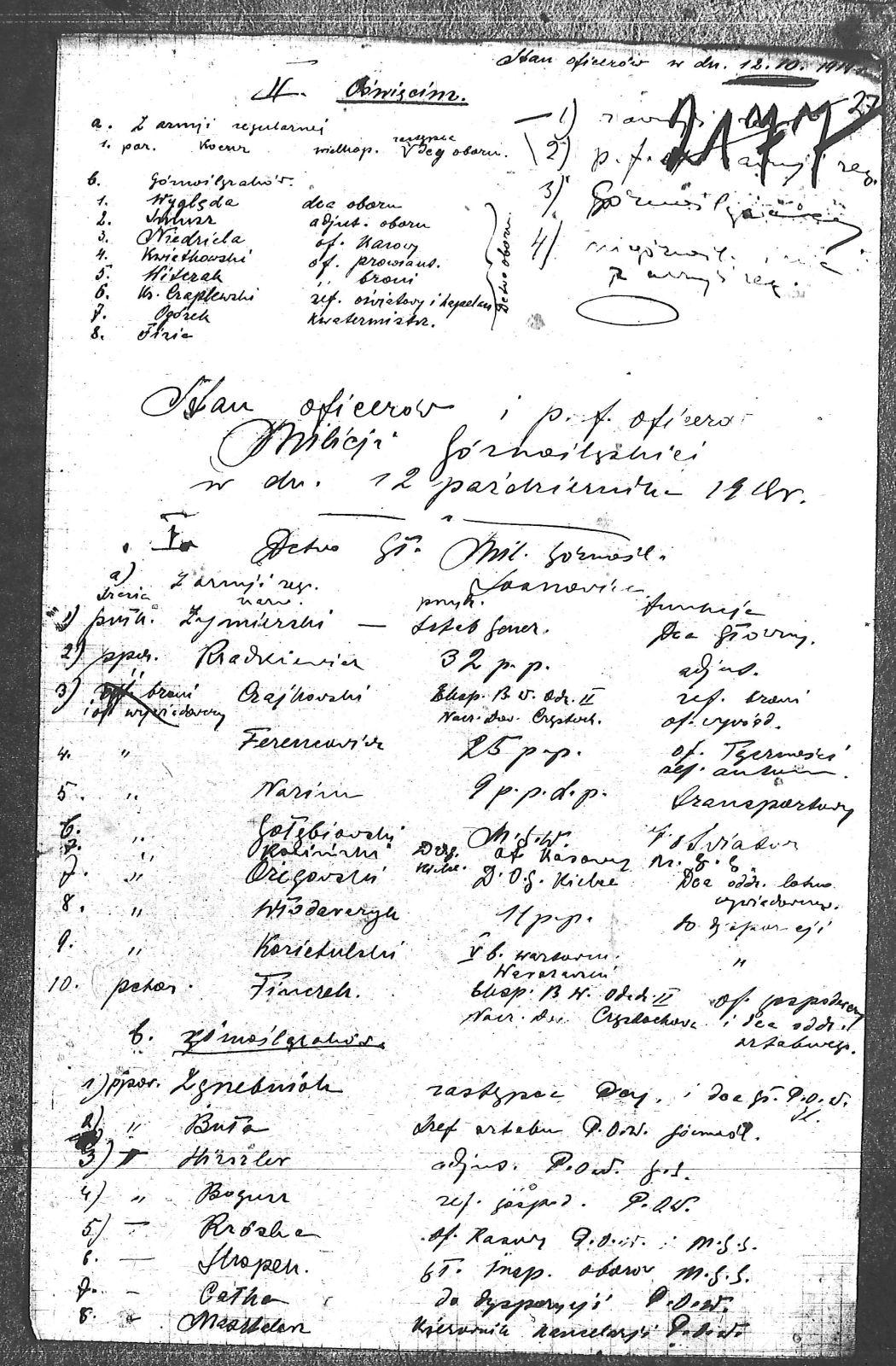 | Osoby | Bogusz; Brzózka; Buła; Całka; Czajkowski; Czaplewski; Ferencowicz; Finczek; Fizia; Gołębiowski; Hirszler; Hropek; Kocur; Kozietulski; Kwiatkowski; Masztelen; Nazim; Niedziela; Ogórek; Ozięgowski; Rosiński; Rzadkiewicz, ; Smusz; Witczak; Włodarczyk; Wyględa; Zgrzebniok; Żymierski; |