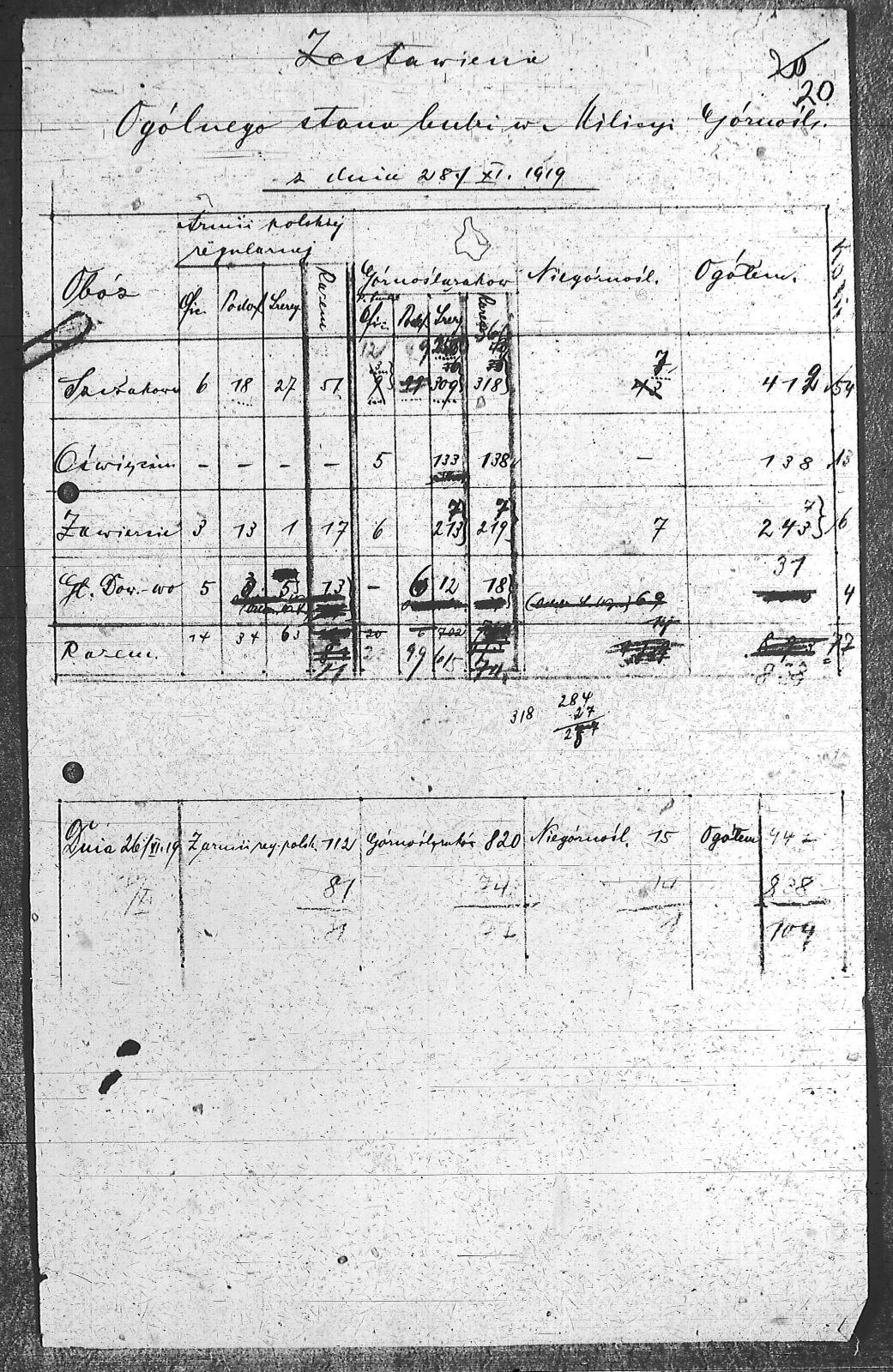 Tytuł Zestawienie ogólnego stanu ludzi w Milicji Górnośląskiej