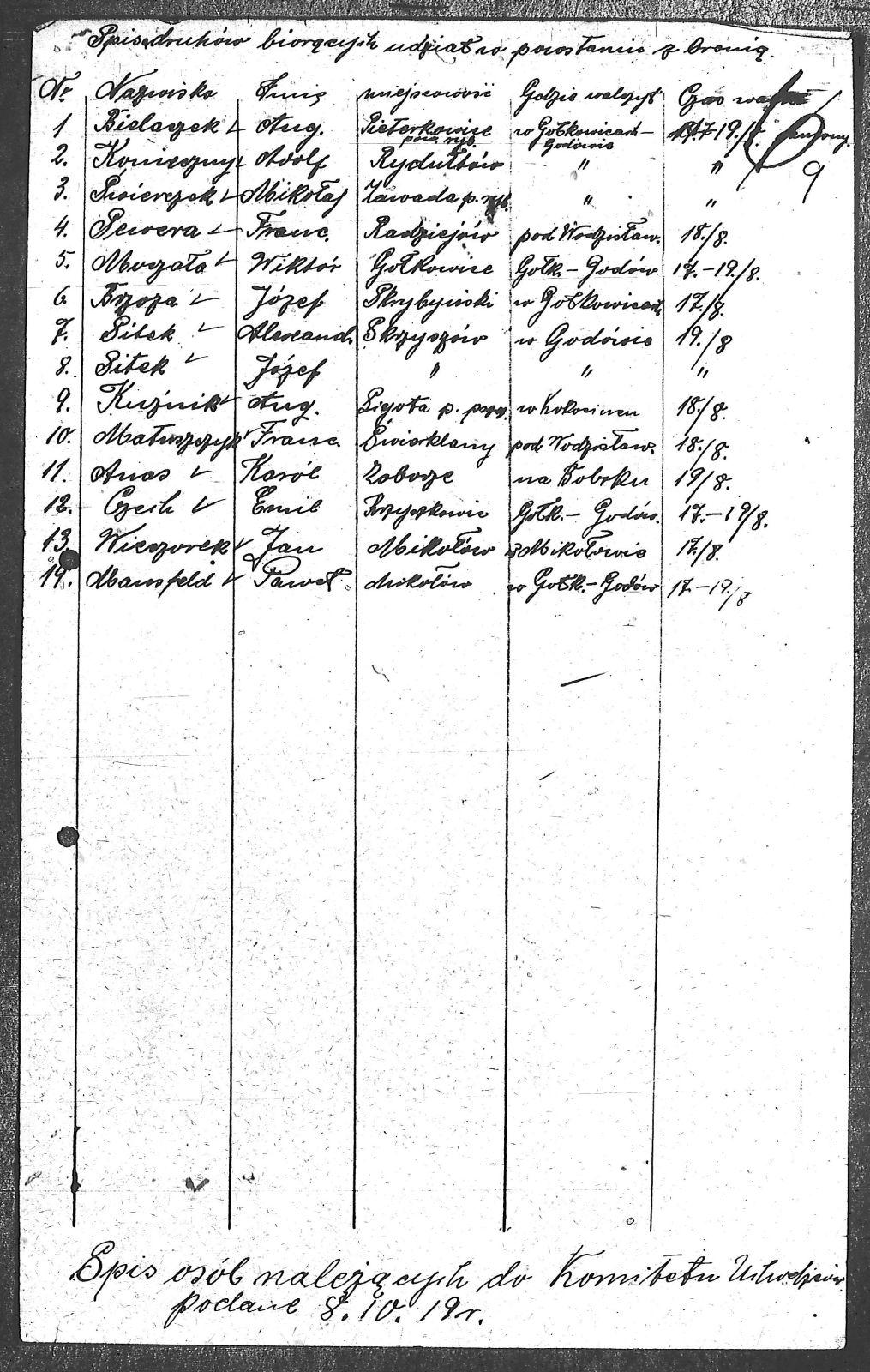 | Osoby | Anas, Karol; Bielaczek, Augustyn; Brzoza, Józef; Czech, Emil; Konieczny, Adolf; Kuźnik, Augustyn; Mansfeld, Paweł; Matuszczyk, Franciszek; Moczała, Wiktor; Pewera, Franciszek; Pitek, Aleksander; Pitek, Józef; Świerczek, Mikołaj; Wieczorek, Jan; |