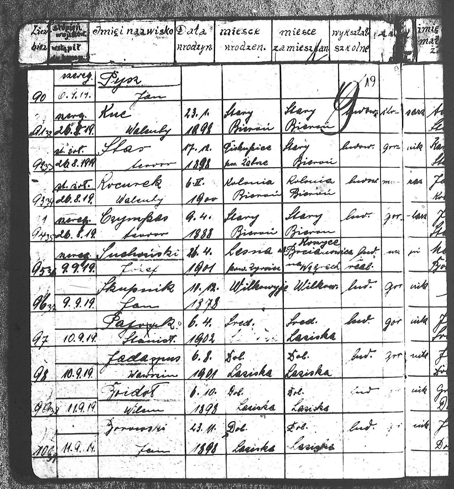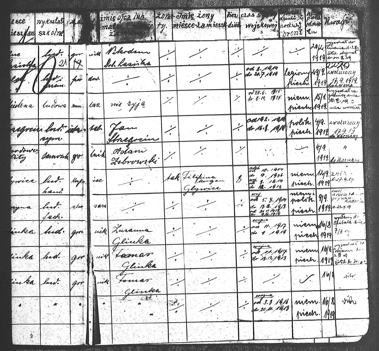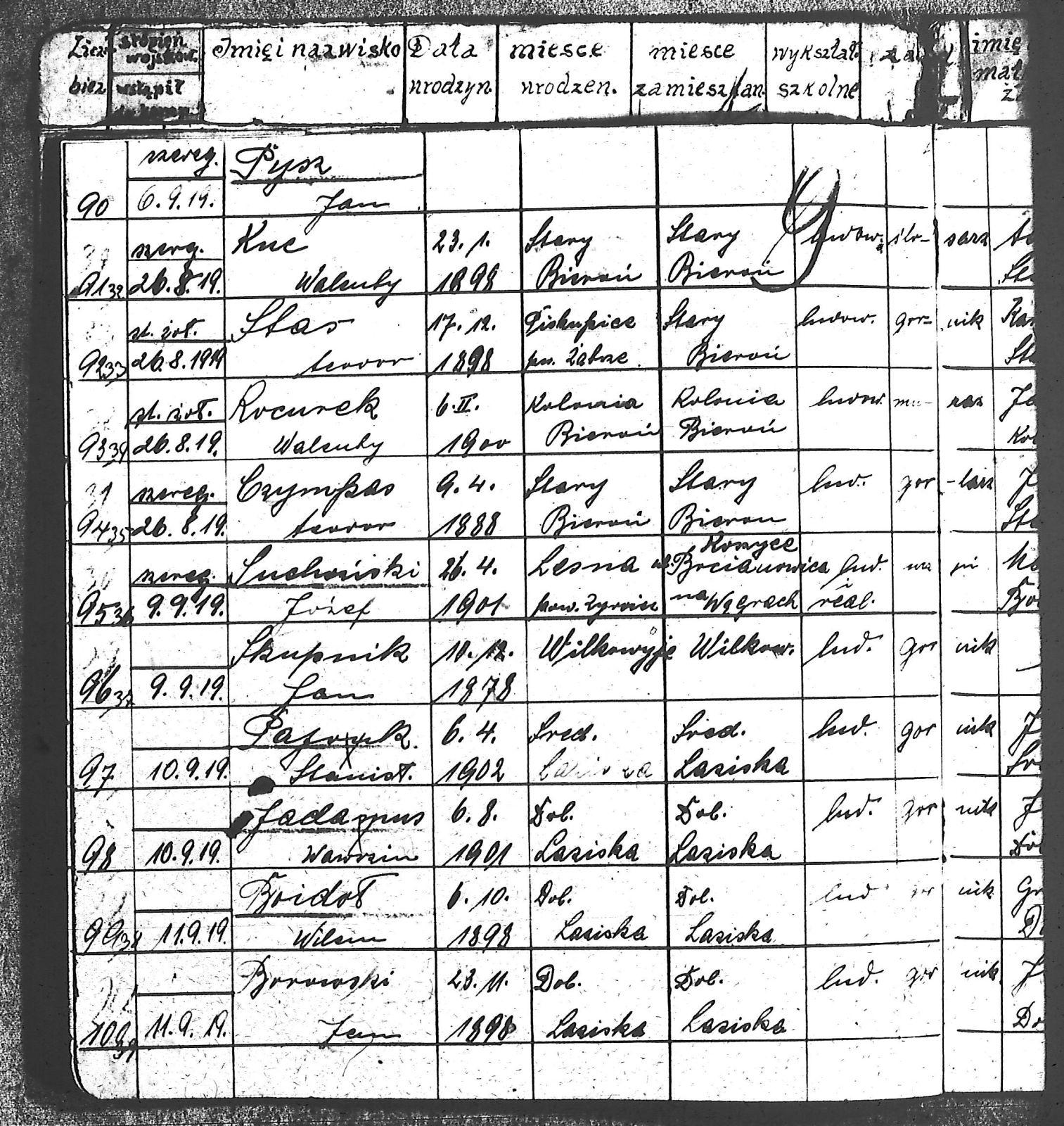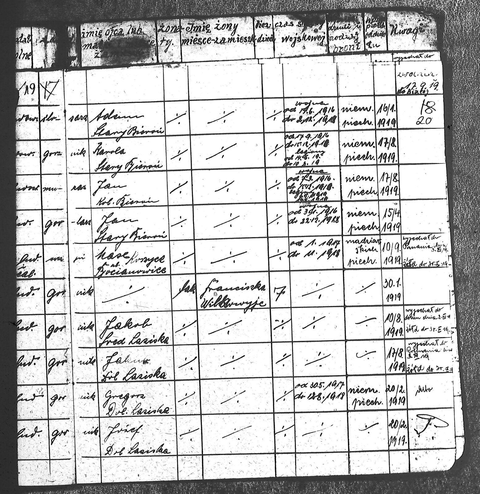 Adam, Stanisław; Badura, Alojzy; Baran, Tomasz; Biel; Biel, Antoni; Bienia, Ignacy; Boidoł, Wilem; Borowski, Jan; Brassy, Alfred; Brassy, Bruno; Bromboszcz, Wincenty; Broncel, Tomasz; Buczek, ; Budny, Teofil; Bywalec, Stanisław; Cebula, Franciszek; Ciastoń, Antoni; Cimala, August; Cofała, Kazimierz; Coida, Ludwig; Czympas, Teodor; Drobik, Wilem; Duda, Józef; Dziubany, Jan; Dziurosz, Antoni; Fizia, Paweł; Fyda, Jan; Fyjak, Karol; Gabrych, Kazimierz; Gasz, Franciszek; Gawin, Robert; Gibas, Andrzej; Golus, Ludwik; Goroń, Antoni; Gowin, Józef; Hoła, Wincenty; Ispek, Adam; Jadamus, Jan; Jadamus, Wawrzyn; Jakubowski, Stefan; Janusz, Jan; Kalfas, Józef; Kapczak, Franciszek; Kapczak, Michał; Kiełtyka, Teodor; Kiełtyka, Wilem; Klamer, Edmund; Kłoska, Jan; Knapik, Stefan; Kocima, Leopold; Kocurek, Franciszek I; Kocurek, Jan; Kocurek, Józef; Kocurek, Klemens; Kocurek, Walenty; Kopański, Franciszek; Kopański, Józef; Korus, Wiktor; Kowal, Józef; Kozłowski, Stanisław; Krupa, Józef; Kuc, Walenty; Kucharski, Stanisław; Kucharski, Władysław; Kurczok, Paweł; Kurek, Jan; Kuś, Józef; Kuźnik, Augustyn; Labuzda, Stanisław; Lichnowski, Jan; Loska, Stanisław; Lubecki, Sylwester; Ludziarczyk, Edward; Łukaszek, Jan; Małek, Augustyn; Mandrysz, Jan; Mansfeld, Ernest; Mańka, Jan; Matlakiewicz, Jakub; Miłoncz, Wiktor; Möck, Marcin; Moroń, Teodor; Olesz, Wiktor; Oprzondek, Jan; Optułowicz, Franciszek; Ostrowski, Władysław; Otrzonsek, Jan; Pajonk, Mikołaj; Pajonk, Stanisław; Pajonk, Wilem; Pawełczyk, Walenty; Pawełek, Jan; Pawlus, Antoni; Pawlus, Roman; Piecha, Emanuel; Piecha, Jan; Piecha, Julian; Piekarczyk, Franciszek; Pisarzowski, Karol; Piszczek, Robert; Płoch, Wincenty; Popczyk, Jan; Prasoł, Alojzy; Prasoł, Jan; Prasoł, Paweł; Pukocz, Jan; Pukocz, Paweł; Pukocz, Robert; Pyras, Jan; Pysz, Jan; Pysz, Leon; Pysz, Ludwig; Reclik, Franciszek; Reinoga, Karol; Sanetra, Jan; Sewerin, Franciszek; Sikora, Jan; Sikora, Józef; Skupnik, Jan; Sobik, Karol; Staś, Teodor; Stawowy, Teodor; Styncel, Karol; Suchoński, Józef; Szmajduch, Franciszek II; Szula, Wiktor; Szuta, Wacław; Szymacha, Józef; Śledziak, Józef; Śledziak, Karol; Tomiczek, Franciszek; Urbański, Tomasz; Wadas, Karol; Wanky, Karol; Wanzel, Andrzej; Wanzel, Józef; Weszka, Piotr; Wiatr, Józef; Widuch, Walenty; Wieczorek, Jan; Wilk, Józef; Winkler, Ernest; Witta, Emil; Wojcik, Albin; Wojewodzic, Ludwig; Wolny, Szczepan; Wosalik, Józwf; Woźniakowski, Wilem; Wrona, Mikołaj; Wyleżoł, Paweł; Zielonka, Piotr; Żebrowski, Piotr; Żmija, Józef; |
