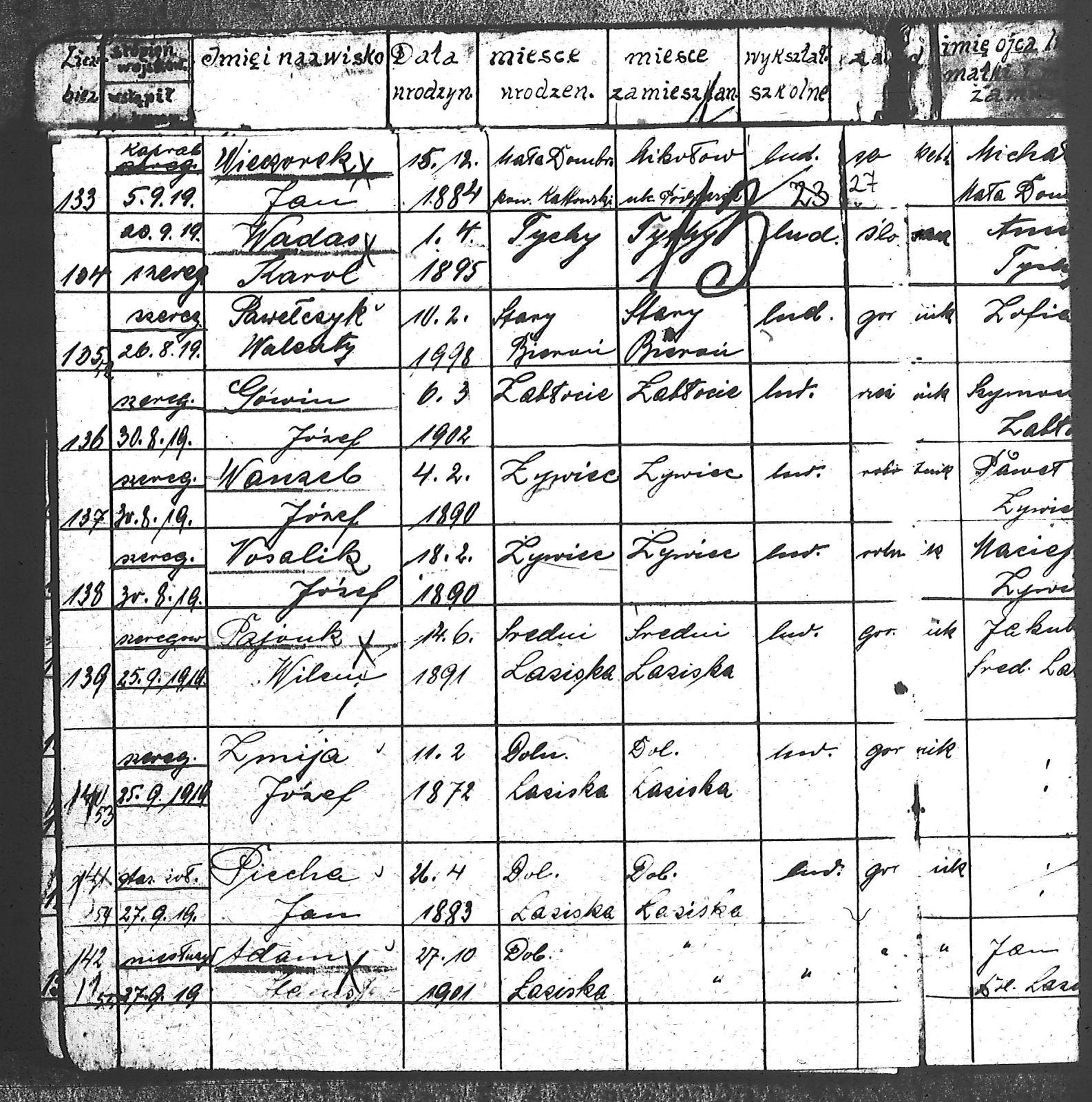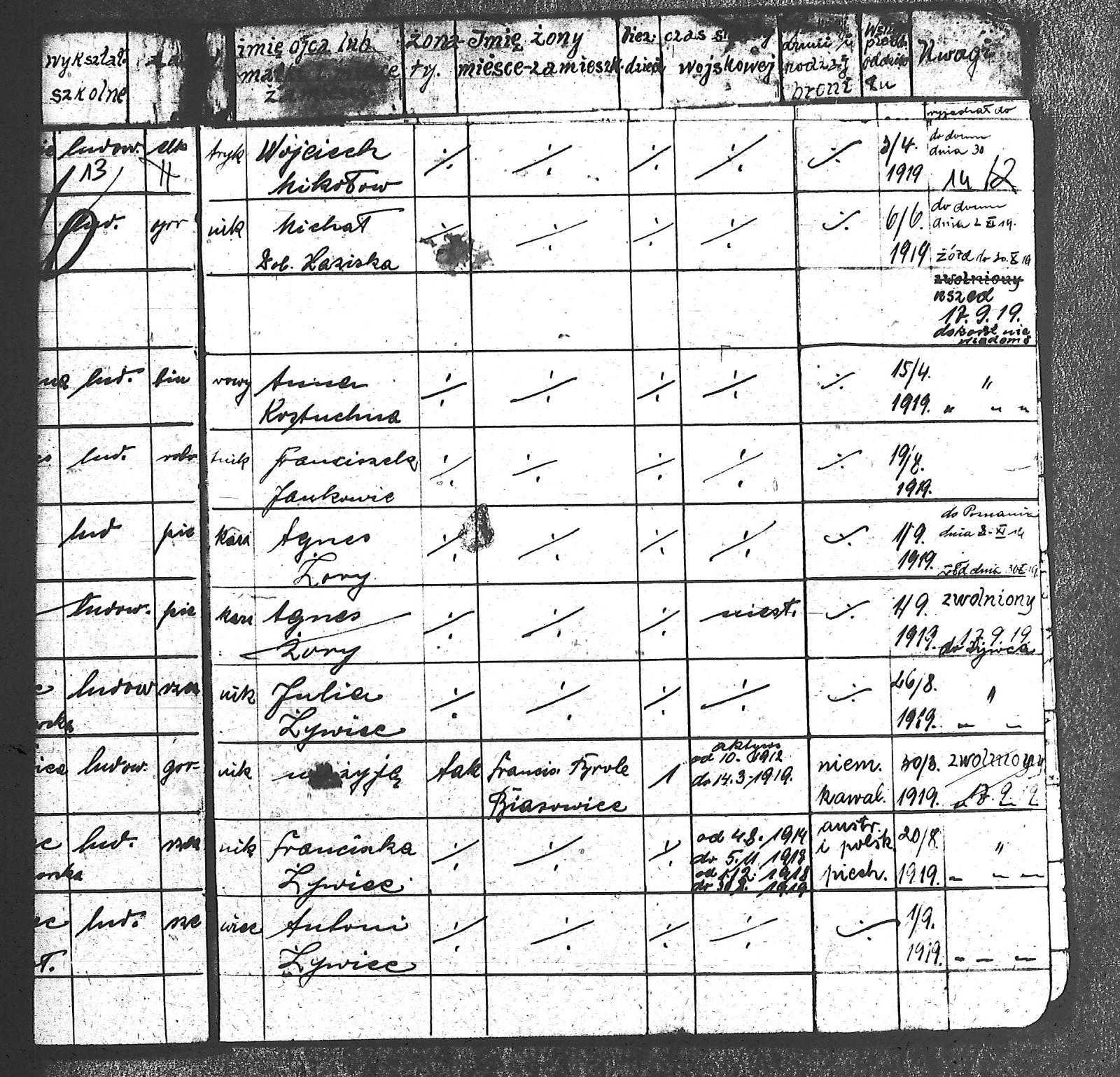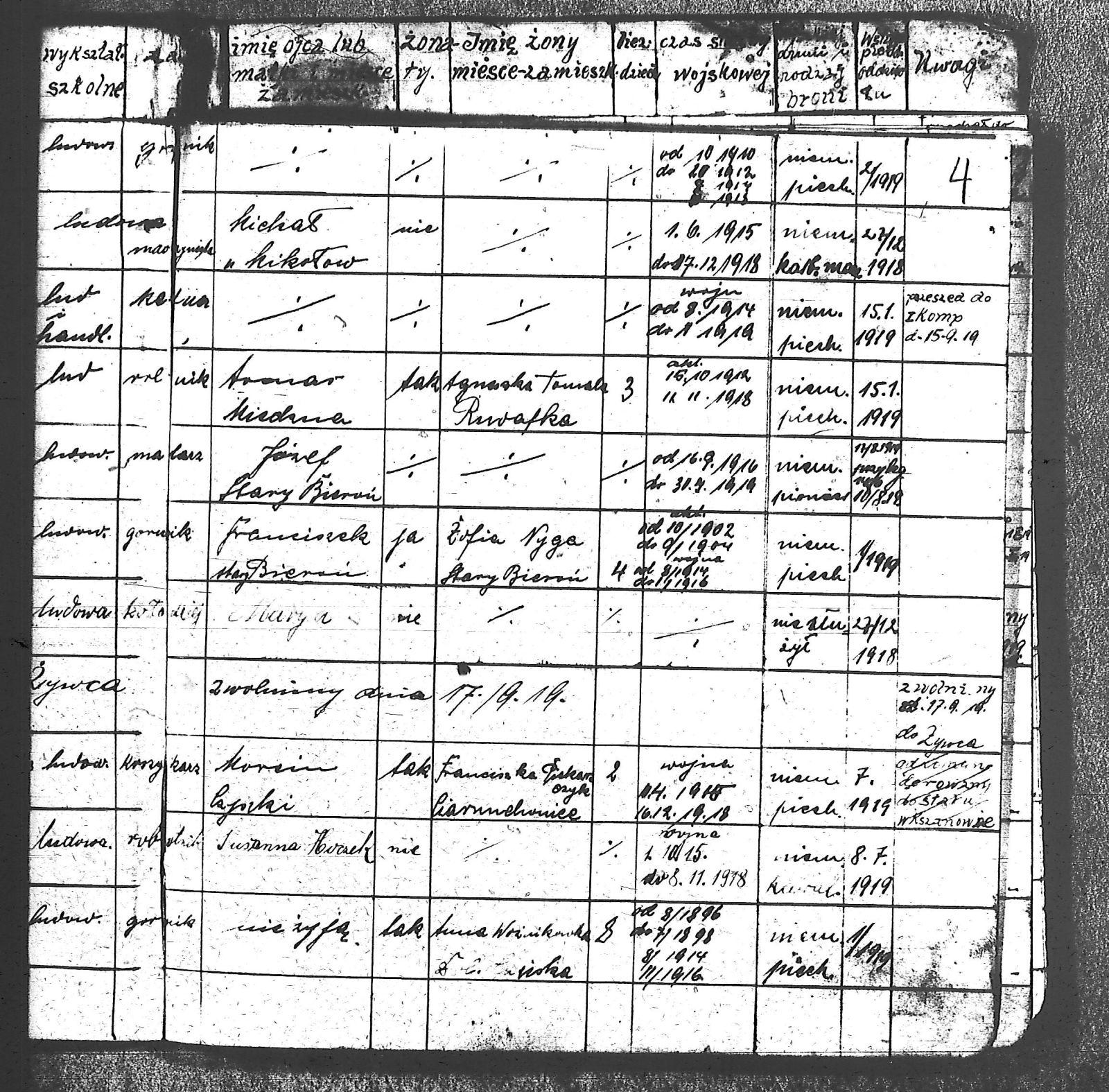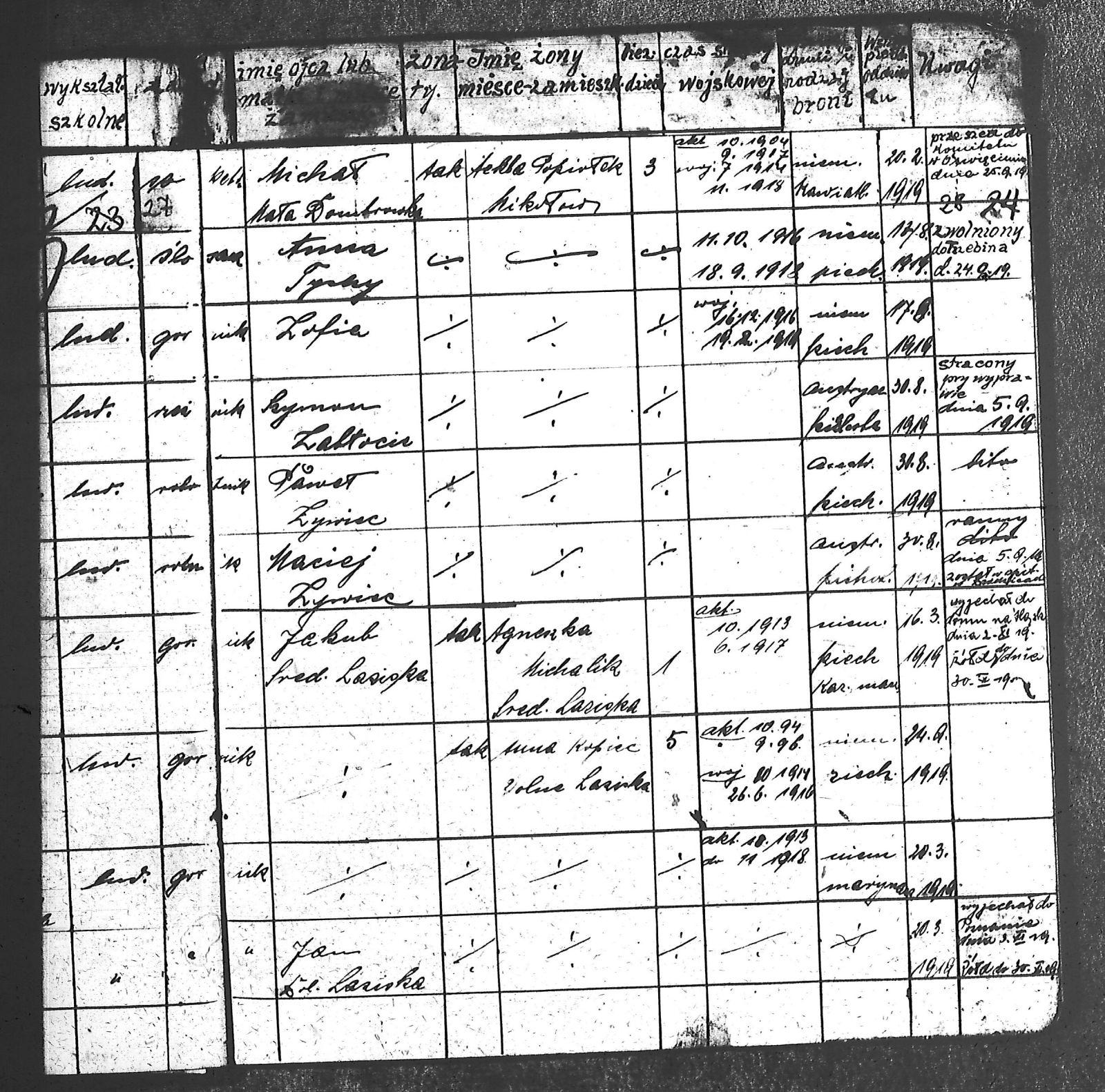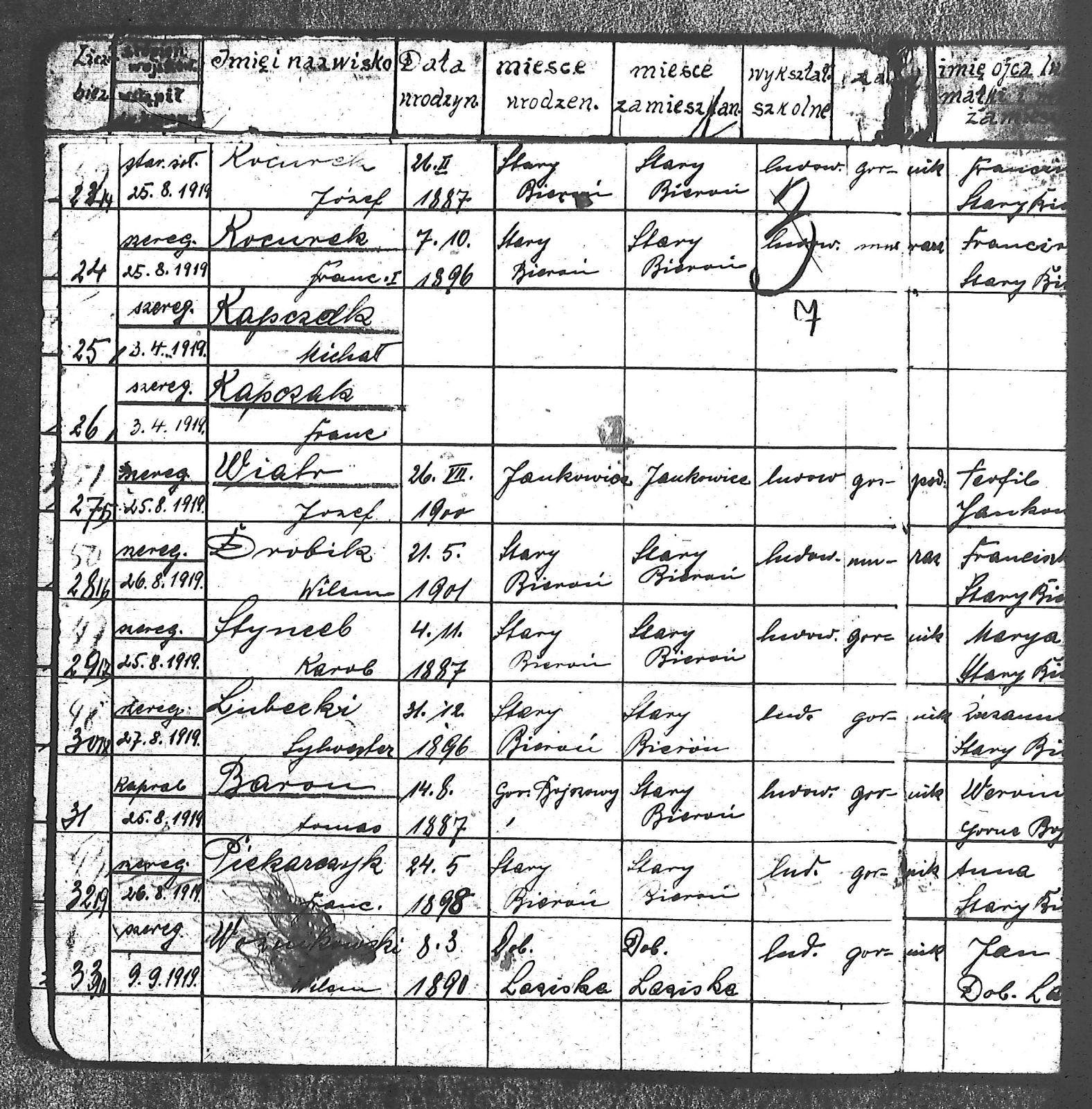 Adam, Stanisław; Badura, Alojzy; Baran, Tomasz; Biel; Biel, Antoni; Bienia, Ignacy; Boidoł, Wilem; Borowski, Jan; Brassy, Alfred; Brassy, Bruno; Bromboszcz, Wincenty; Broncel, Tomasz; Buczek, ; Budny, Teofil; Bywalec, Stanisław; Cebula, Franciszek; Ciastoń, Antoni; Cimala, August; Cofała, Kazimierz; Coida, Ludwig; Czympas, Teodor; Drobik, Wilem; Duda, Józef; Dziubany, Jan; Dziurosz, Antoni; Fizia, Paweł; Fyda, Jan; Fyjak, Karol; Gabrych, Kazimierz; Gasz, Franciszek; Gawin, Robert; Gibas, Andrzej; Golus, Ludwik; Goroń, Antoni; Gowin, Józef; Hoła, Wincenty; Ispek, Adam; Jadamus, Jan; Jadamus, Wawrzyn; Jakubowski, Stefan; Janusz, Jan; Kalfas, Józef; Kapczak, Franciszek; Kapczak, Michał; Kiełtyka, Teodor; Kiełtyka, Wilem; Klamer, Edmund; Kłoska, Jan; Knapik, Stefan; Kocima, Leopold; Kocurek, Franciszek I; Kocurek, Jan; Kocurek, Józef; Kocurek, Klemens; Kocurek, Walenty; Kopański, Franciszek; Kopański, Józef; Korus, Wiktor; Kowal, Józef; Kozłowski, Stanisław; Krupa, Józef; Kuc, Walenty; Kucharski, Stanisław; Kucharski, Władysław; Kurczok, Paweł; Kurek, Jan; Kuś, Józef; Kuźnik, Augustyn; Labuzda, Stanisław; Lichnowski, Jan; Loska, Stanisław; Lubecki, Sylwester; Ludziarczyk, Edward; Łukaszek, Jan; Małek, Augustyn; Mandrysz, Jan; Mansfeld, Ernest; Mańka, Jan; Matlakiewicz, Jakub; Miłoncz, Wiktor; Möck, Marcin; Moroń, Teodor; Olesz, Wiktor; Oprzondek, Jan; Optułowicz, Franciszek; Ostrowski, Władysław; Otrzonsek, Jan; Pajonk, Mikołaj; Pajonk, Stanisław; Pajonk, Wilem; Pawełczyk, Walenty; Pawełek, Jan; Pawlus, Antoni; Pawlus, Roman; Piecha, Emanuel; Piecha, Jan; Piecha, Julian; Piekarczyk, Franciszek; Pisarzowski, Karol; Piszczek, Robert; Płoch, Wincenty; Popczyk, Jan; Prasoł, Alojzy; Prasoł, Jan; Prasoł, Paweł; Pukocz, Jan; Pukocz, Paweł; Pukocz, Robert; Pyras, Jan; Pysz, Jan; Pysz, Leon; Pysz, Ludwig; Reclik, Franciszek; Reinoga, Karol; Sanetra, Jan; Sewerin, Franciszek; Sikora, Jan; Sikora, Józef; Skupnik, Jan; Sobik, Karol; Staś, Teodor; Stawowy, Teodor; Styncel, Karol; Suchoński, Józef; Szmajduch, Franciszek II; Szula, Wiktor; Szuta, Wacław; Szymacha, Józef; Śledziak, Józef; Śledziak, Karol; Tomiczek, Franciszek; Urbański, Tomasz; Wadas, Karol; Wanky, Karol; Wanzel, Andrzej; Wanzel, Józef; Weszka, Piotr; Wiatr, Józef; Widuch, Walenty; Wieczorek, Jan; Wilk, Józef; Winkler, Ernest; Witta, Emil; Wojcik, Albin; Wojewodzic, Ludwig; Wolny, Szczepan; Wosalik, Józwf; Woźniakowski, Wilem; Wrona, Mikołaj; Wyleżoł, Paweł; Zielonka, Piotr; Żebrowski, Piotr; Żmija, Józef; |