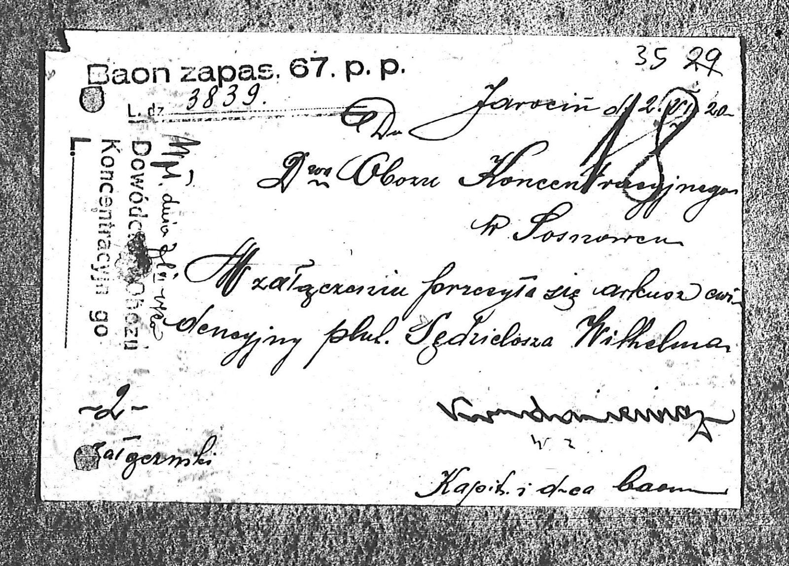 Tytuł Do dowództwa obozu koncentracyjnego w Sosnowcu