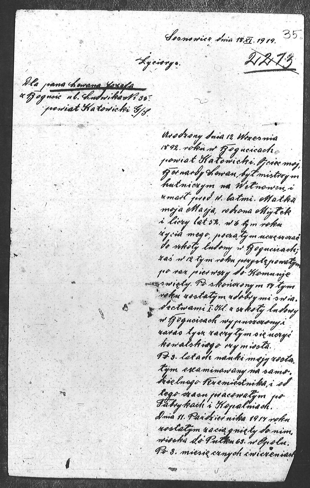 Tytuł teczki[Życiorysy i listy biorących udział w powstaniu 1919 roku]