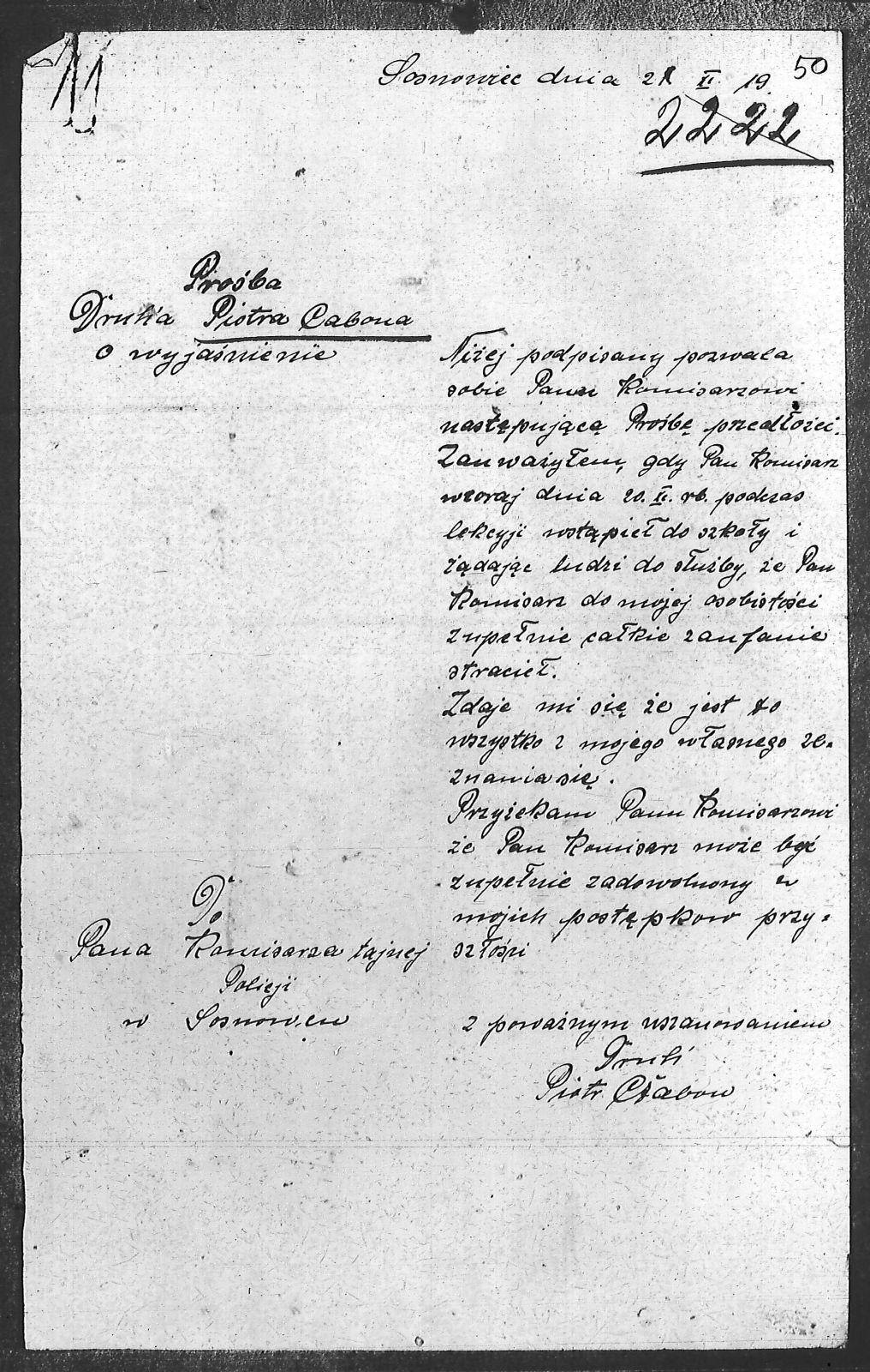 Tytuł Prośba o wyjaśnienie do komisarza tajnej policji w Sosnowcu