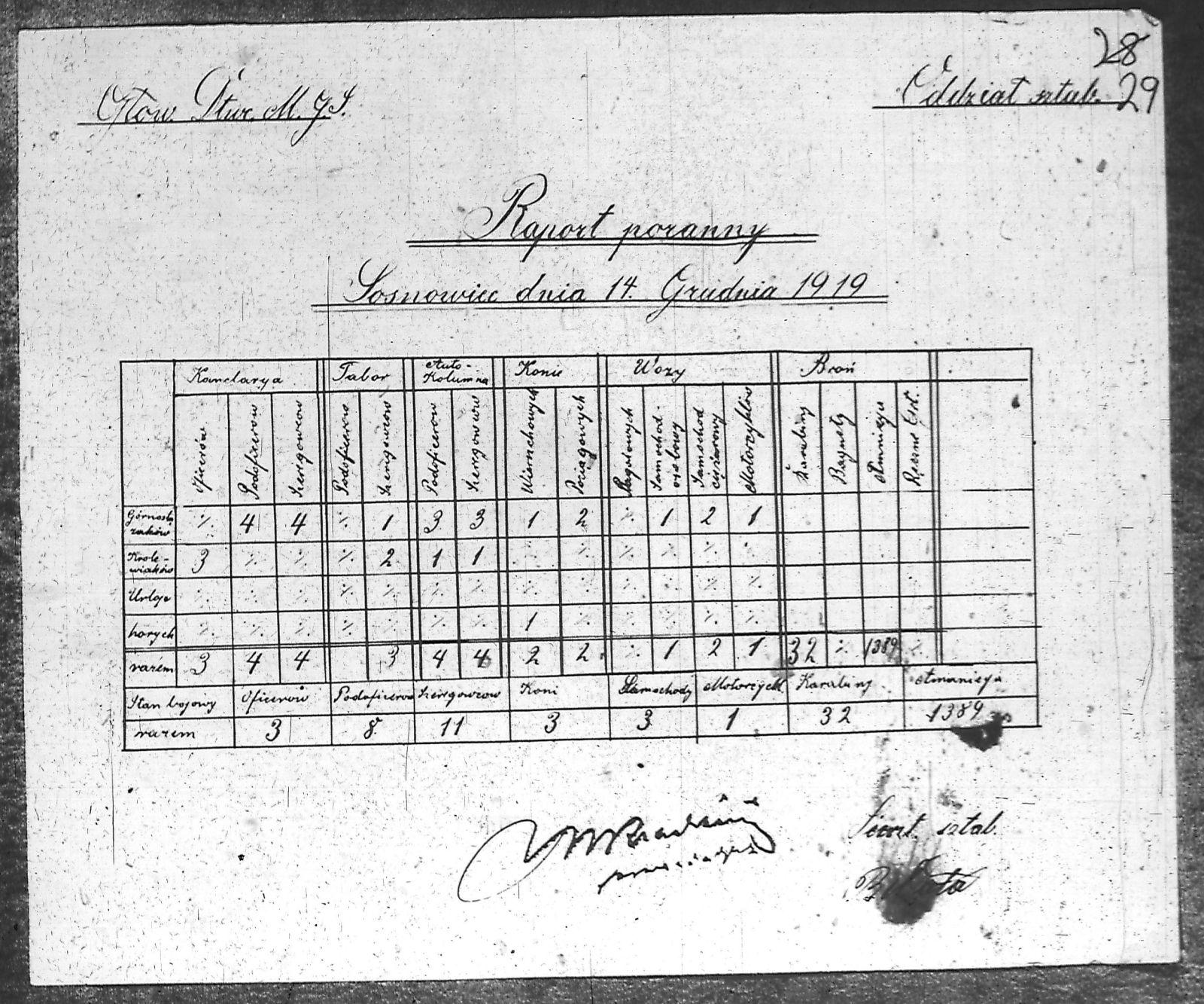| Tytuł | Raport poranny dotyczący kawalerii, taboru, auto-kolumny, koni, wozów, broni oraz stan bojowy |