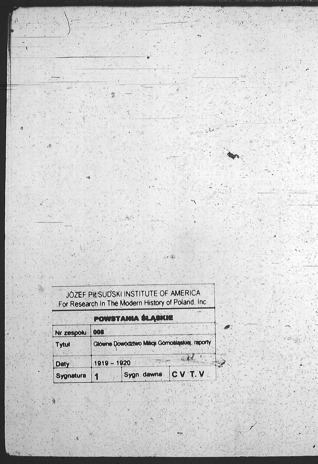 Tytuł teczkiGłówne Dowództwo Milicji Górnośląskiej, raporty