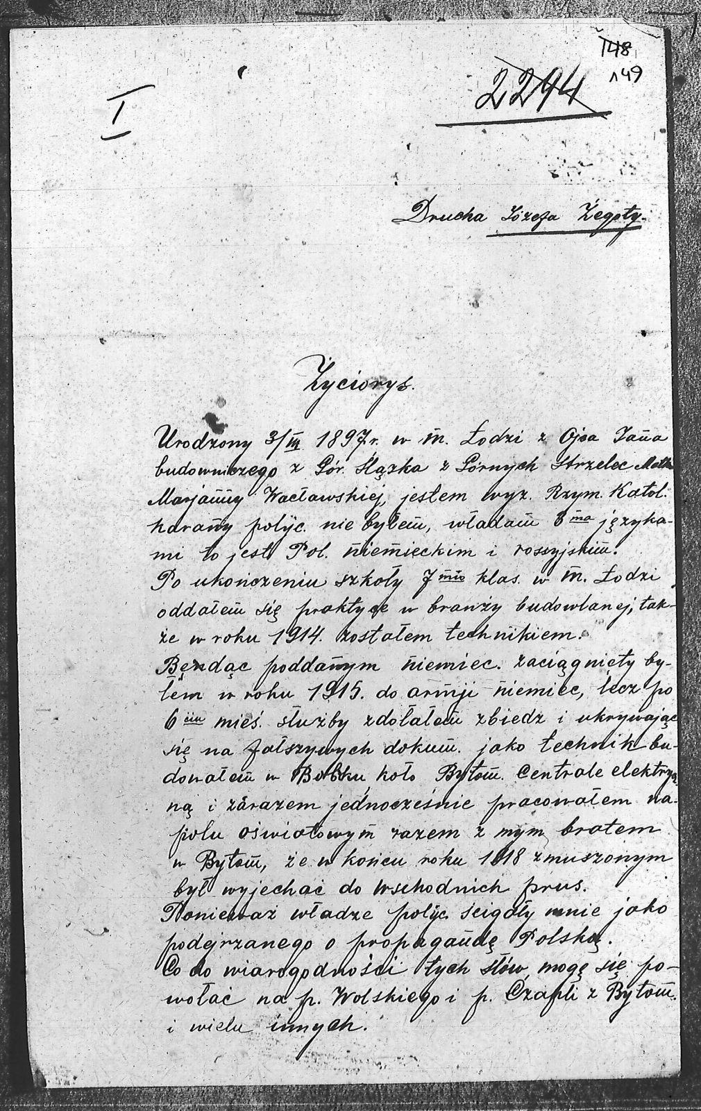Tytuł teczki[Życiorysy i listy biorących udział w powstaniu 1919 roku]