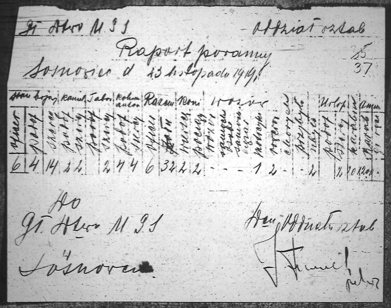 | Tytuł | Raport poranny dotyczący stanu bojowego, kawalerii, taboru, auto-kolumny, koni, wozów, urlopów |