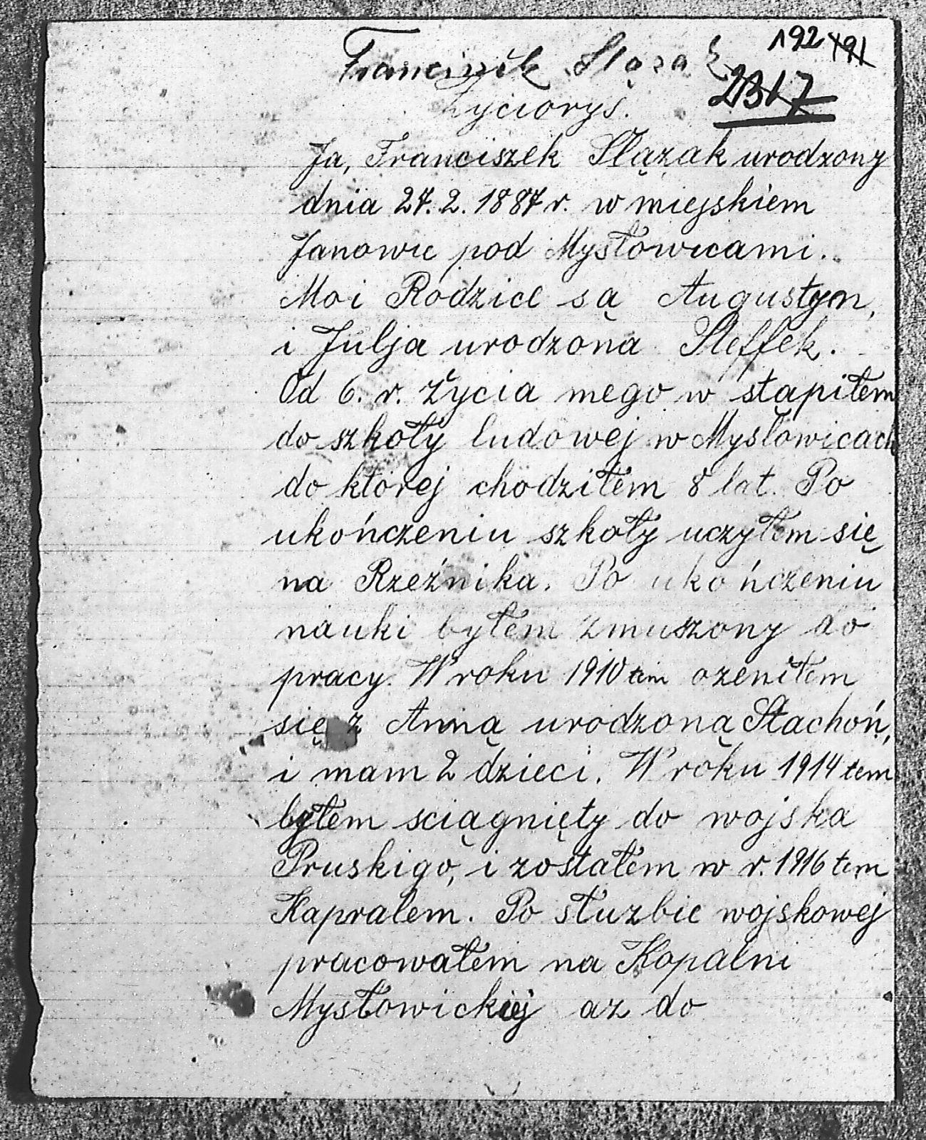 Tytuł Życiorys - Franciszek Ślązak