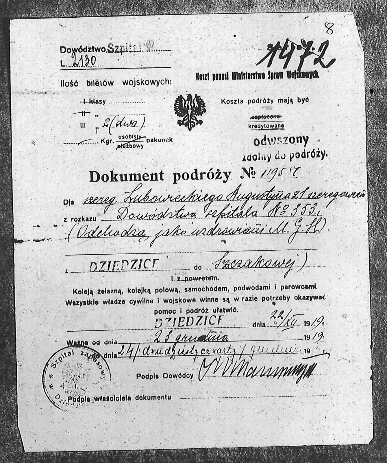 Instytucje Szpital Dziedzice. Dowództwo; Szpital Zapasowy