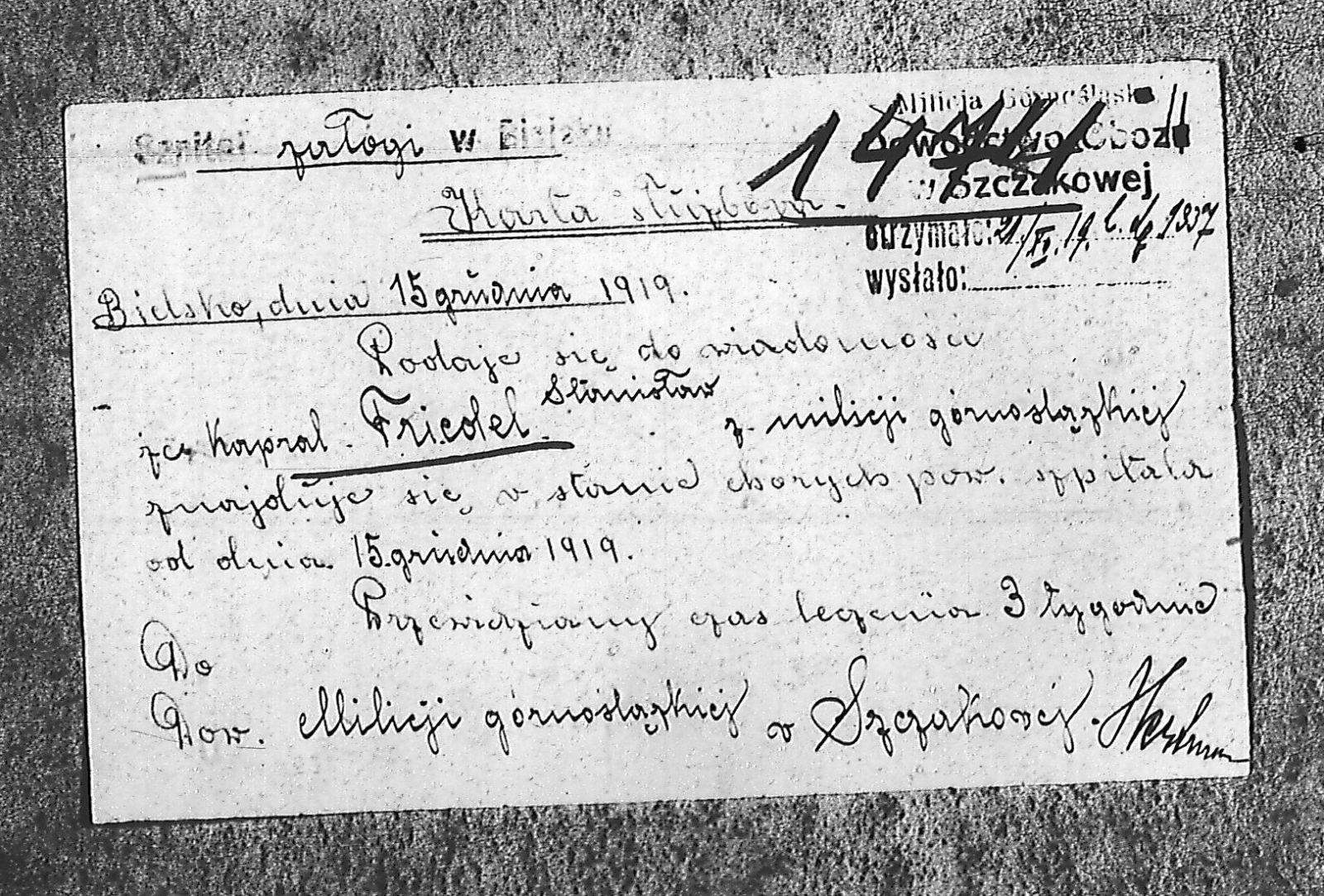 Instytucje Milicja Górnośląska; Milicja Górnośląska. Obóz w Szczakowej. Dowództwo; Szpital Załogi w Bielsku
