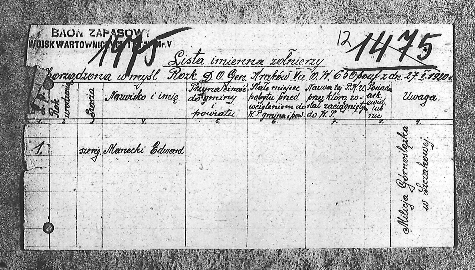 Tytuł Lista imienna żołnierzy