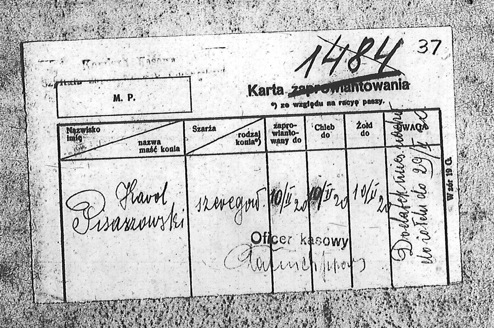 Tytuł Karta zaprowiantowania