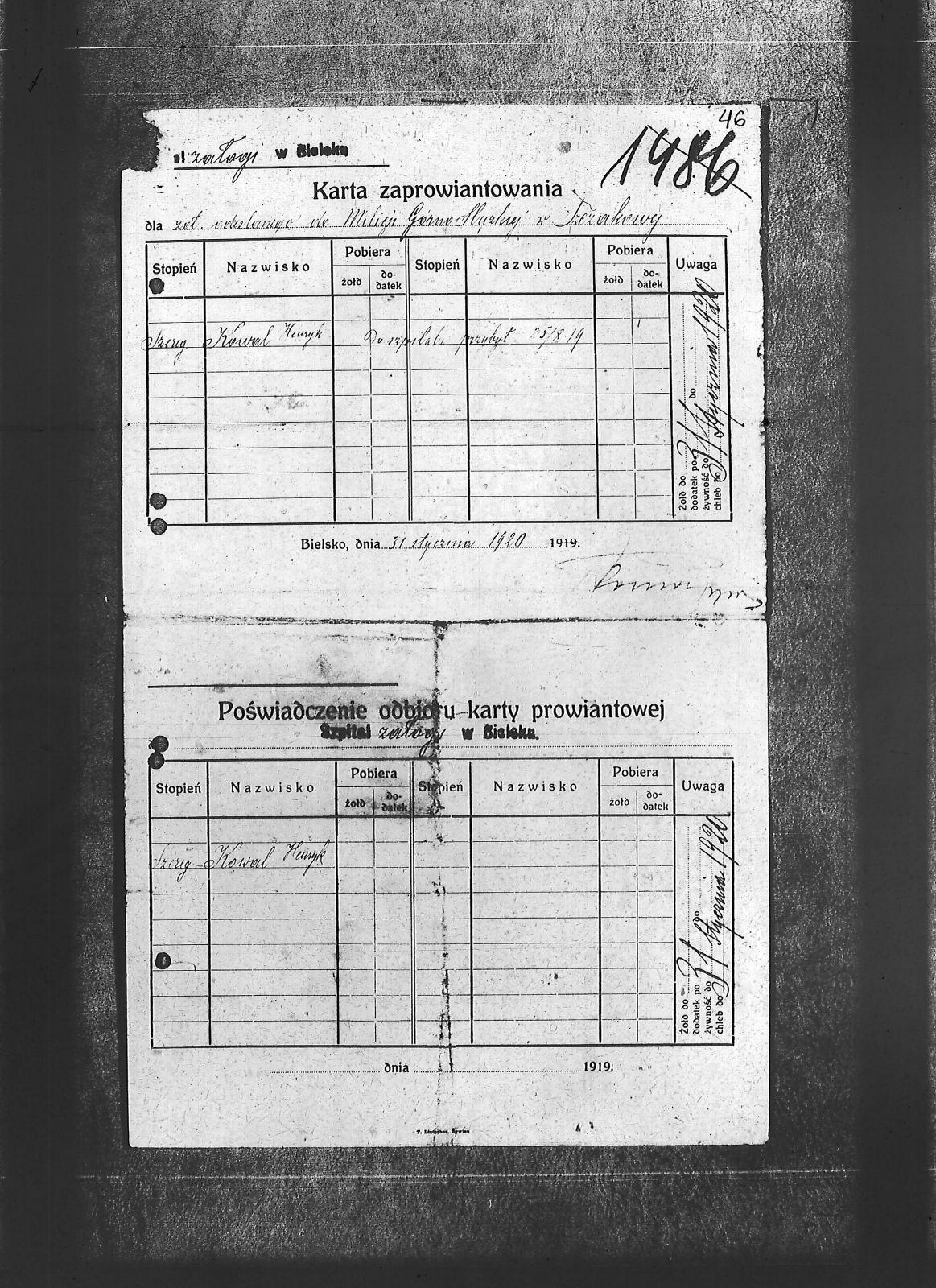 Tytuł Karta zaprowiantowania i poświadczenie jej odbioru