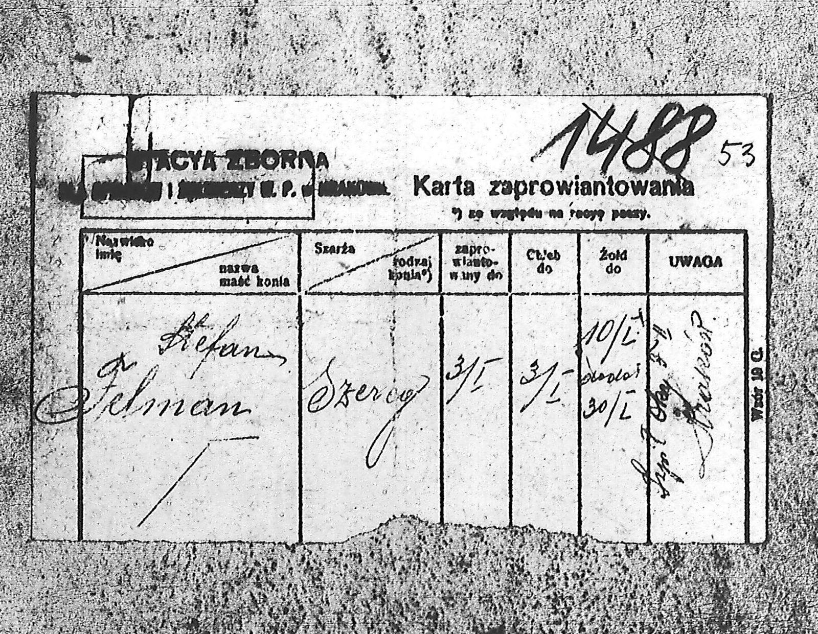 Tytuł Karta zaprowiantowania