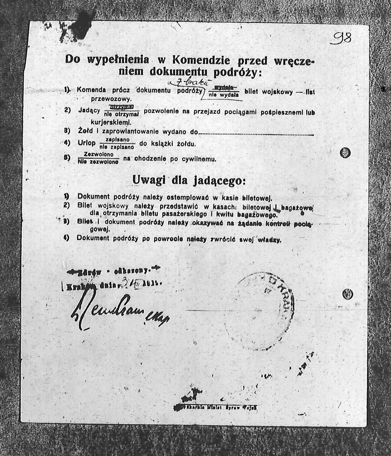 Instytucje Stacja Zborna dla oficerów i żołnierzy W.P. w Krakowie