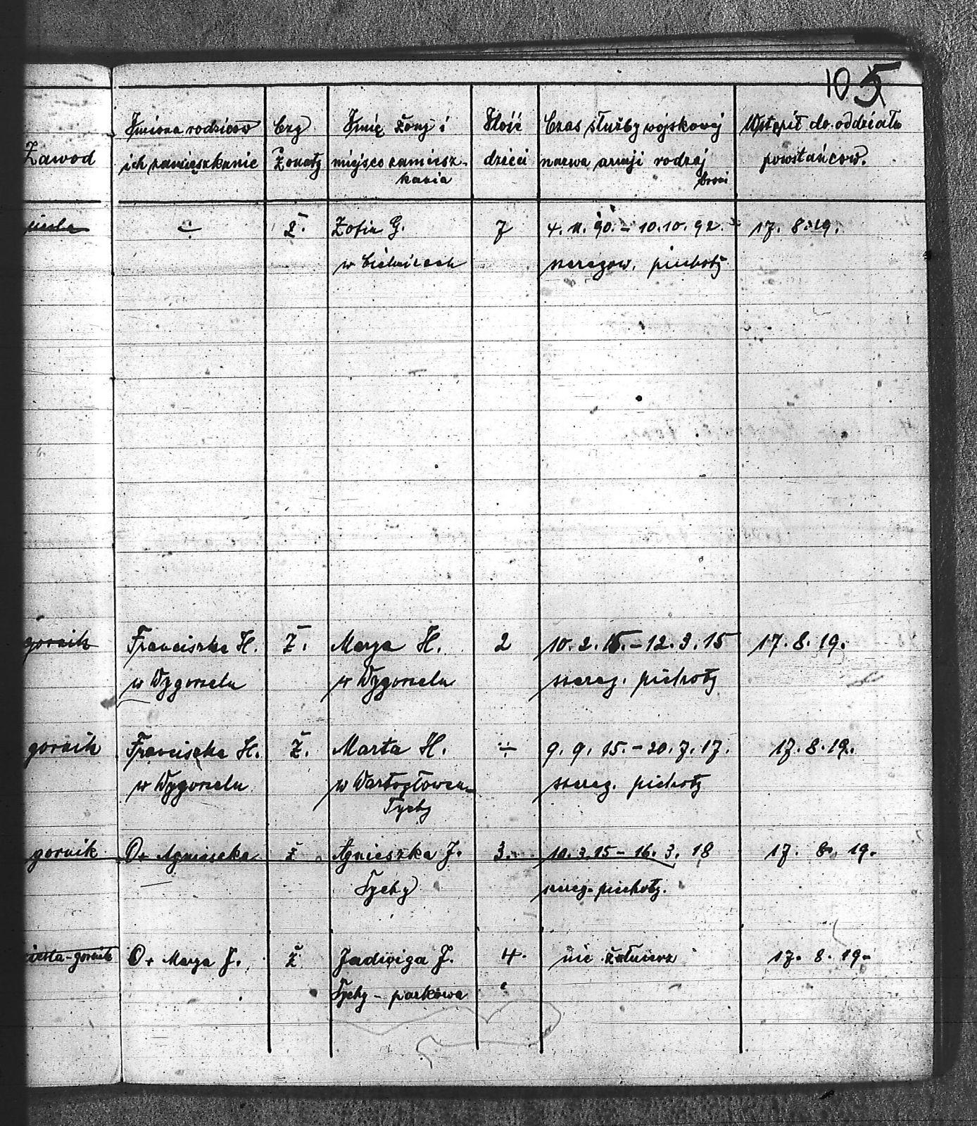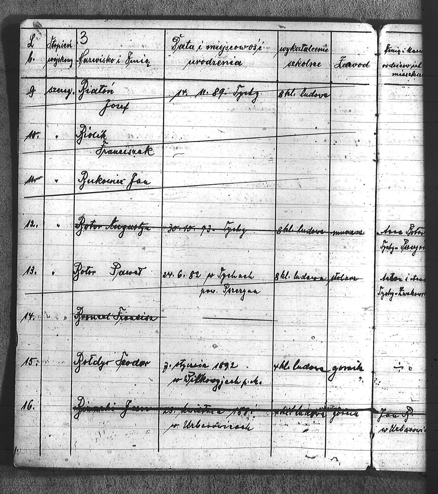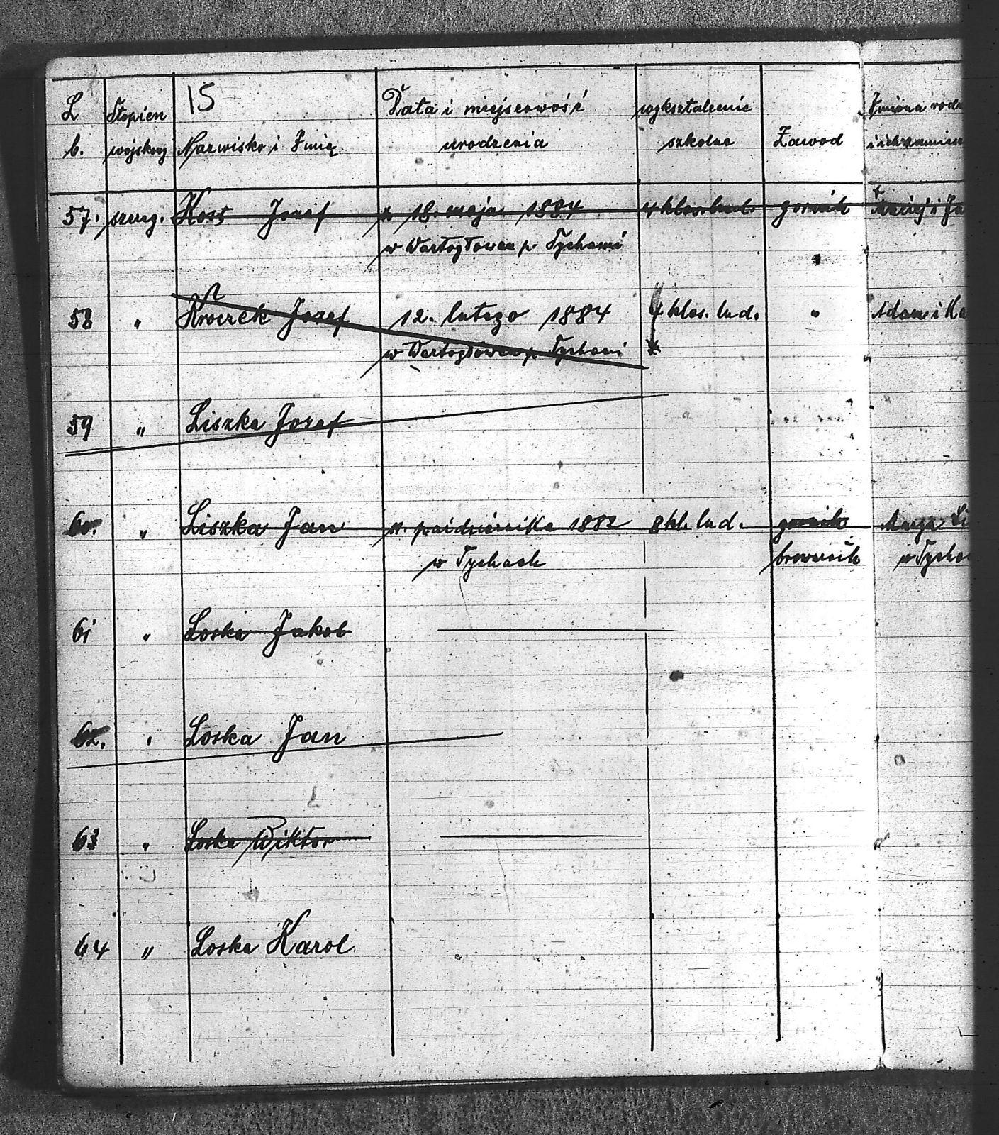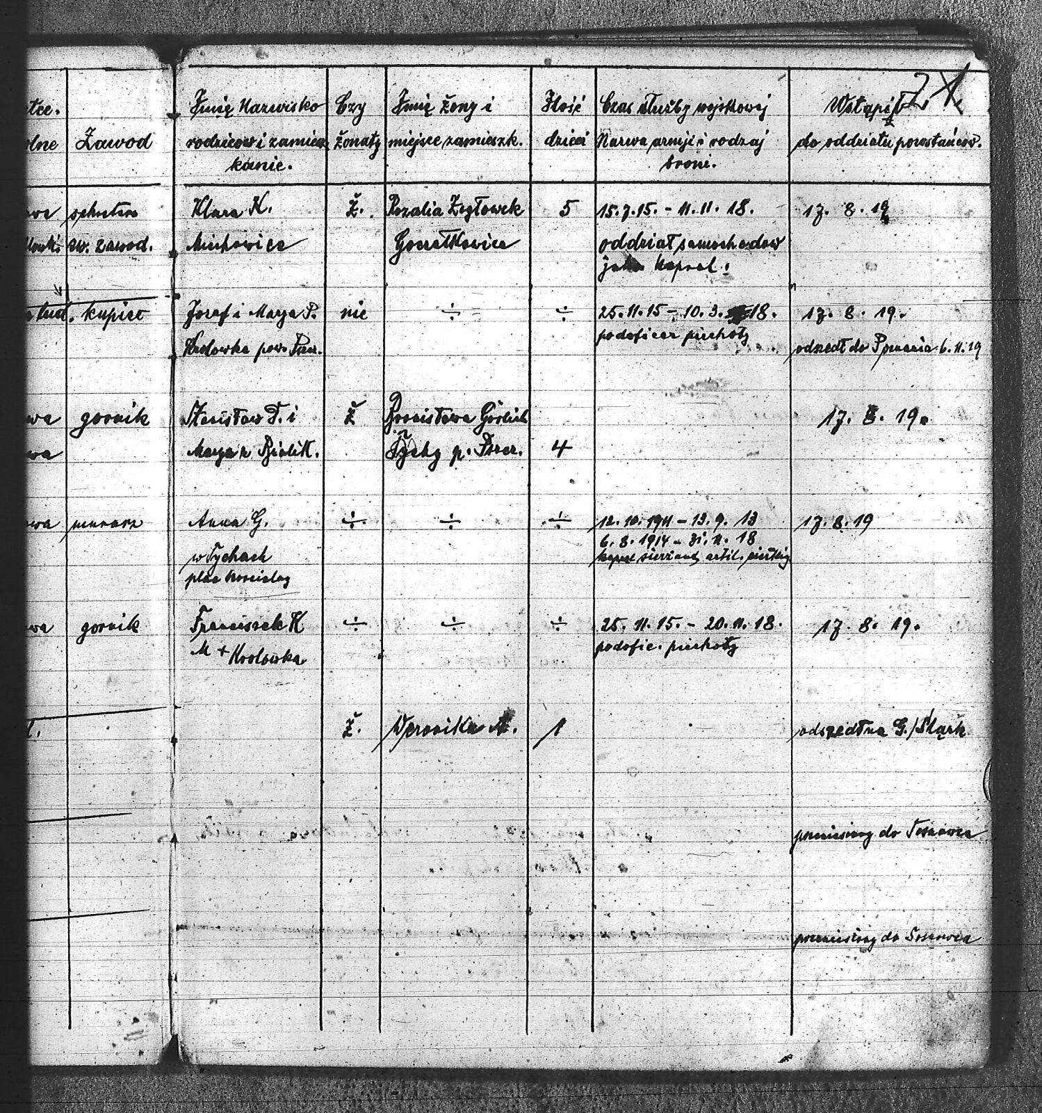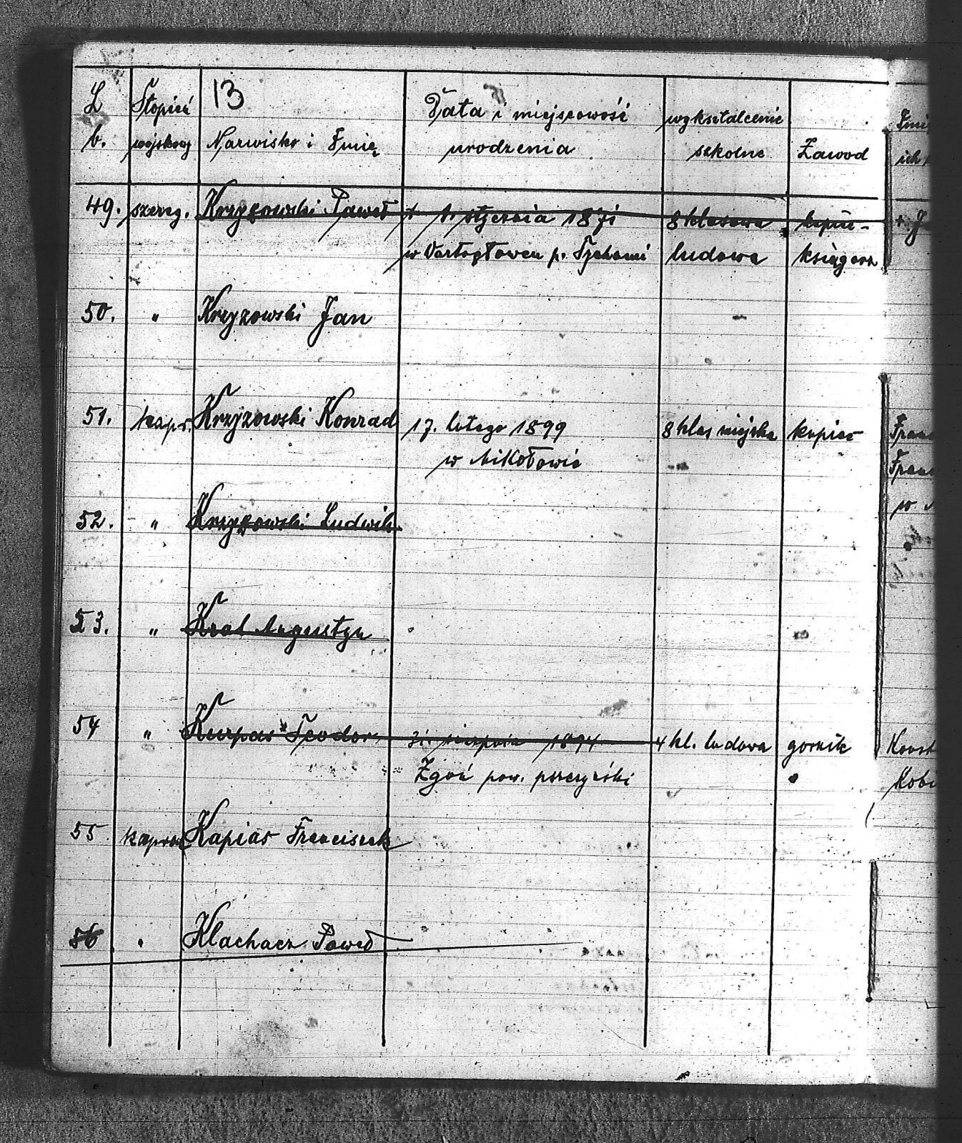 Bączyk, Józef; Bołdys, Teodor; Bończyk, Jan; Brandys, Jan; Buchalik, Franciszek; Carnynoga, Augustyn; Ciałoń, Antoni; Cimała, Augustyn; Cipa, Teofil; Czech, Franciszek; Czempas, Jan; Czernik, Alojzy; Czyba, Stefan; Drobik, Wilhelm; Drożdż, Igancy; Duka, Jan; Dziubany, Jan; Garncorz, Antoni; Giglok, Karol; Golda, Ludwik; Golda, Paweł; Gongor, Ludwik; Grajcarek, Adolf; Grzandziel, Adolf; Hachuła, Paweł; Horst, Paweł; Jakubowski, Stefan; Kapias, Franciszek; Karuga, Paweł; Kiełtyka, Teodor; Klisz, Aleksy; Kocurek, Walenty; Kołodziej, Wojciech; Kosman, Alfons; Kozyra, Klemens; Kret, Franciszek; Kret, Paweł; Krupa, Józef; Krzyżowski, Franciszek; Krzyżowski, Jan; Krzyżowski, Karol; Krzyżowski, Konrad; Krzyżyk, Karol; Kuc, Walenty; Kuchta, Andrzej; Kupiec, Robert; Latusek, Franciszek; Loska; Loska, Karol; Lubecki, Sylwester; Lysko, Paweł; Markiton, Jan; Martinus, Leopold; Mrozik, Maciej; Mucha, Wawrzyn; Mysior, Paweł; Nędza, Józef; Niesłańczy, Ludwik; Niezgoda, Franciszek; Nogły, Karol; Pala, Jakub; Pawełczyk, Jan; Piecha, Jan; Pierzak, Władysław; Pilszek, Jan; Piwałek, Franciszek; Prusek, Adam; Pustelnik, Jerzy; Pysz, Ludwik; Pyszka, Karol; Rózga, Józef; Ryt, Franciszek; Siekiera, Jan; Sitek, Jan; Skopczyk, Emil; Słomka, Józef; Staś, Teodor; Strüby, Fryderyk; Szafran, Jan; Szczygieł, Wiktor; Szczyrba, Tomasz; Szmajduch, Franciszek I; Szmajduch, Franciszek II; Ślosarczyk, Jan; Wencel, Franciszek; Wikarek, Bernard; Wilgus, Fryderyk; Wilk, Józef; Wojciech, Józef; Wojciech, Klemens; Wojtyka, Walenty; Wojtynek, Józef; Wrona, Mikołaj; Zajonc, Wojciech; Zimnol, Jakub; Zolich, Mateusz; Żmija, Józef; Żołna, Franciszek; Żurek, Jan; Żychon, Jan; |