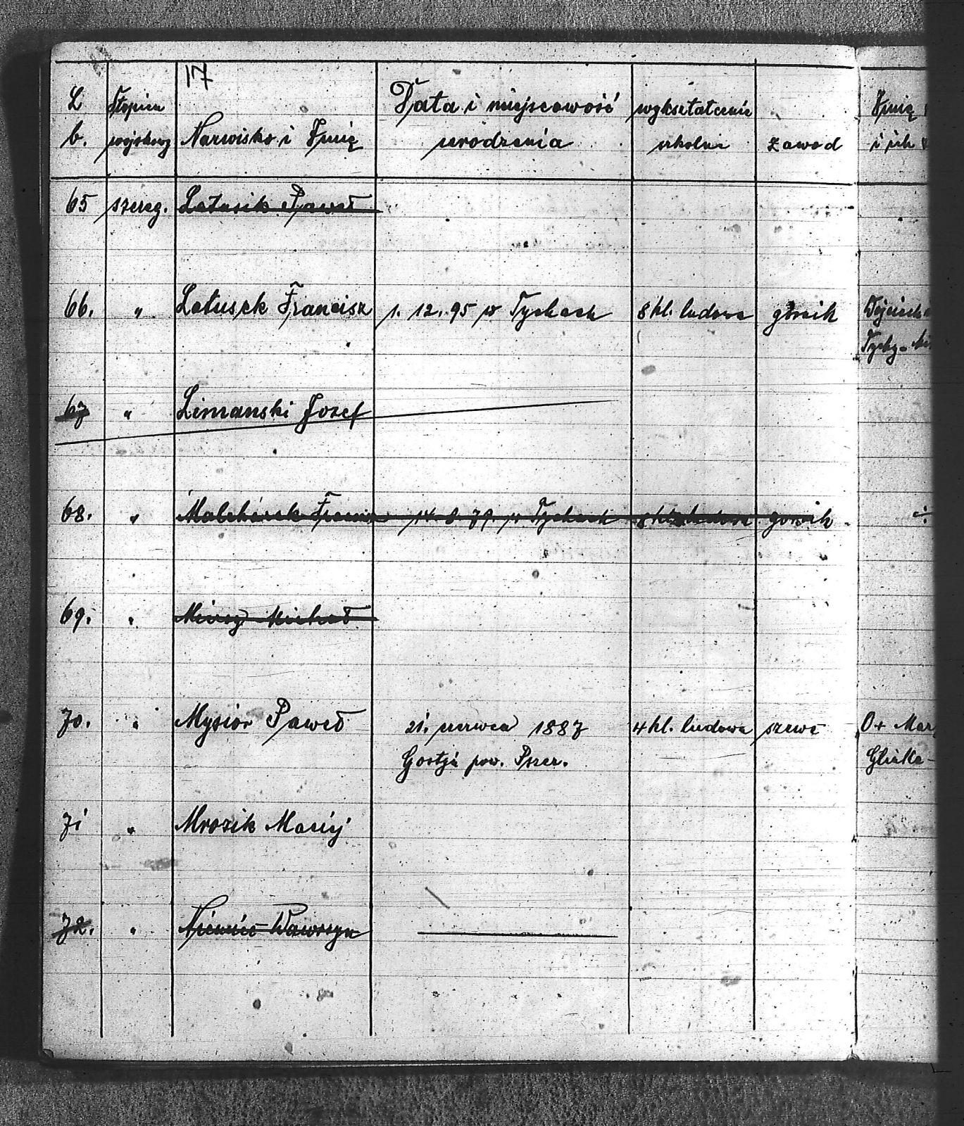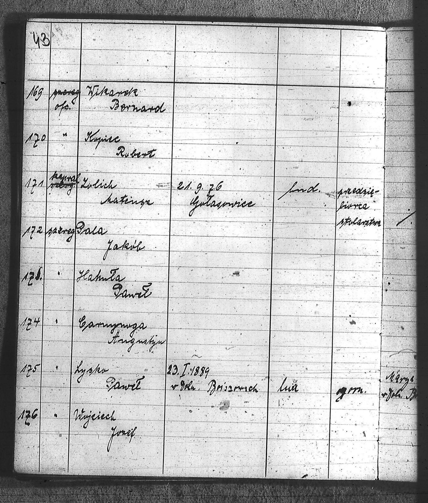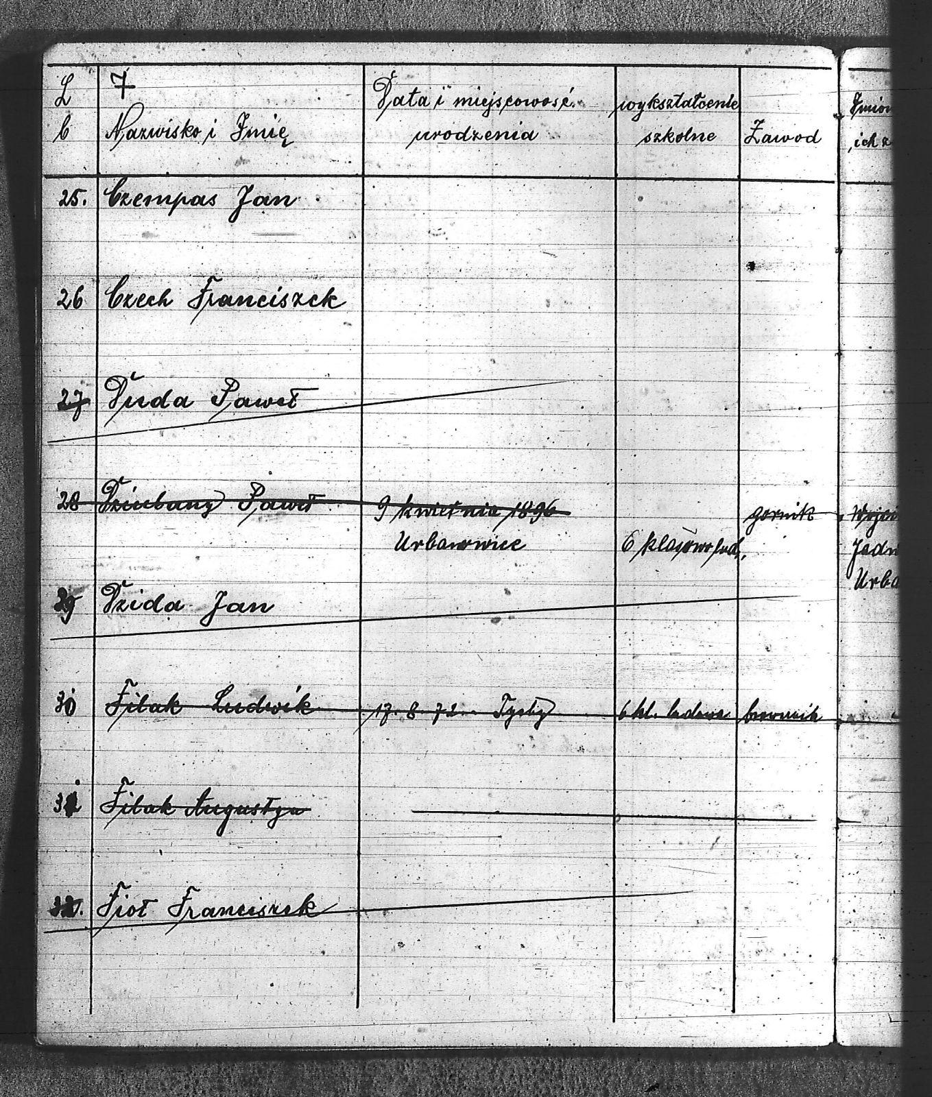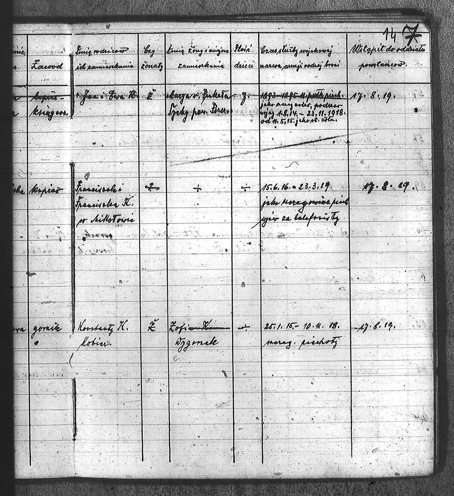 Bączyk, Józef; Bołdys, Teodor; Bończyk, Jan; Brandys, Jan; Buchalik, Franciszek; Carnynoga, Augustyn; Ciałoń, Antoni; Cimała, Augustyn; Cipa, Teofil; Czech, Franciszek; Czempas, Jan; Czernik, Alojzy; Czyba, Stefan; Drobik, Wilhelm; Drożdż, Igancy; Duka, Jan; Dziubany, Jan; Garncorz, Antoni; Giglok, Karol; Golda, Ludwik; Golda, Paweł; Gongor, Ludwik; Grajcarek, Adolf; Grzandziel, Adolf; Hachuła, Paweł; Horst, Paweł; Jakubowski, Stefan; Kapias, Franciszek; Karuga, Paweł; Kiełtyka, Teodor; Klisz, Aleksy; Kocurek, Walenty; Kołodziej, Wojciech; Kosman, Alfons; Kozyra, Klemens; Kret, Franciszek; Kret, Paweł; Krupa, Józef; Krzyżowski, Franciszek; Krzyżowski, Jan; Krzyżowski, Karol; Krzyżowski, Konrad; Krzyżyk, Karol; Kuc, Walenty; Kuchta, Andrzej; Kupiec, Robert; Latusek, Franciszek; Loska; Loska, Karol; Lubecki, Sylwester; Lysko, Paweł; Markiton, Jan; Martinus, Leopold; Mrozik, Maciej; Mucha, Wawrzyn; Mysior, Paweł; Nędza, Józef; Niesłańczy, Ludwik; Niezgoda, Franciszek; Nogły, Karol; Pala, Jakub; Pawełczyk, Jan; Piecha, Jan; Pierzak, Władysław; Pilszek, Jan; Piwałek, Franciszek; Prusek, Adam; Pustelnik, Jerzy; Pysz, Ludwik; Pyszka, Karol; Rózga, Józef; Ryt, Franciszek; Siekiera, Jan; Sitek, Jan; Skopczyk, Emil; Słomka, Józef; Staś, Teodor; Strüby, Fryderyk; Szafran, Jan; Szczygieł, Wiktor; Szczyrba, Tomasz; Szmajduch, Franciszek I; Szmajduch, Franciszek II; Ślosarczyk, Jan; Wencel, Franciszek; Wikarek, Bernard; Wilgus, Fryderyk; Wilk, Józef; Wojciech, Józef; Wojciech, Klemens; Wojtyka, Walenty; Wojtynek, Józef; Wrona, Mikołaj; Zajonc, Wojciech; Zimnol, Jakub; Zolich, Mateusz; Żmija, Józef; Żołna, Franciszek; Żurek, Jan; Żychon, Jan; |